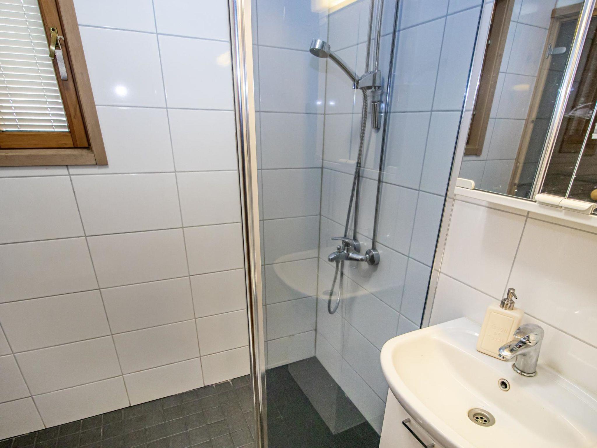 By the shore, there is a spacious cooking hut and a shallow swimming spot for shared use among the cabins in the area.