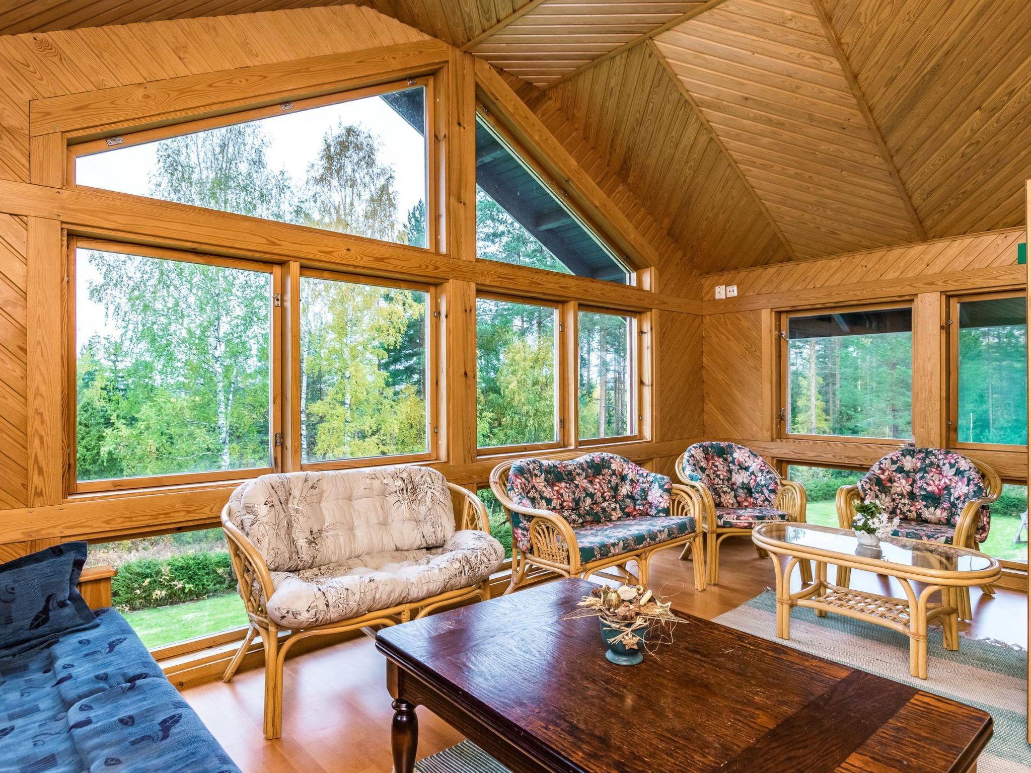 30 km östlich von Mikkeli, See Saimaa 350 m, flacher und harter Sand, Ufer zur Mitbenutzung mit dem Eigentümer (verwendet es selten). Es gibt eigenen Strand, 700 m mit dem Auto und 500 m zu Fuss entfernt, Anlegestelle und eigenes Boot. Blockferienhaus, Baujahr 2005, Küche, Wohnzimmer, Schlafzimmer mit Doppelbett und 1 Bett, im Obergeschoss Schlafzimmer mit 1 Bett, Schlafzimmer mit Doppelbett + 1 Bett, Schlafzimmer mit Doppelbett, Schlafzimmer mit Doppelbett und 1 Bett, im Obergeschoss Lobby mit 2 Zustellbetten, Waschraum, Ankleideraum, Sauna (Elektroherd), zwei offene Veranden und zwei verglaste Veranden. Das Ferienhaus verfügt über zwei Duschen und zwei Toiletten. Separates Saunagebäude (10 m²), Sauna mit elektr. Licht und Kaltwasserleitung. Carport. Am Ufer, zur Mitbenutzung (Entfernung 350 m), befindet sich eine Seesauna. Während der Zeit vom 1.5. bis 30.9. kann diese, gegen gesonderte Bezahlung, gemietet werden. Diese Sauna kann im Winter (1.10.-30.4.) nicht benutzt werden. Separates Nebengebäude (32 m²) nach Vereinbarung (EURO 225/extra Woche), Schlafzimmer mit 3 Betten, Schlafzimmer mit 5 Betten, WC. Nebengebäude hat elektr. Licht und elektr. Heizung. Rauchsauna nach Vereinbarung, EURO 80/Heizung. Hochwertiges, elegantes und geräumiges Chalet auf zwei Etagen, geeignet für mehrere Familien. Untere Etage rollstuhlgerecht, breite Türen ohne Schweller. Badestrand über Waldweg oder Strasse erreichbar. Der Eigentümer vermietet Boote. Abfahrtskizentrum Tornimäki, Entfernung 25 km. Reitmöglichkeit 3 km, Anttola 8 km, Ollinmäki finnischer Weinberg 10 km. Schlüsselkaution vor Ort, EURO 100. Zuschlag für Hunde EURO 50/Woche, EURO 20/Wochenende.
