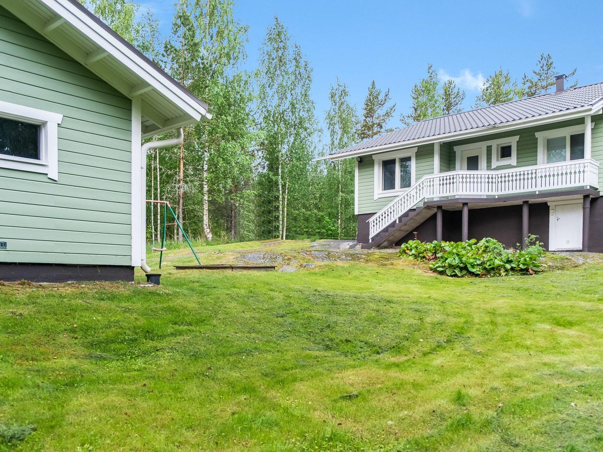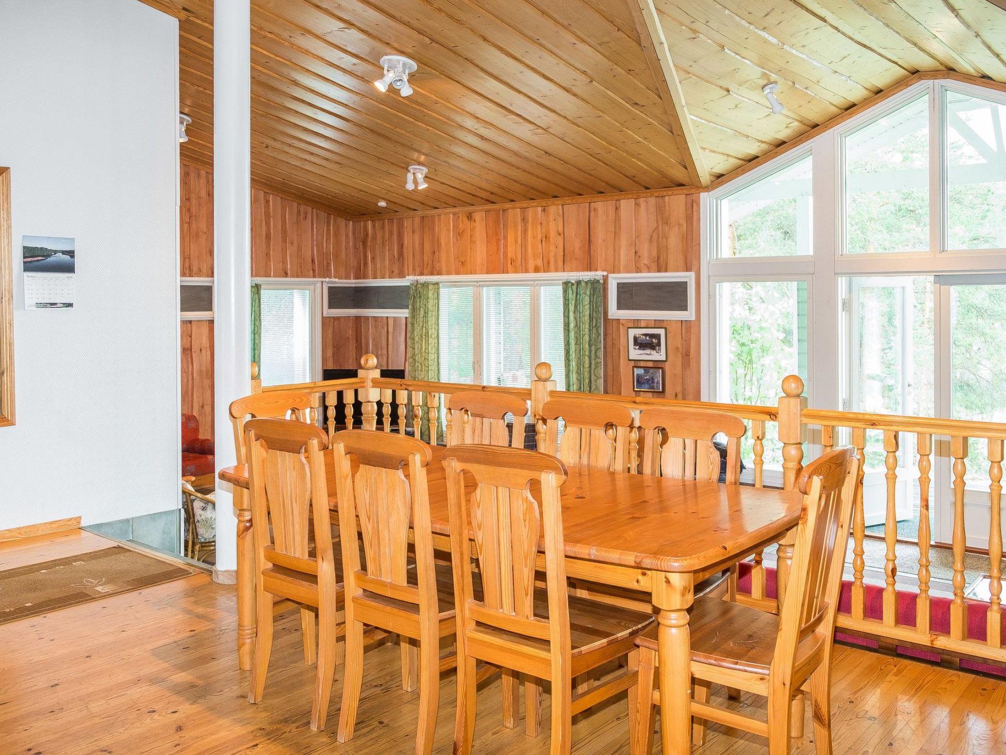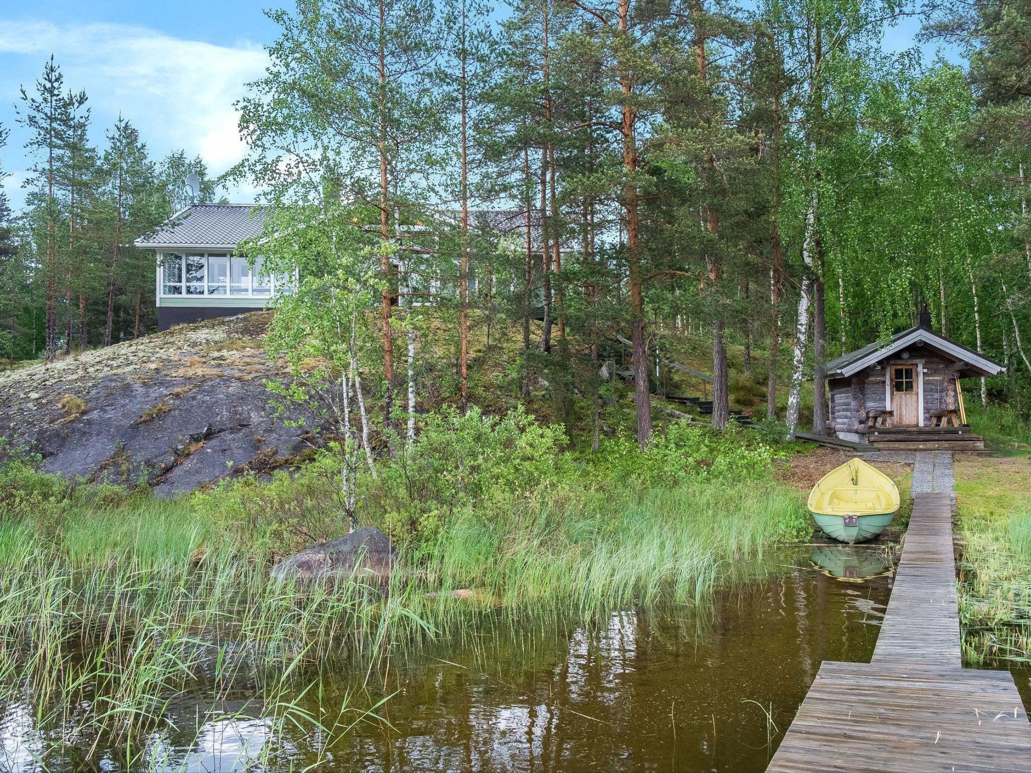 45 km südöstlich von Mikkeli, See Saimaa 30 m, flacher und harter Sand-/Lehmboden, eigenes Boot. Holzvilla, Baujahr 2003, Wohnzimmer, Küche, 2 Schlafzimmer mit je 1 Doppelbett, 1 Schlafzimmer mit 2 Betten, Schlafboden mit 2 Matratzen, Waschraum, Sauna (Holzofen), teilweise verglaste Terrasse (25 m²). Separates Saunagebäude mit elektrischem Licht, Waschraum und effizientem Holzofen. Grosse Villa auf hohem und sonnigem Felsvorsprung, steile Stufen runter zum Ufer entlang der Felswand. Im Hof: Garage, Abstellraum, Kindersandkasten, Gartenschaukel. Teil des Hauses hat Fussbodenheizung. Zwei TV-Geräte (eins 37"). Satelliten-Fernsehen. Russisch sprechende Person steht zur Verfügung. Der Eigentümer vermietet Aussenborder (2.5 PS), Preis € 50/Woche, im Jahr 2019 (Kunde bringt Kraftstoff mit). Die Miete des Hauses beinhaltet Maränenfisch-, Hecht-, Brassennetze und 3 Fischfallen. Anttola 10 km, Neitvuori 20 km, Visulahti + Kenkävero + Mikaeli 45 km. Skipisten Tornimäki 30 km.