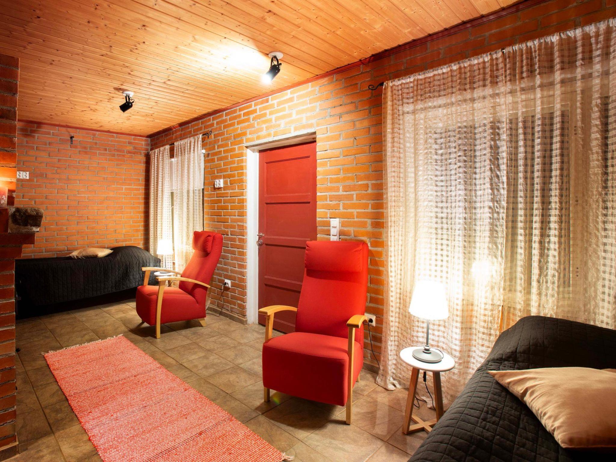 10 km nördlich von Mikkeli, Korpijärvi 30 m (Länge 2 km, Breite 1.5 km), harter und flach abfallender sandiger Lehmboden, Anlegestelle und Ruderboot. Blockhaus, Baujahr 2010, Wohnbereich, Schlafzimmer mit 2 Betten, Wohnzimmer, Küche, Sauna (Elektroherd, immer einsatzbereit), zweite Sauna (Holzofen), Waschraum mit drei Duschen, Toilette, Terrasse. Schlafboden mit 1 Doppelbett und 4 Betten. Im Erdgschoss Schlafzimmer mit 1 Doppelbett, Sitzecke, Terrasse. Grosse Villa mit zwei Saunan. Geräumige Schlafzimmer, 2 Kamine. Geothermal. Hof mit Rasen, gemischten Bäumen und Feldern. Räucherofen, Gas- und Elektrogrill. Verschiedene Spiele, Stiga's und Propeller (2 Stück) können ausgeliehen werden. Tertti Herrenhaus 5 km, Visulahti 6 km, Mikkeli 10 km, Kenkävero 12 km, Mikaeli 14 km, Ski Tornimäki 18 km, Salmela Kunstzentrum Mäntyharju 60 km, Savonlinna, Olavinlinna 95 km, Helsinki 240 km. Der Eigentümer wohnt 100 m entfernt. Angelführer mit Boot und Zubehör ist, gegen eine gesonderte Gebühr, beim Eigentümer verfügbar.