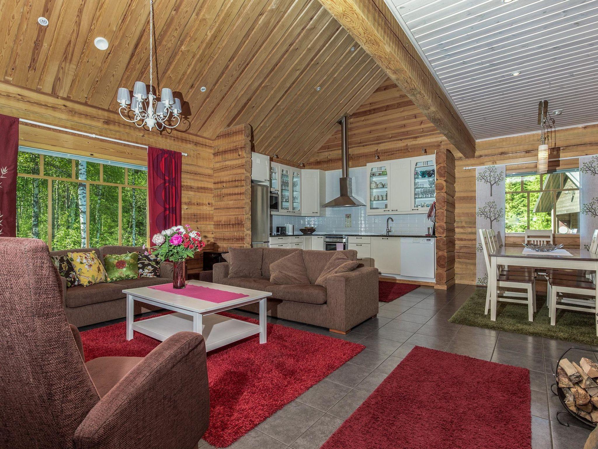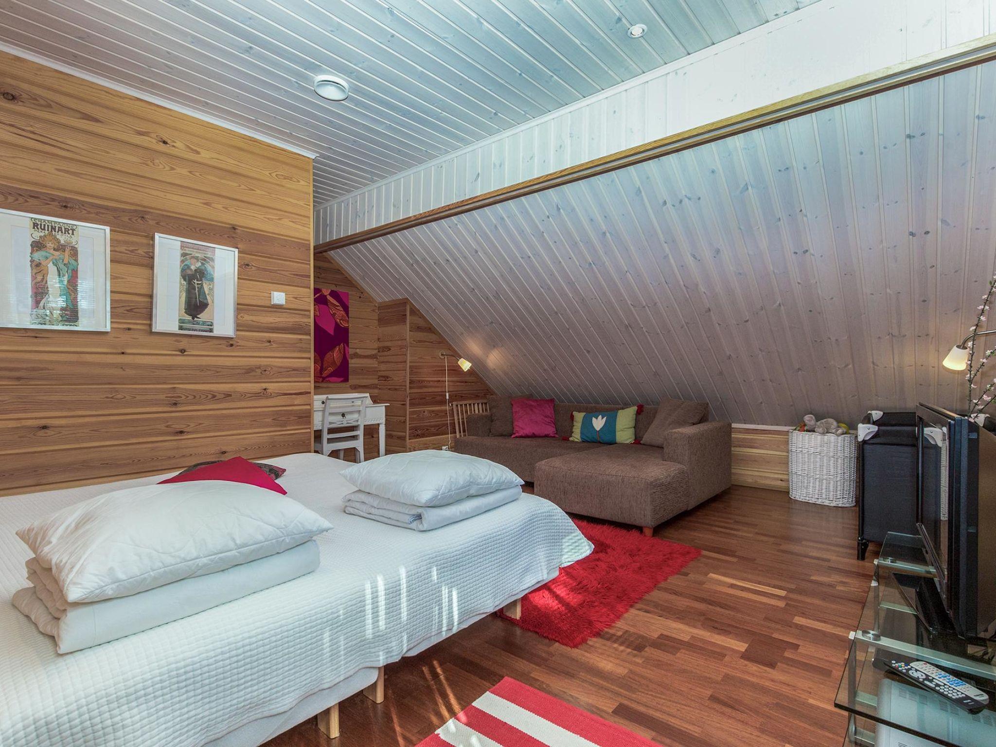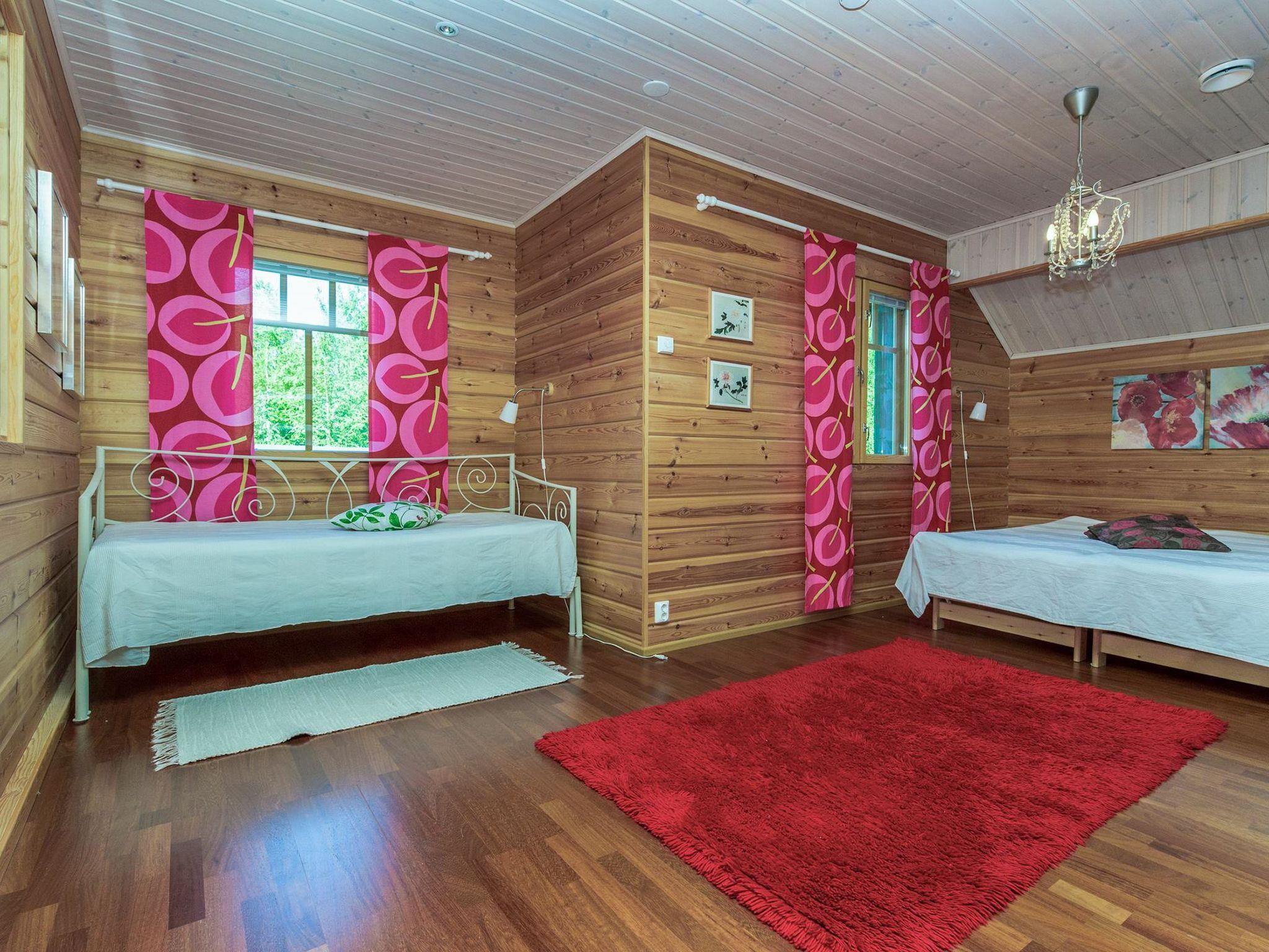 15 km östlich von Mikkeli, Teich Munasenlampi 30 m (Länge 0.4 km, Breite 0.4 km), schnell vertiefend, harter Sand-/Lehmboden, Anlegestelle, Ruderboot. Blockhaus, Baujahr 2008, Küche (40 m²), Schlafzimmer (11 m²) mit Doppelbett, Ankleideraum/Hauswirtschaftsraum, Waschraum (2 Duschen), Sauna (elektr. Saunaofen), separates WC, zwei Terrassen. Im Obergeschoss Schlafzimmer (14 m²) mit zwei Betten und Schlafsofa, TV, DVD, Schlafzimmer (22 m²) mit vier Betten, Balkon. Auto-Unterstand für zwei Autos. Koivuniemien Rouva ist eine hochwertige und geräumige Mietvilla für eine grosse Gruppe. Die Villa ist geschickt gebaut und sorgfältig eingerichtet. In diesem Objekt können Sie erholsame Ferien verbringen. Ruhige Lage, Dienstleistungen der Stadt Mikkeli nur 15 Autominuten entfernt. Der nächste Nachbar (150 m) ist die andere Mietvilla des Eigentümers (14377). Zwischen der Villen befindet sich ein Beachvolleyballfeld, zur Mitbenutzung. Im Winter erstellt der Eigentümer eigene Skipiste im umliegenden Gelände und auf dem Eis des Teiches (abhängig von der Eis- und Schneesituation). Wasserpark Visulahti, Xon Park 10 km, Mikkeli, Mikaeli, Rantakeidas, Kenkävero, AnnilaGolf, SkiTornimäki 15 km, Anttola, Anttolanhovi 17 km, Ollinmäki Weingut 20 km, Neitivuori 22 km, Puumala 62 km, Repovesi Nationalpark 92 km, Imatra 129 km, Helsinki 243 km.