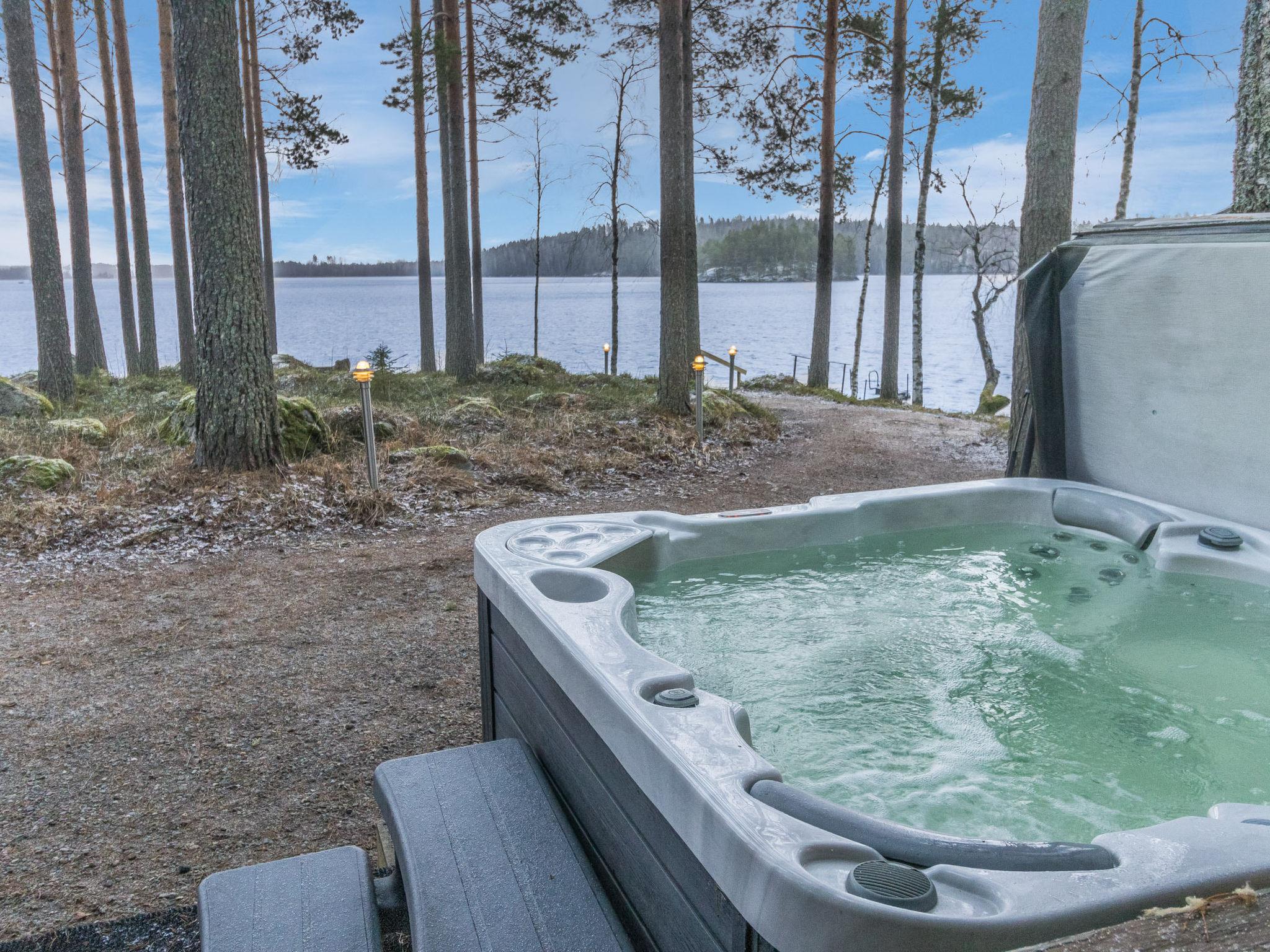 The cabin sits by the scenic Lake Vesijako. The child-friendly beach and pier make swimming effortless, and in winter an ice hole at the end of the pier is kept open for winter bathing. For added relaxation, the hydro massage bath outdoors can be rented separately — an ideal spot to enjoy the peaceful lake views in every season.