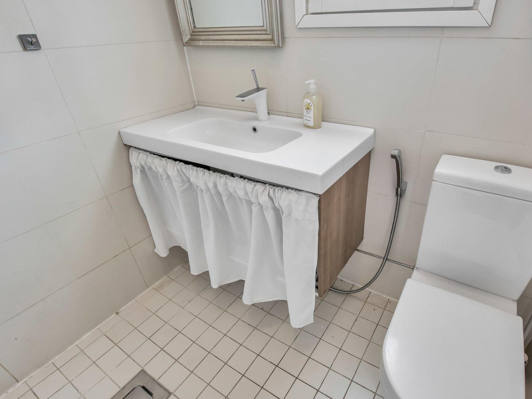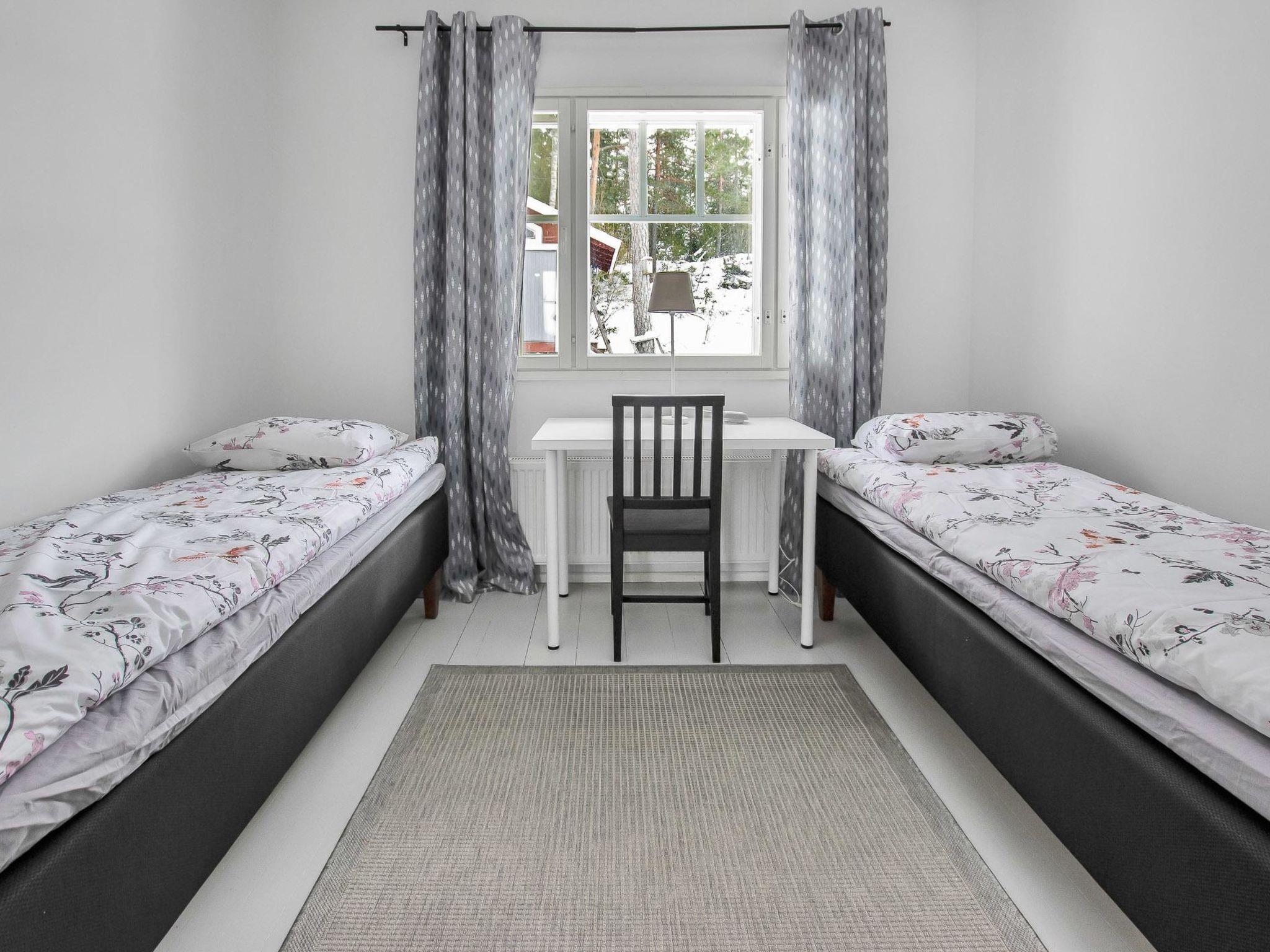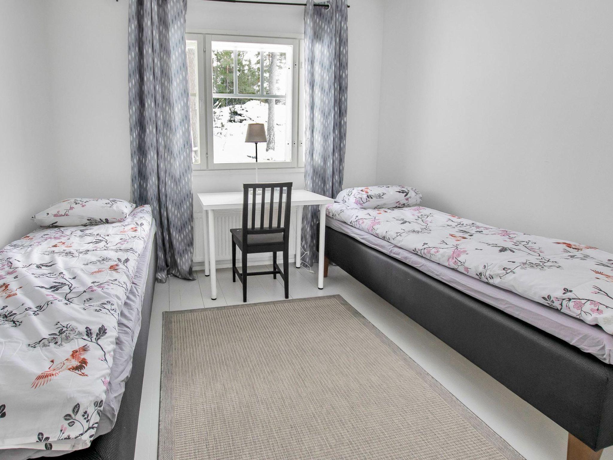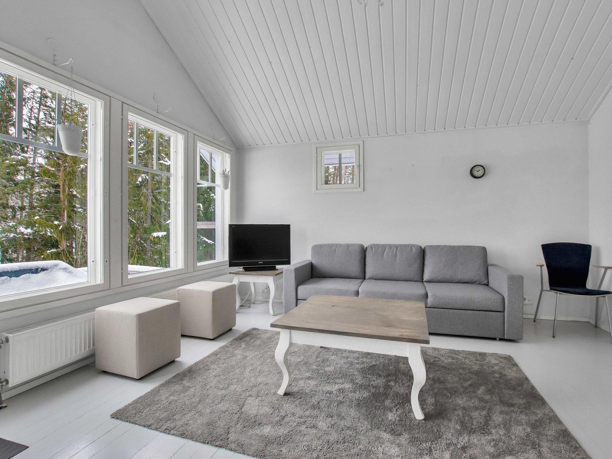 The cabin has 3 bedrooms, each with two separate beds and a sofa bed in the living area. The cabin also has living room / kitchen, fireplace, air source heat pump (cooling), electric sauna, shower, three separate toilets.