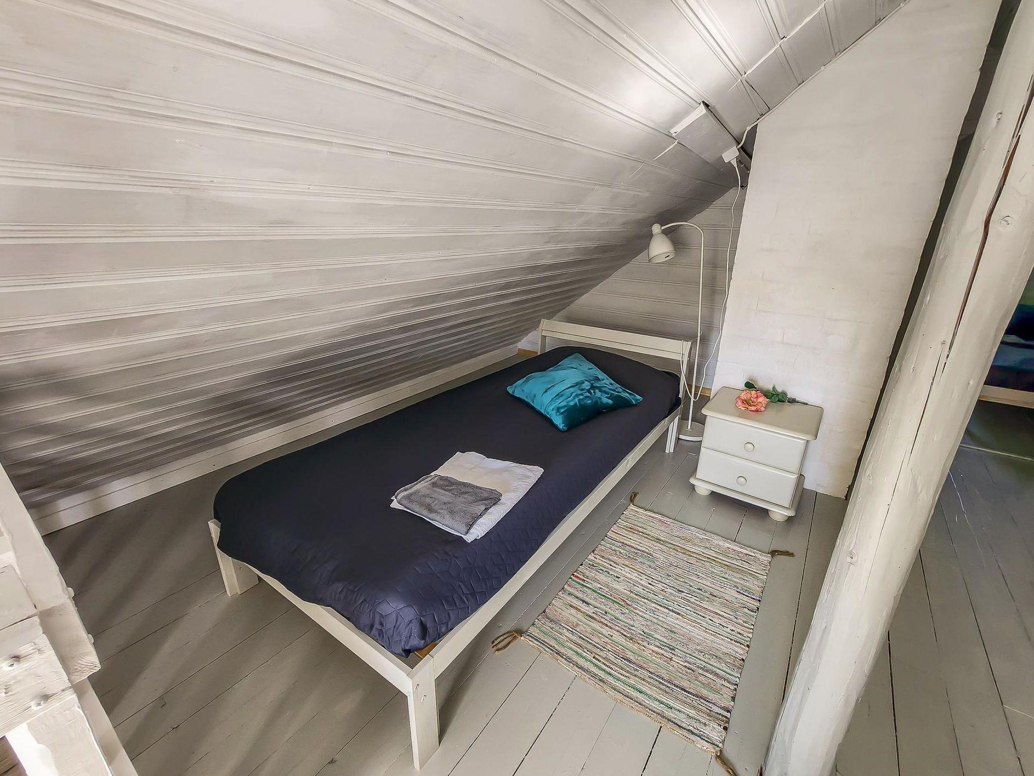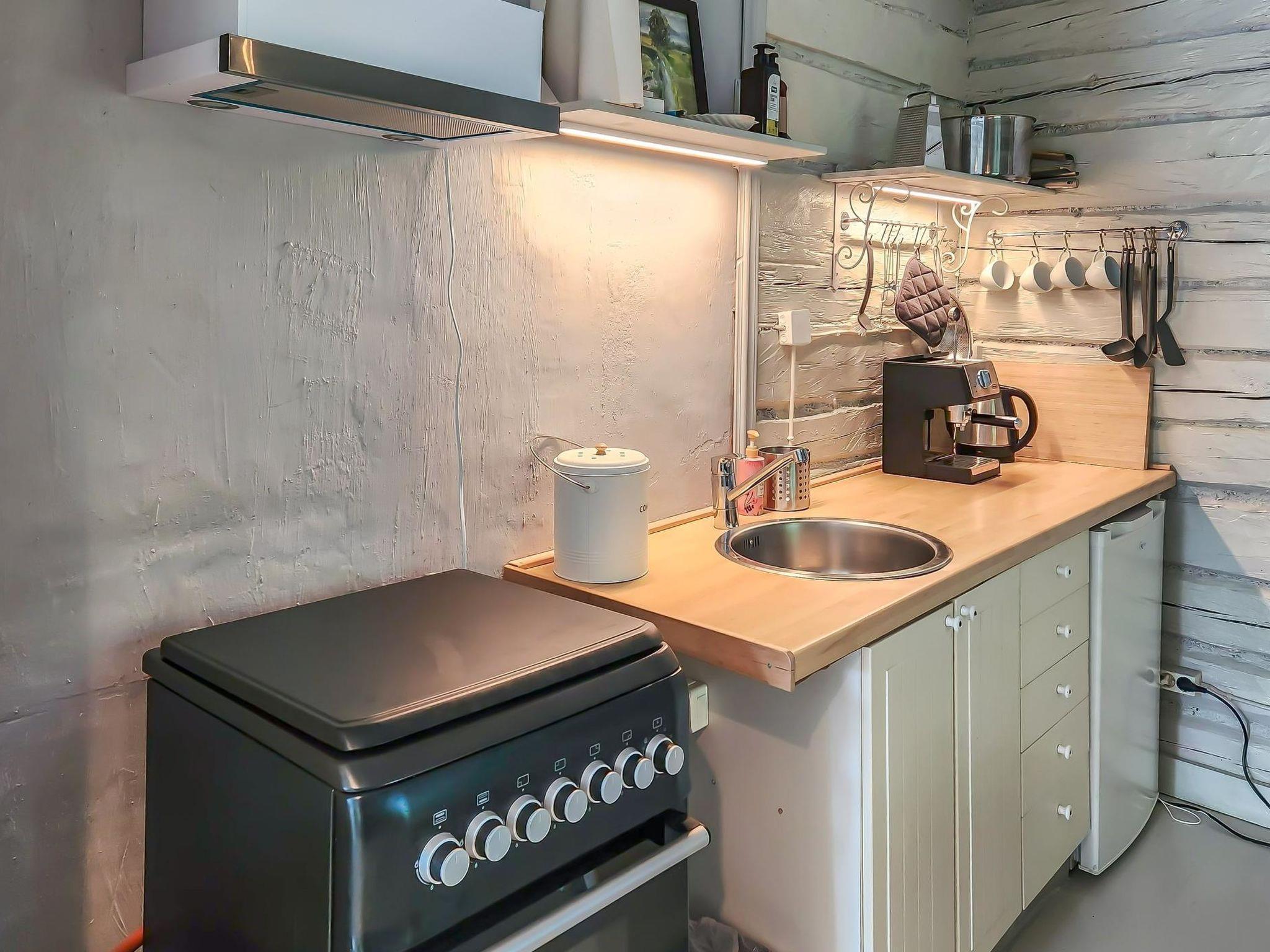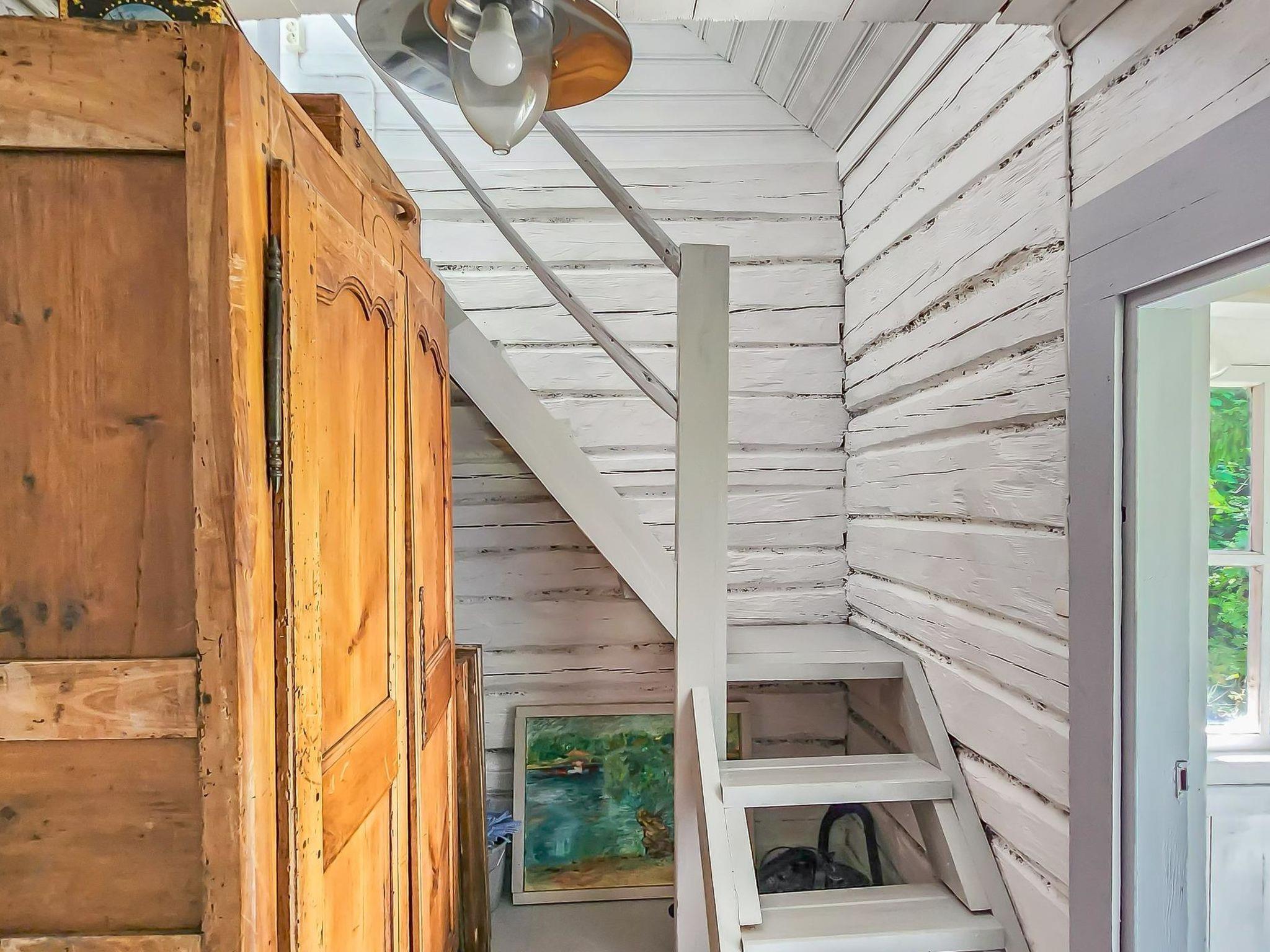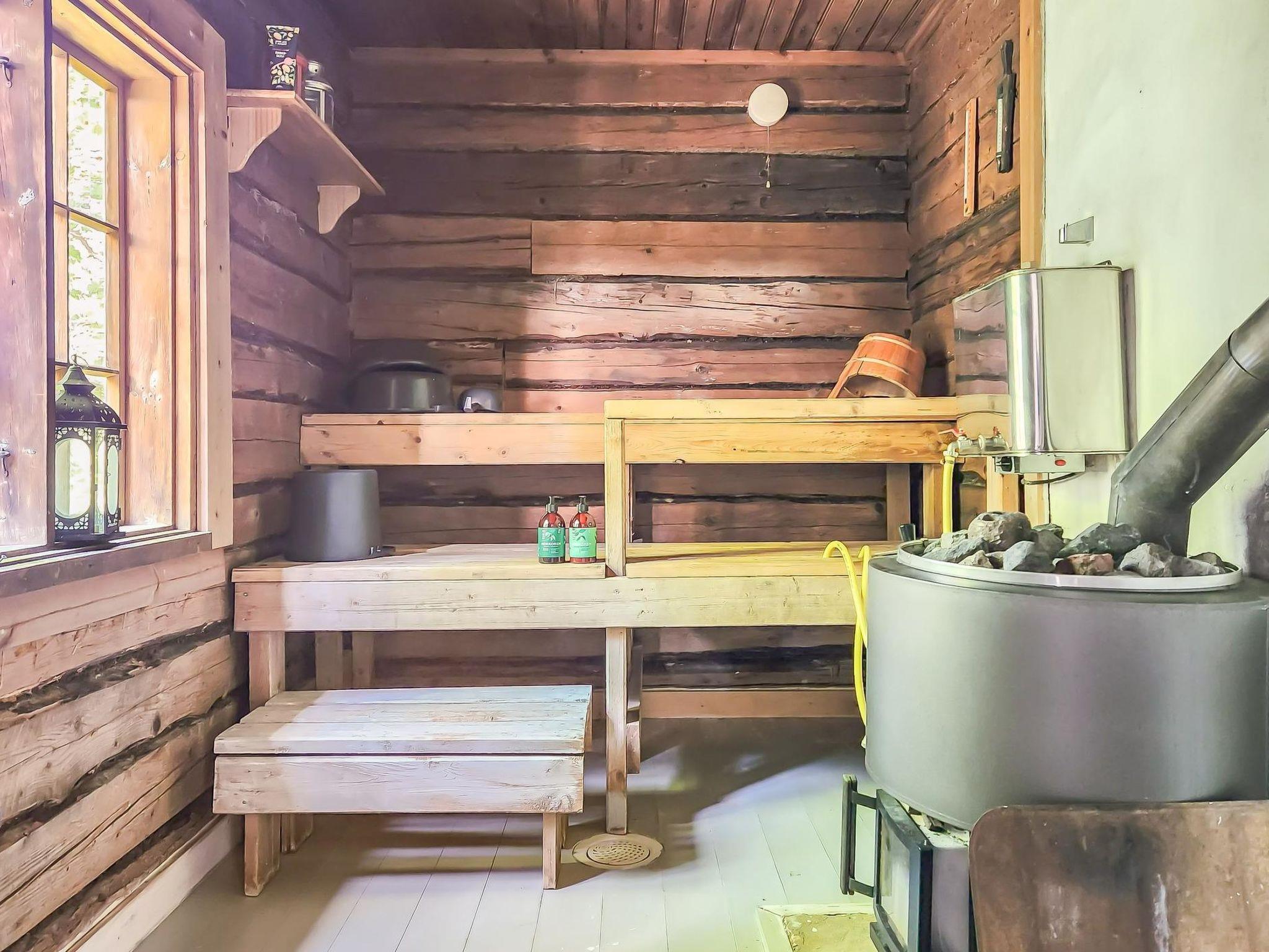 An atmospheric log cabin with a fireplace that you can enjoy in cooler weather. The kitchen has a gas stove and oven, as well as other cooking equipment. From the living room you can access a large glass-covered terrace, where you can enjoy your morning coffee even in the rain. Upstairs, the cabin has sleeping accommodations for four people in separate beds. The beds are 200 cm x 80 cm. In connection with the cabin, there is a large old-fashioned wood-heated sauna with washing facilities.