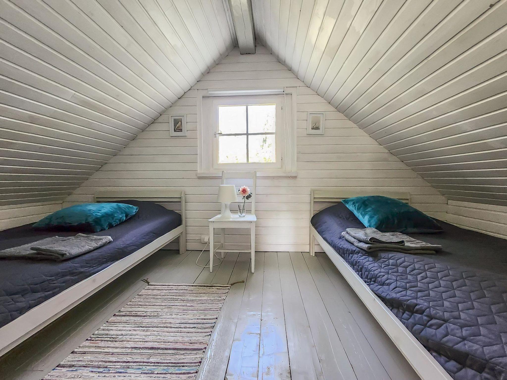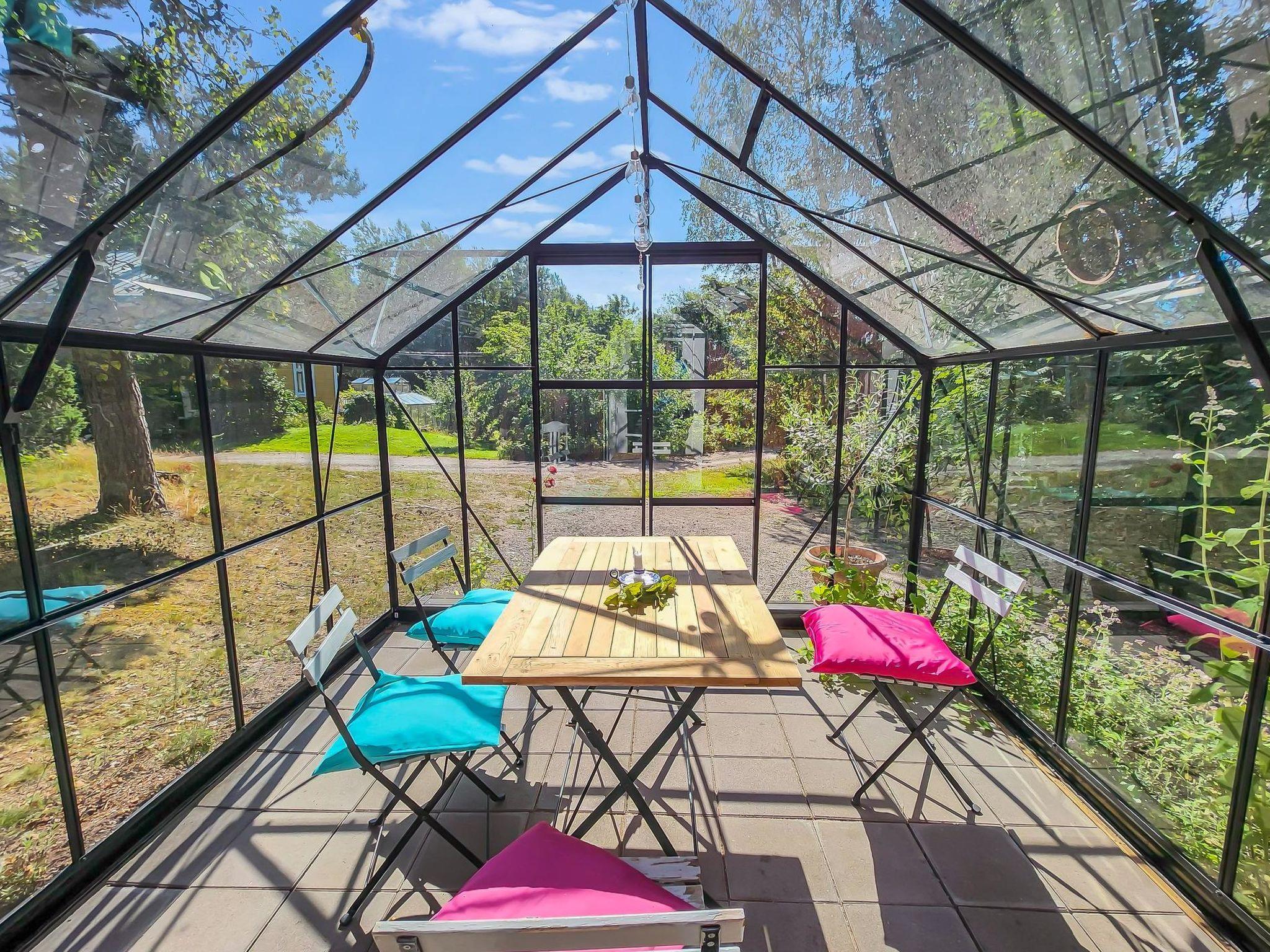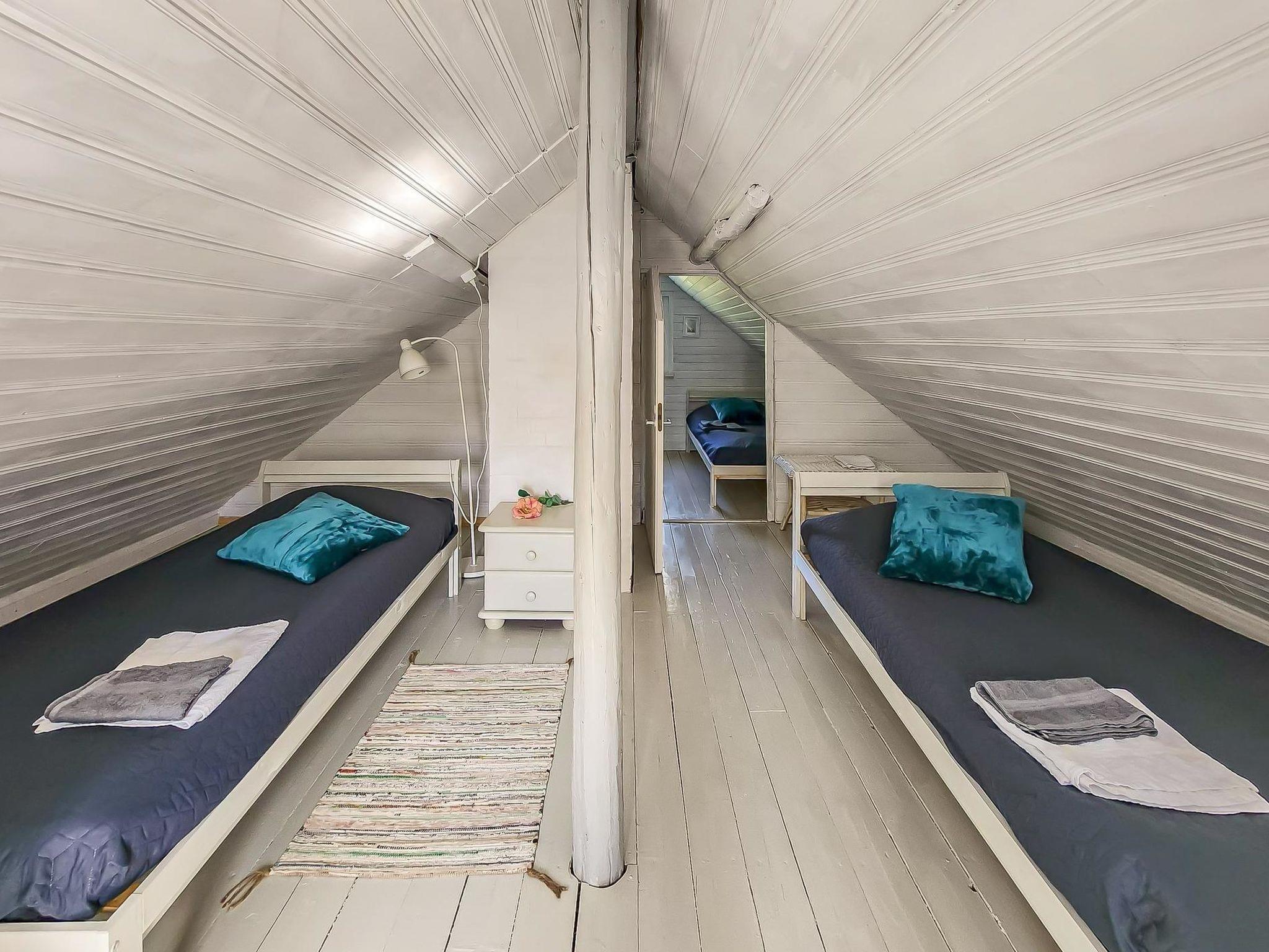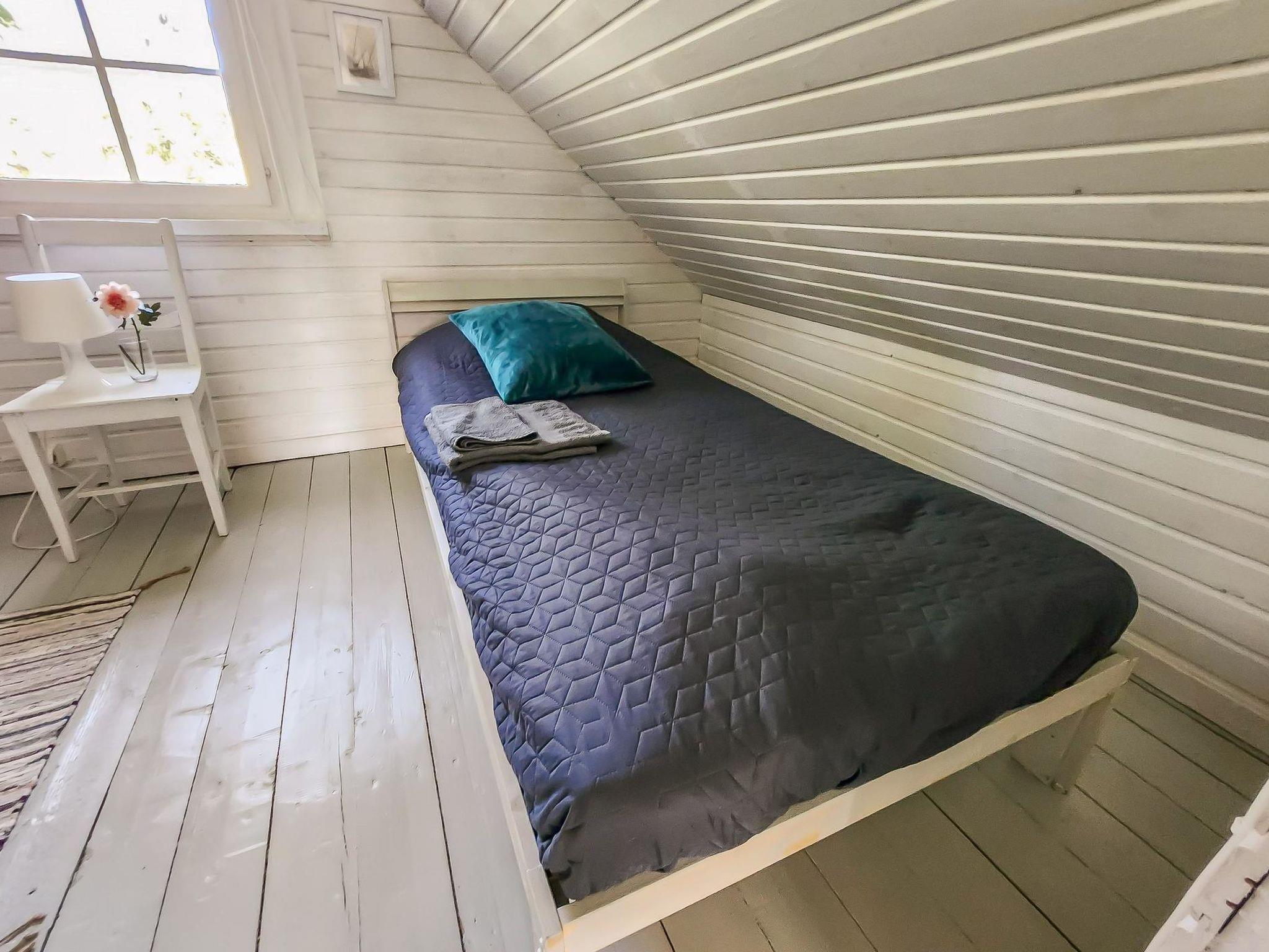 An atmospheric log cabin with a fireplace that you can enjoy in cooler weather. The kitchen has a gas stove and oven, as well as other cooking equipment. From the living room you can access a large glass-covered terrace, where you can enjoy your morning coffee even in the rain. Upstairs, the cabin has sleeping accommodations for four people in separate beds. The beds are 200 cm x 80 cm. In connection with the cabin, there is a large old-fashioned wood-heated sauna with washing facilities.