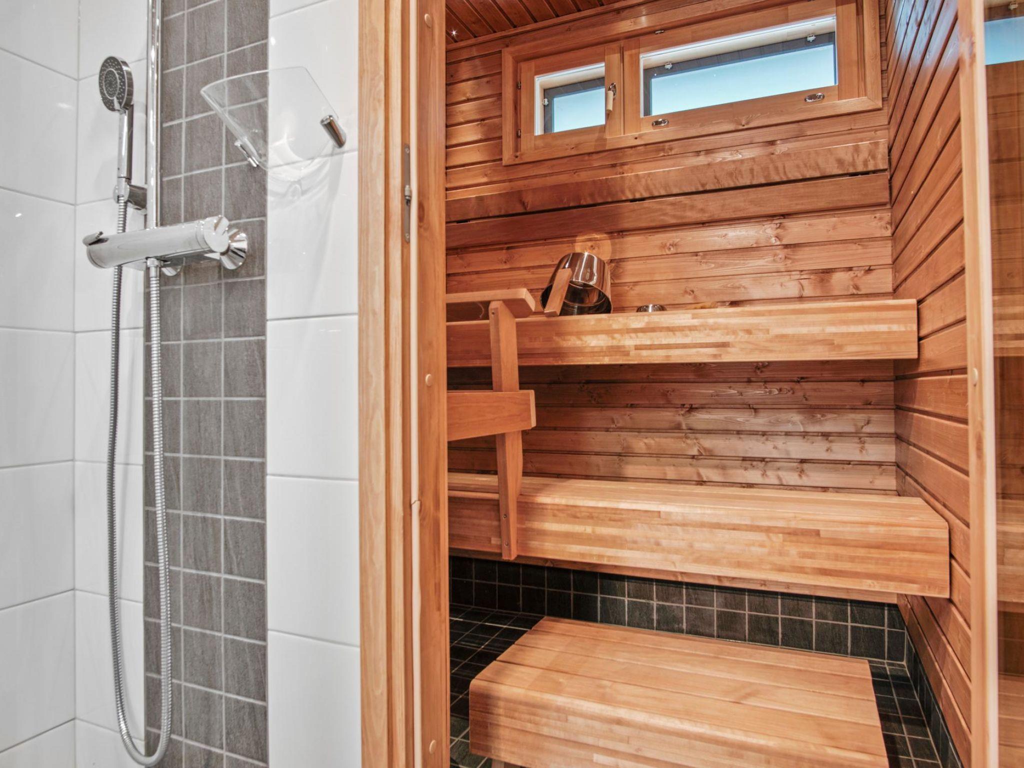 There is a kitchen, bedroom with a 160cm double bed, sofabed 140cm wide, toilet and shower, sauna.