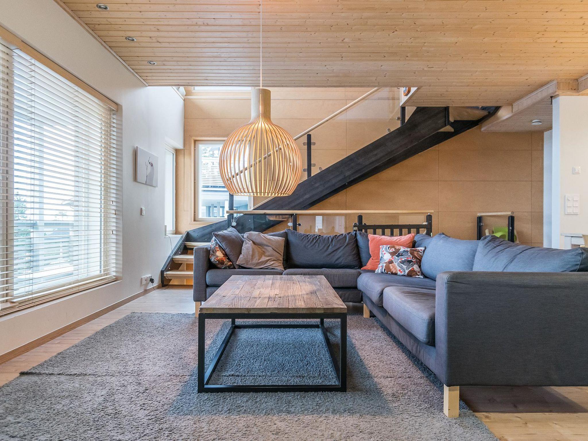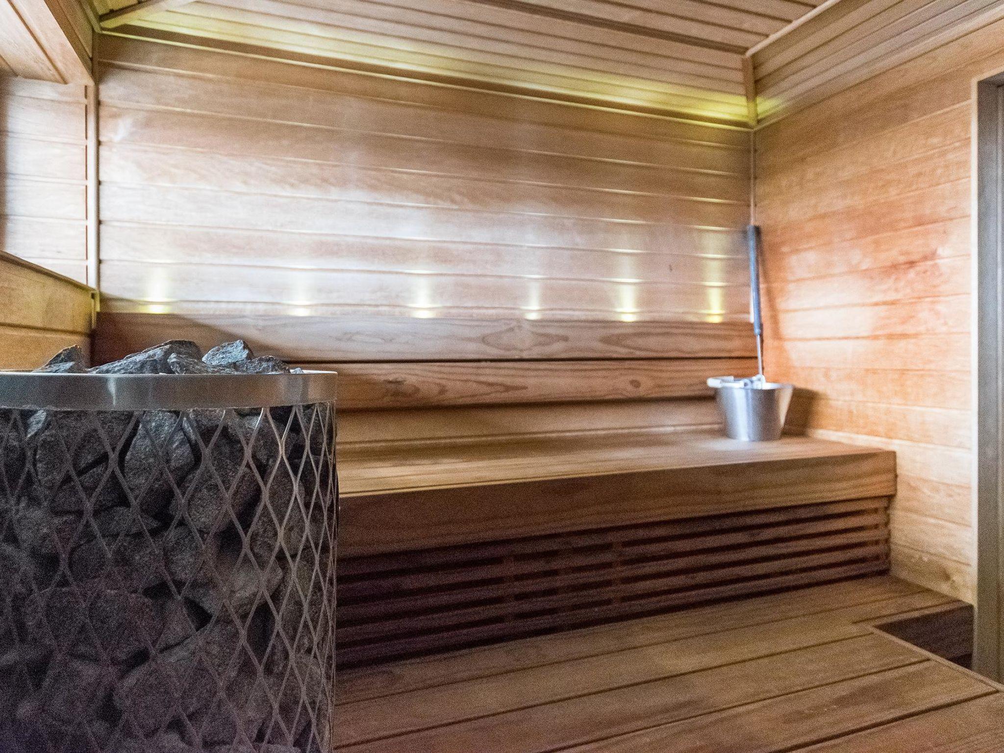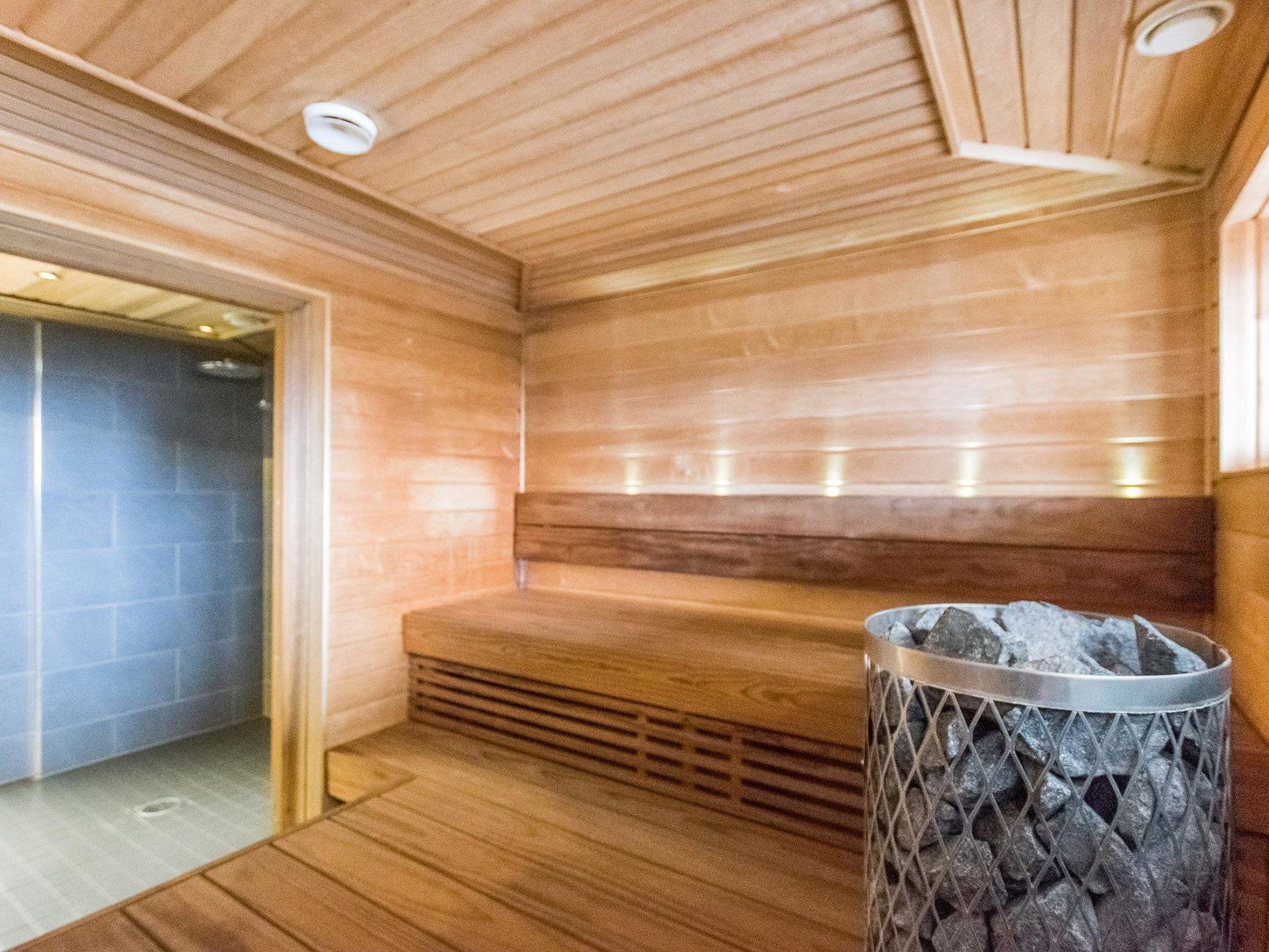 Downstairs there is a washroom, dressing room, sauna (electric stove), warm ski/boot storage, maintenance room for skies, utility room and toilet.