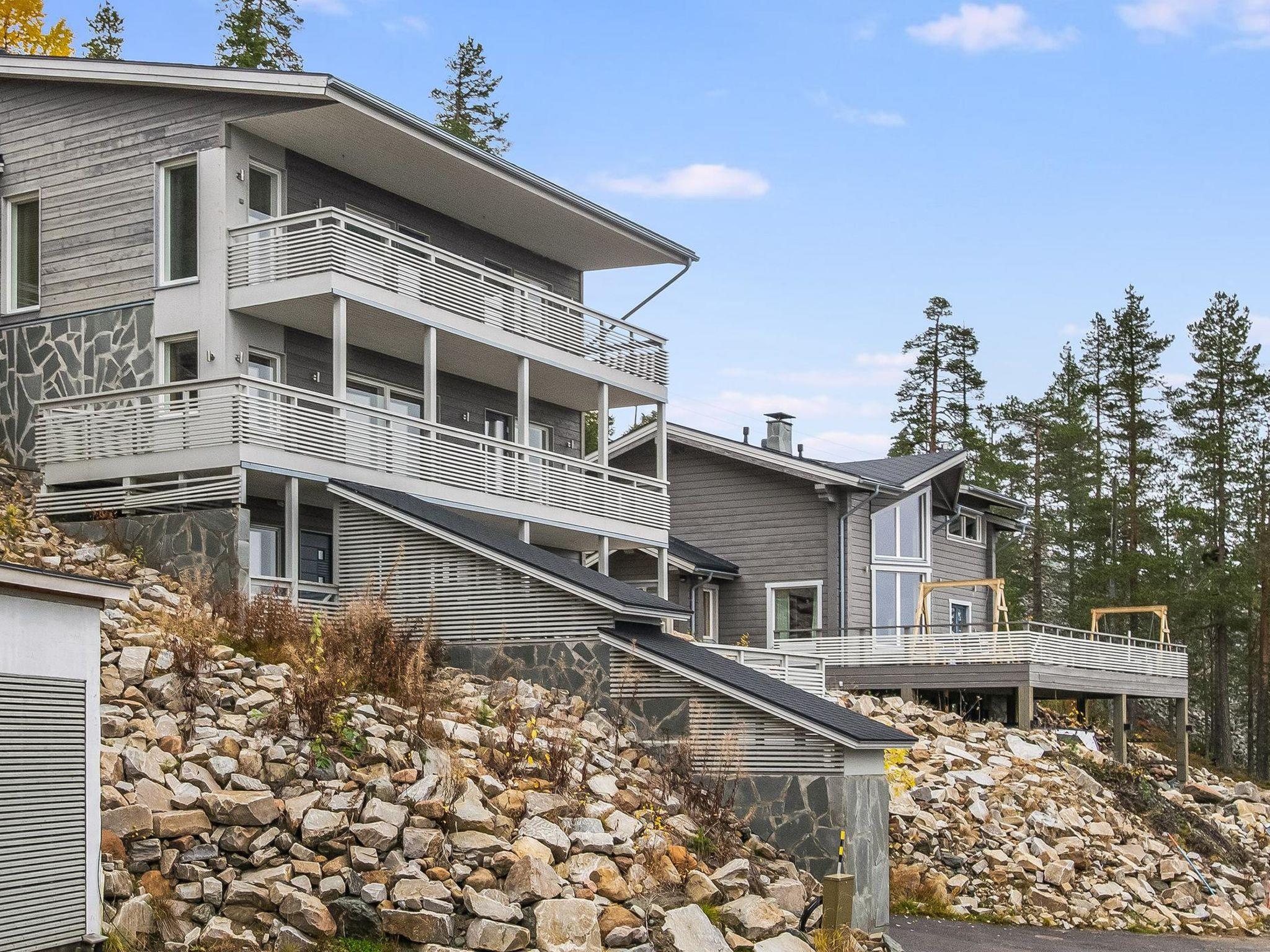 Chalet is located in the best location in Pyhä, next to the slopes of Pyhä Ski Resort, national park and services. There is a big terrace in each floor and a breathtaking view down to the valley. Chalet is suitable for a bigger group or 2-3 different families.