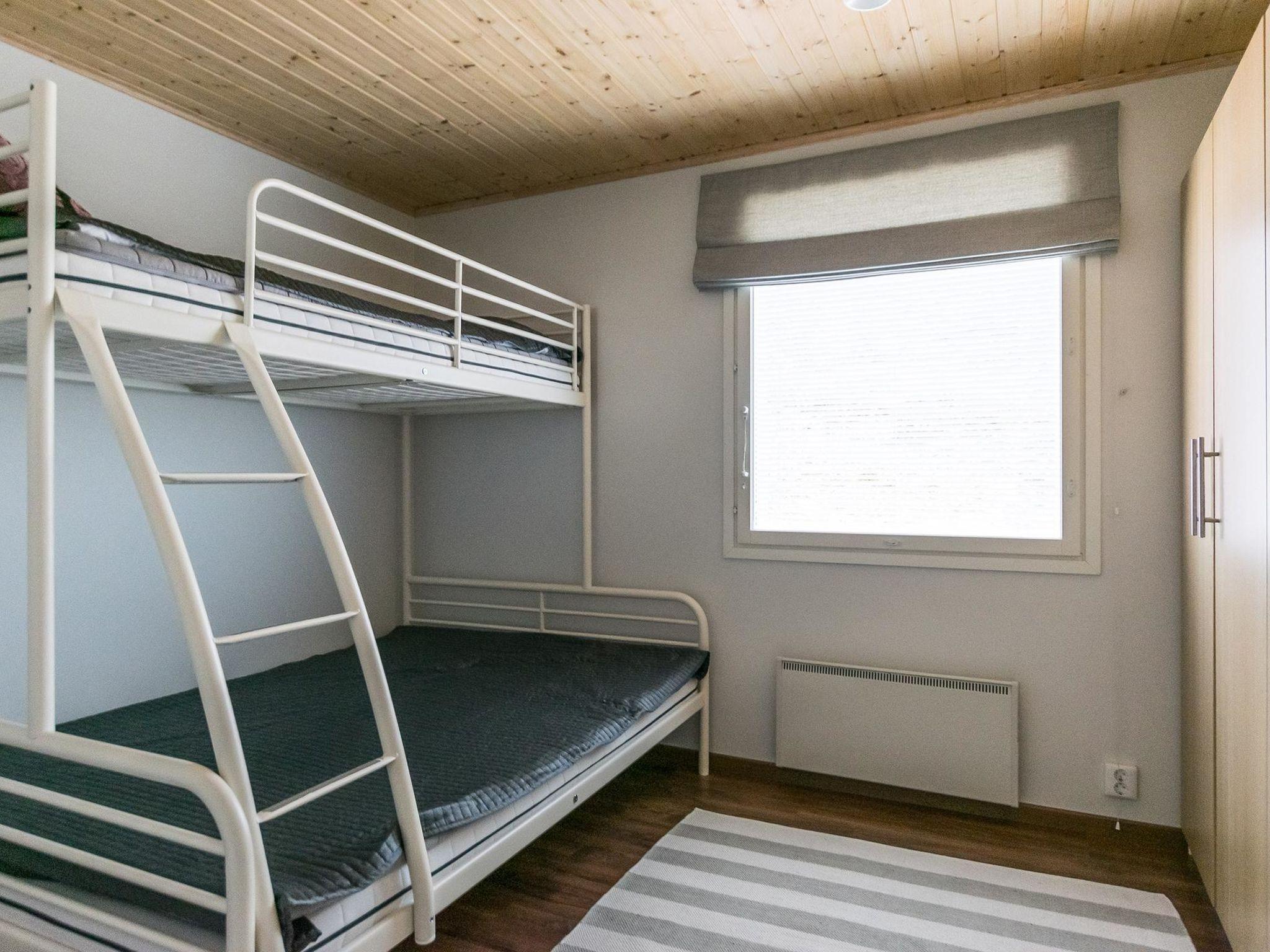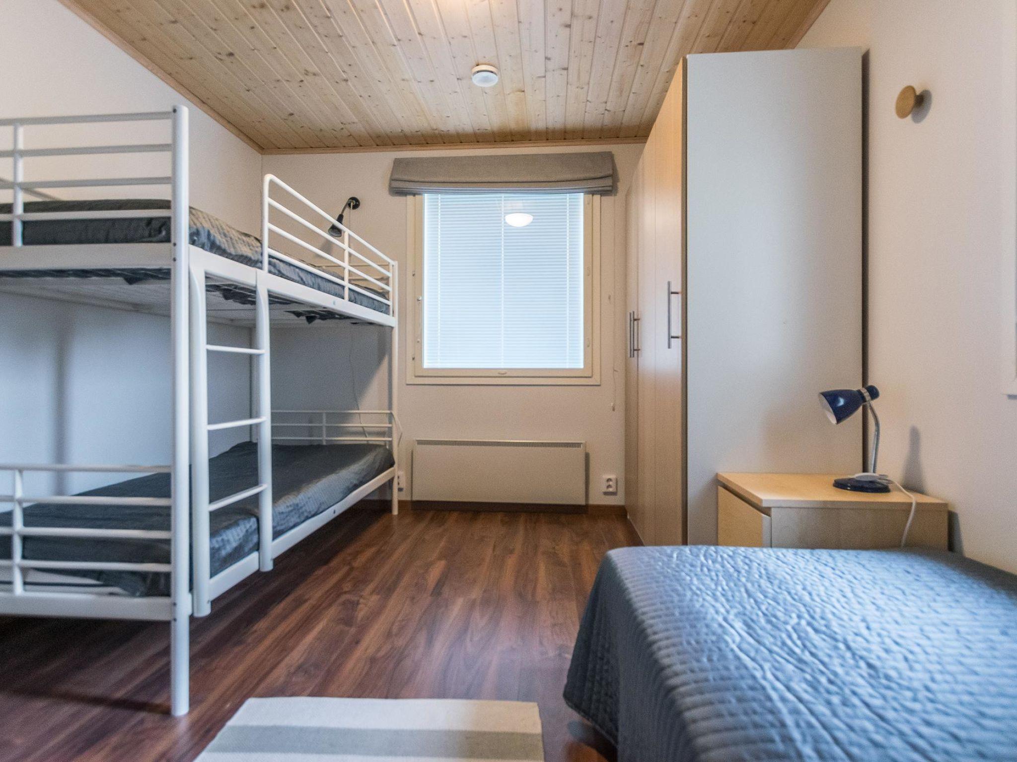 Upstairs there is a toilet and shower, two bedrooms with two separate beds, one bedroom with bunk bed (lower bed 140*200cm, upper bed 90*200cm) and one bedroom with bunk bed and separate bed.