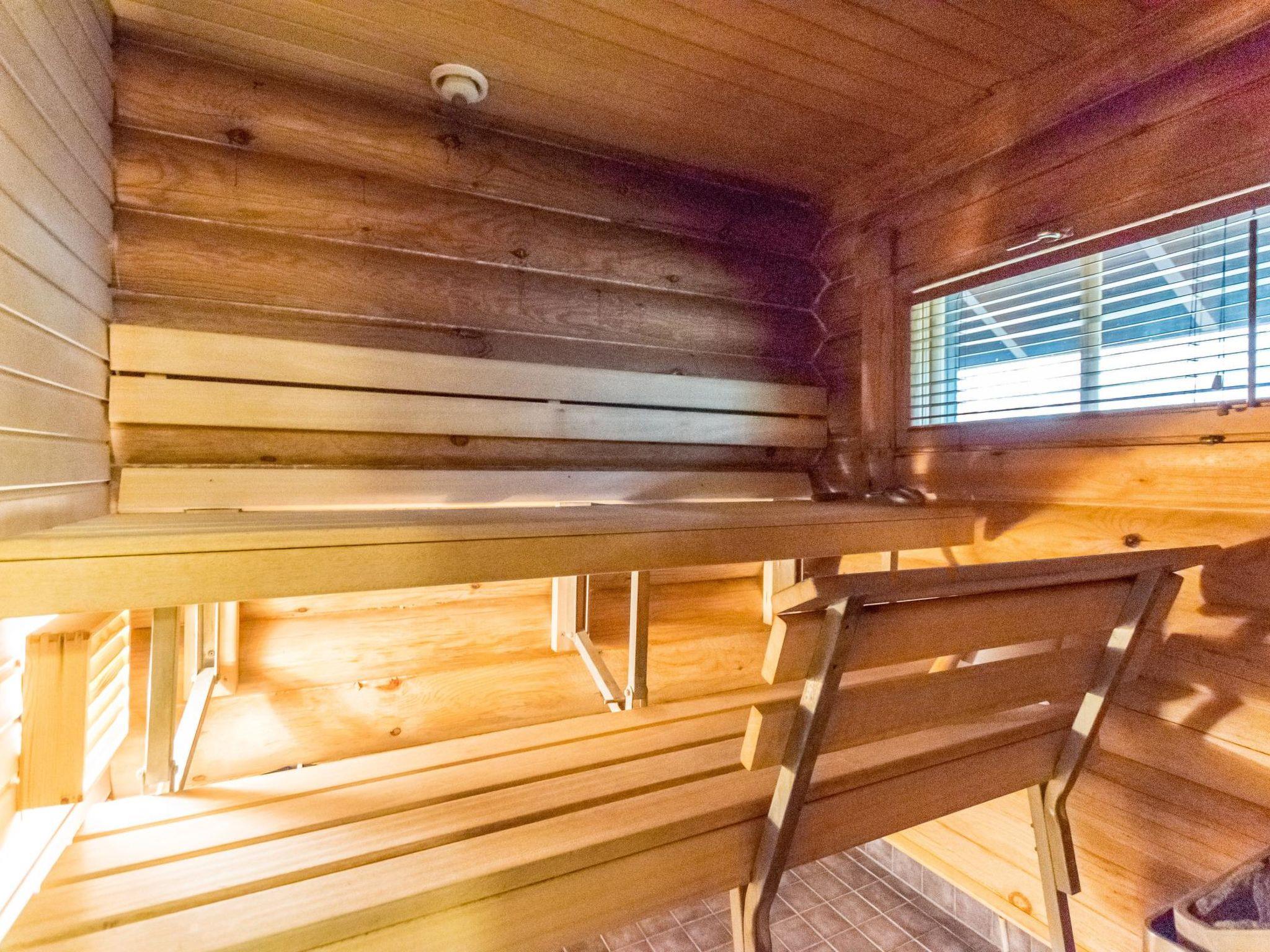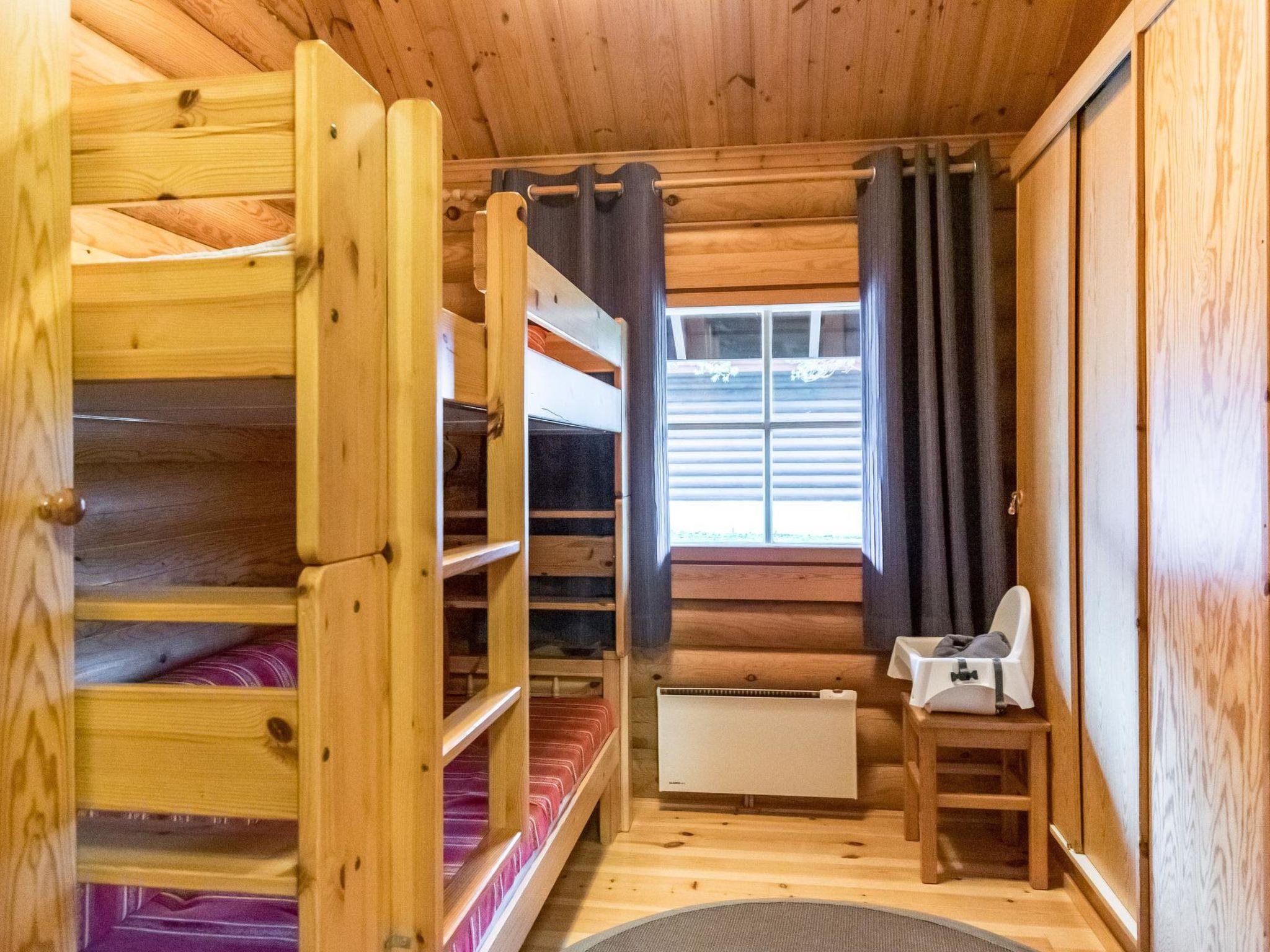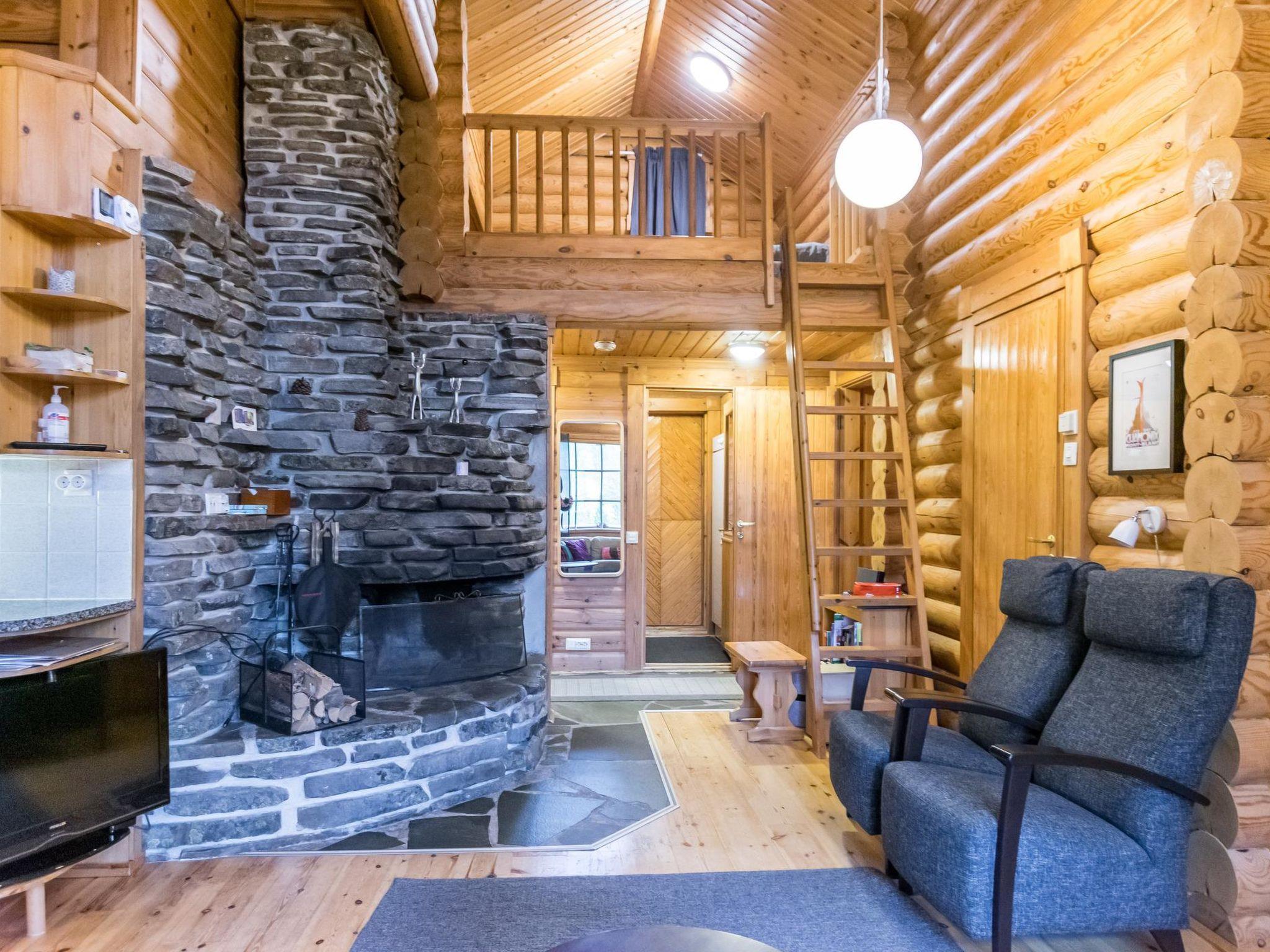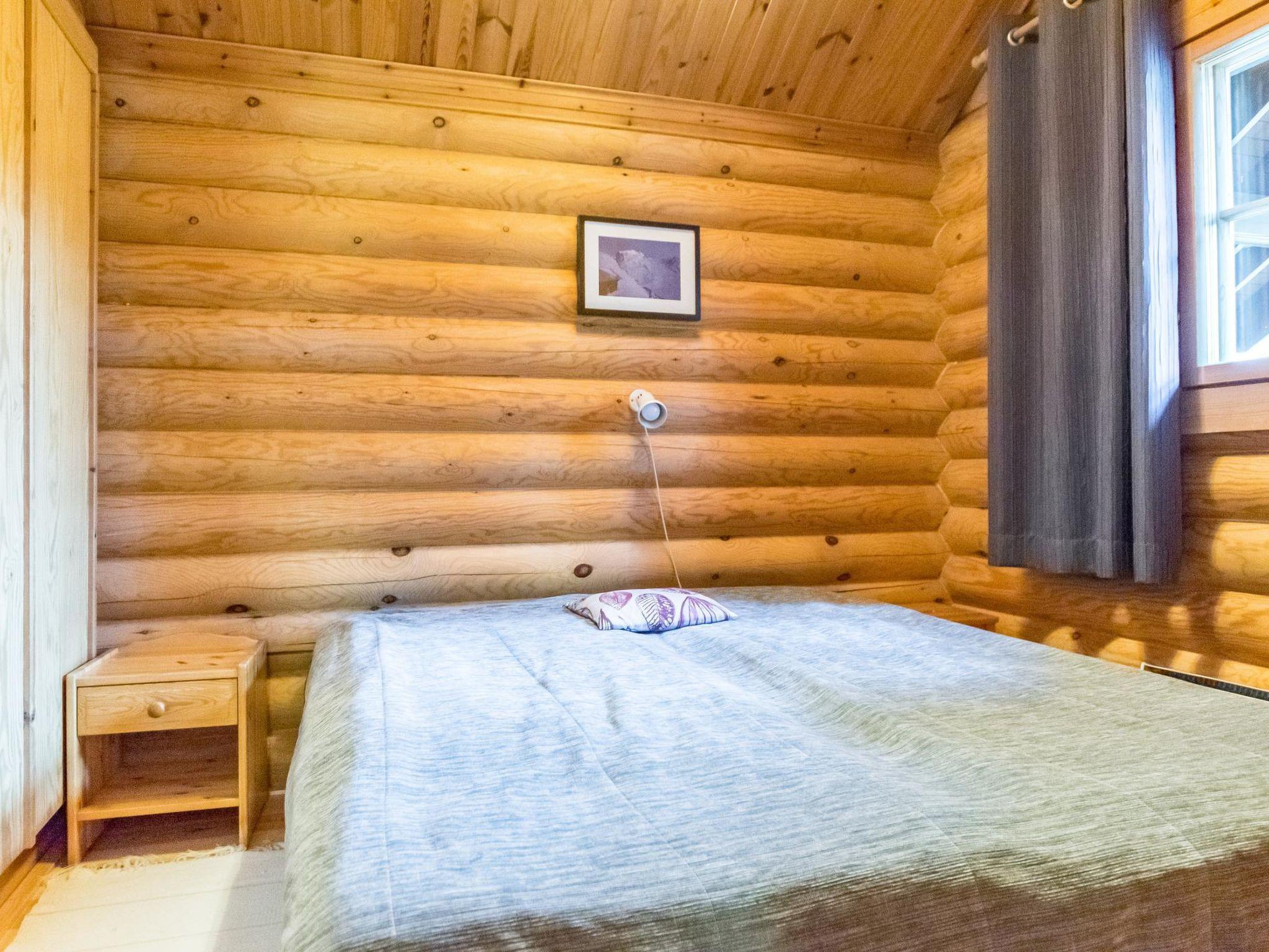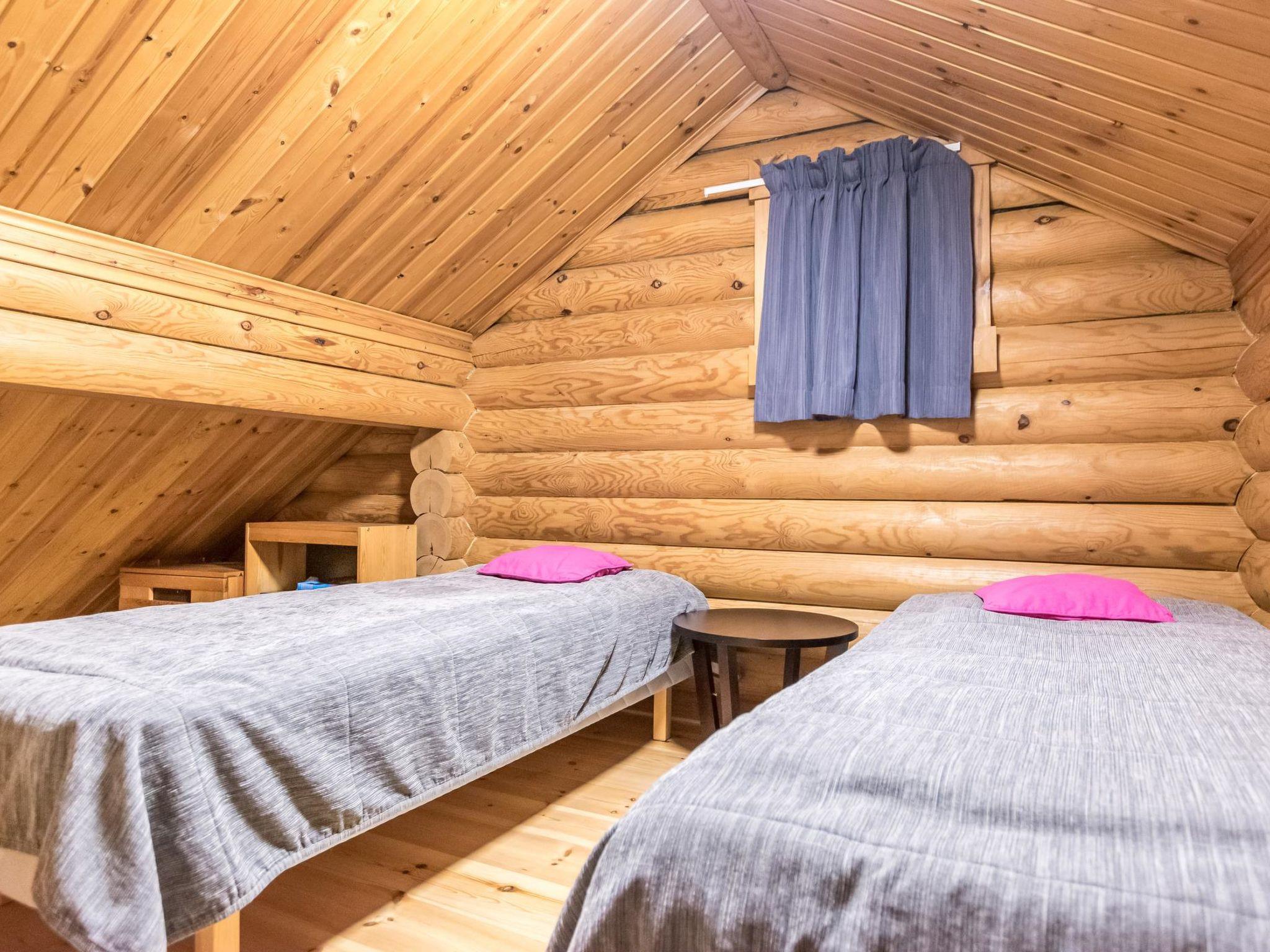 Round log cottage built in 1990. 50 km north from Kemijärvi. Downstairs kitchen/living room, two bedrooms (2 x 80 cm beds) and one bedroom with sofa-bed, WC, bathroom with two showers and sauna. Upstairs sleeping loft (2 x 80 cm bed). Large terrace.