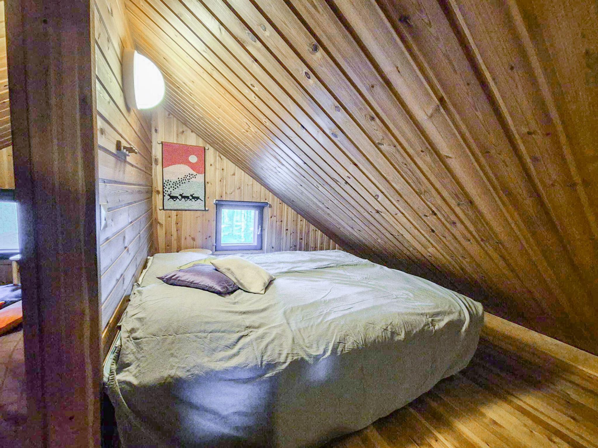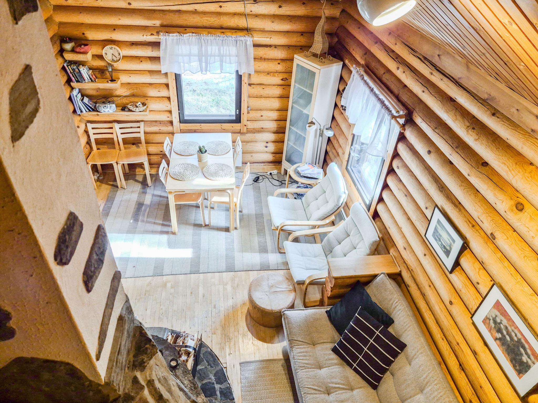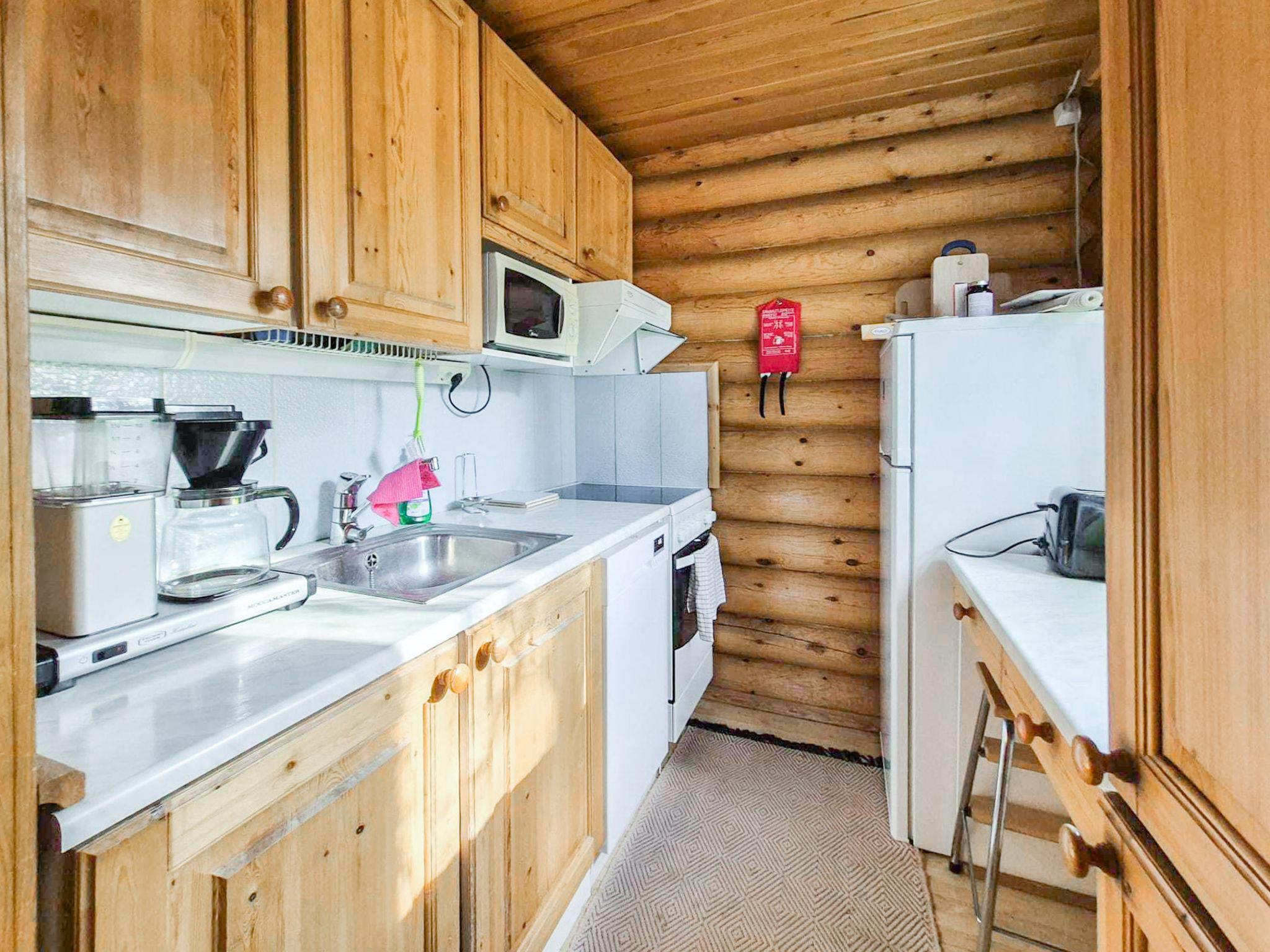 45 km north of Kemijärvi. Log cabin built in 1988. Kitchen alcove, living room, bedroom with double bed, low loft with two double beds, washroom, sauna (elec. stove), open porch.