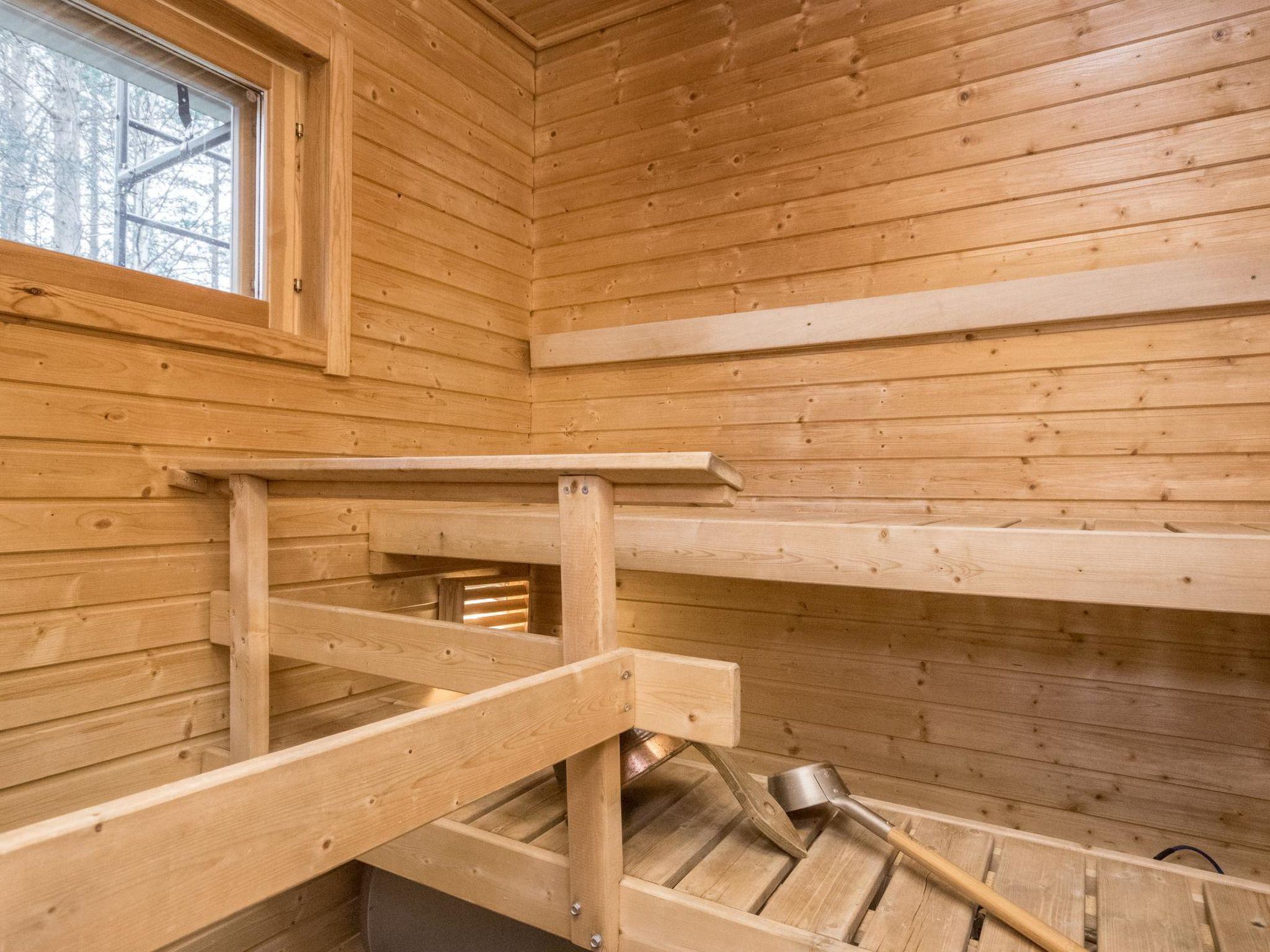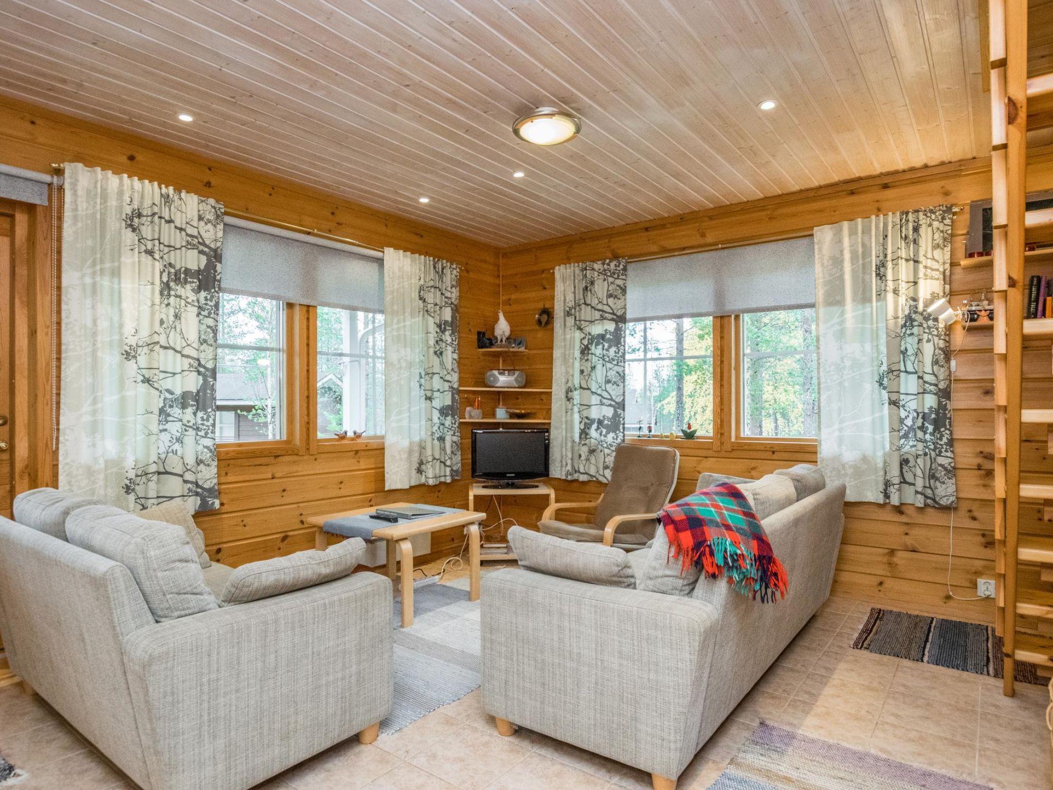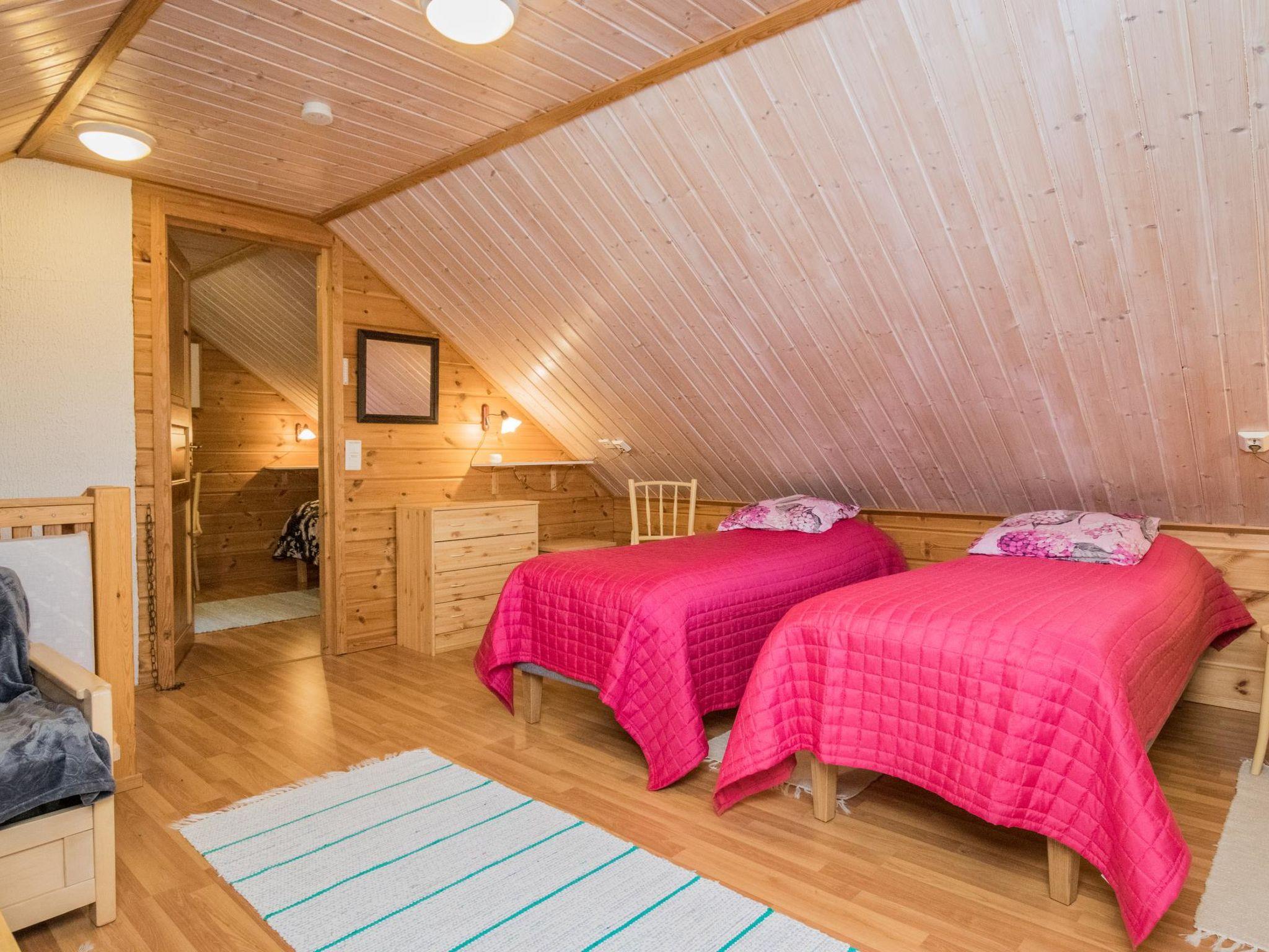 45 km north from Kemijärvi. Log cabin built in 2003. Downstairs living room/kitchen, bedroom with double bed, toilet, washroom and sauna (electric stove). Upstairs bedroom with two separate beds, in loft double bed and couch with two extra beds, balcony. Separate wood storage room and outdoor storage with ski waxing room.
