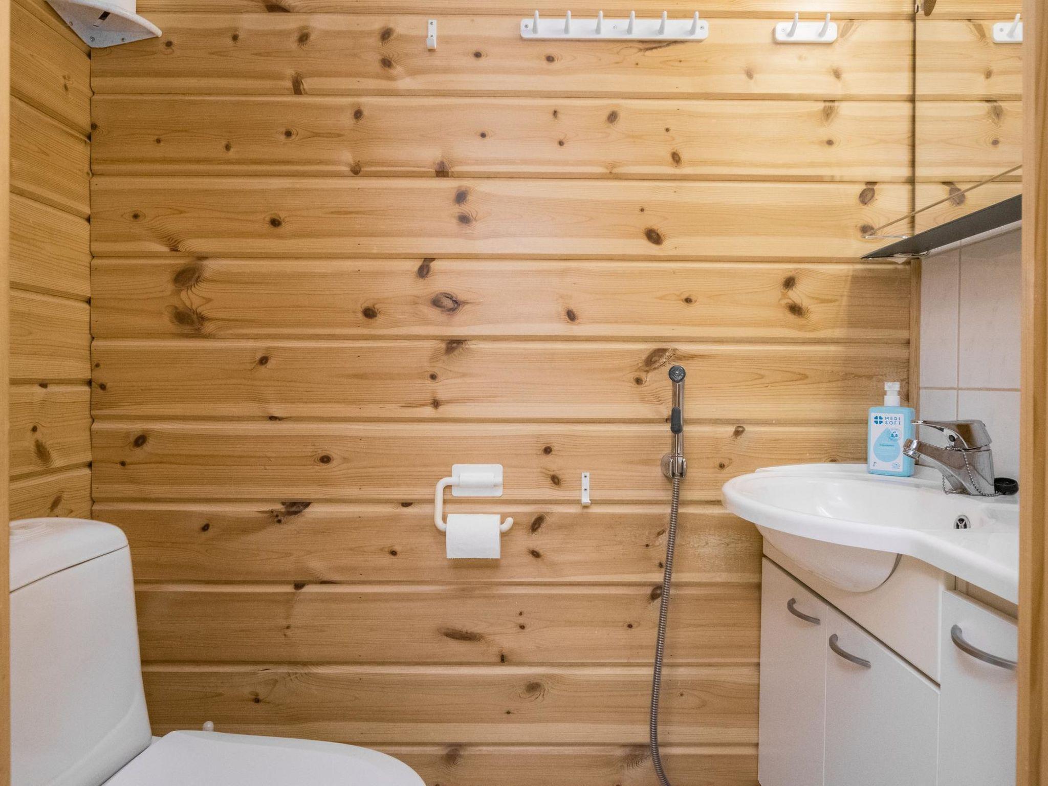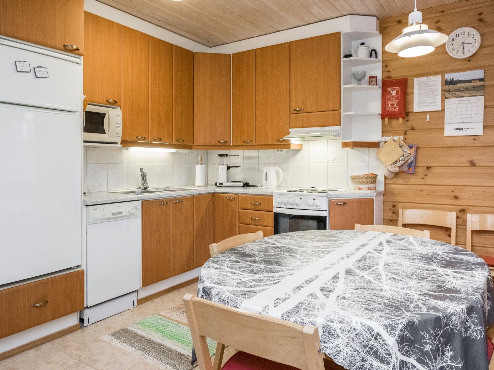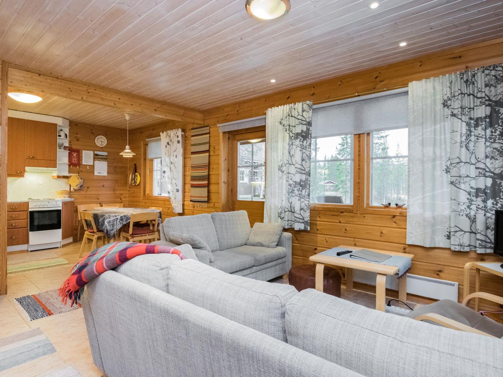 45 km north from Kemijärvi. Log cabin built in 2003. Downstairs living room/kitchen, bedroom with double bed, toilet, washroom and sauna (electric stove). Upstairs bedroom with two separate beds, in loft double bed and couch with two extra beds, balcony. Separate wood storage room and outdoor storage with ski waxing room.