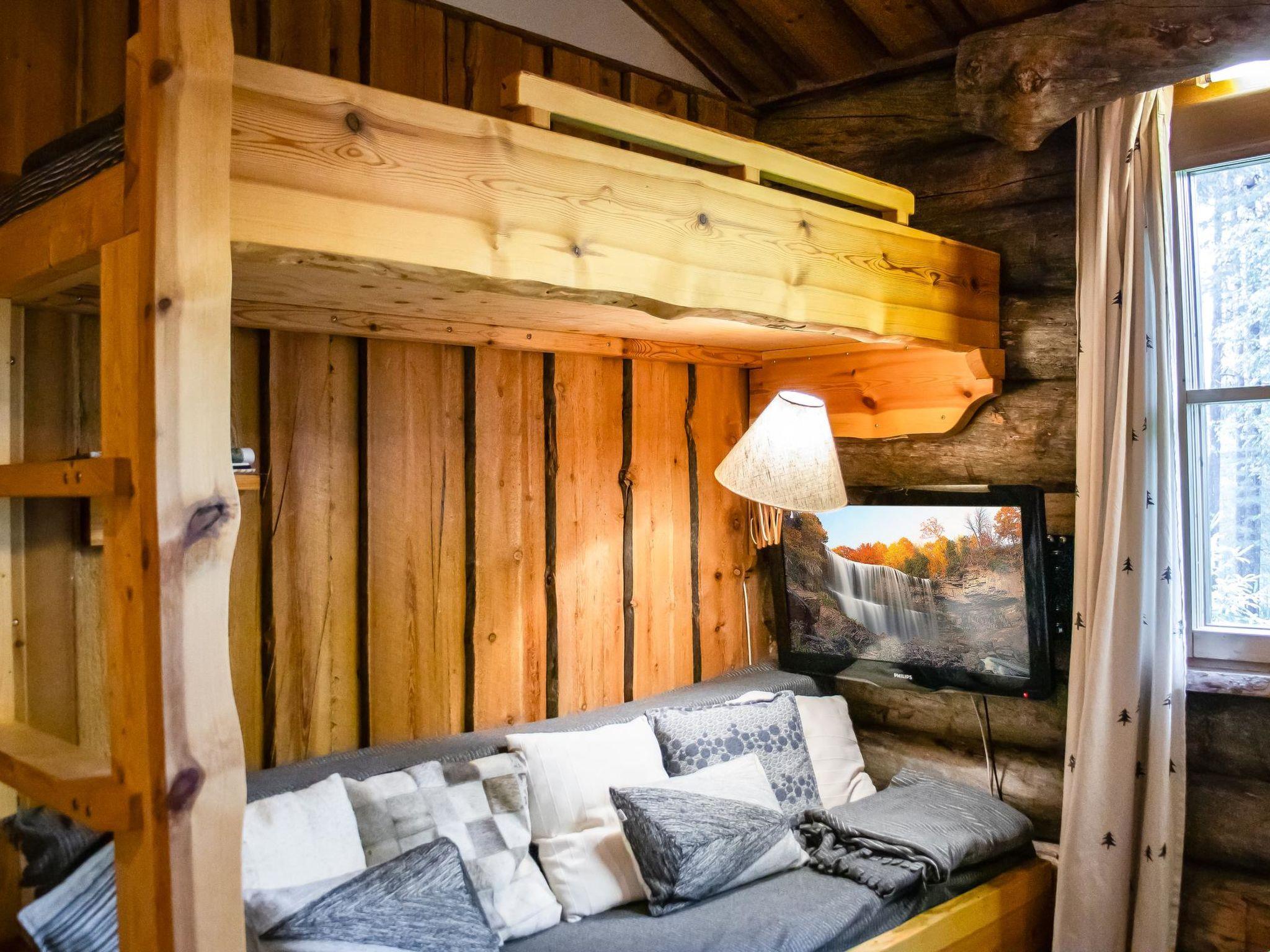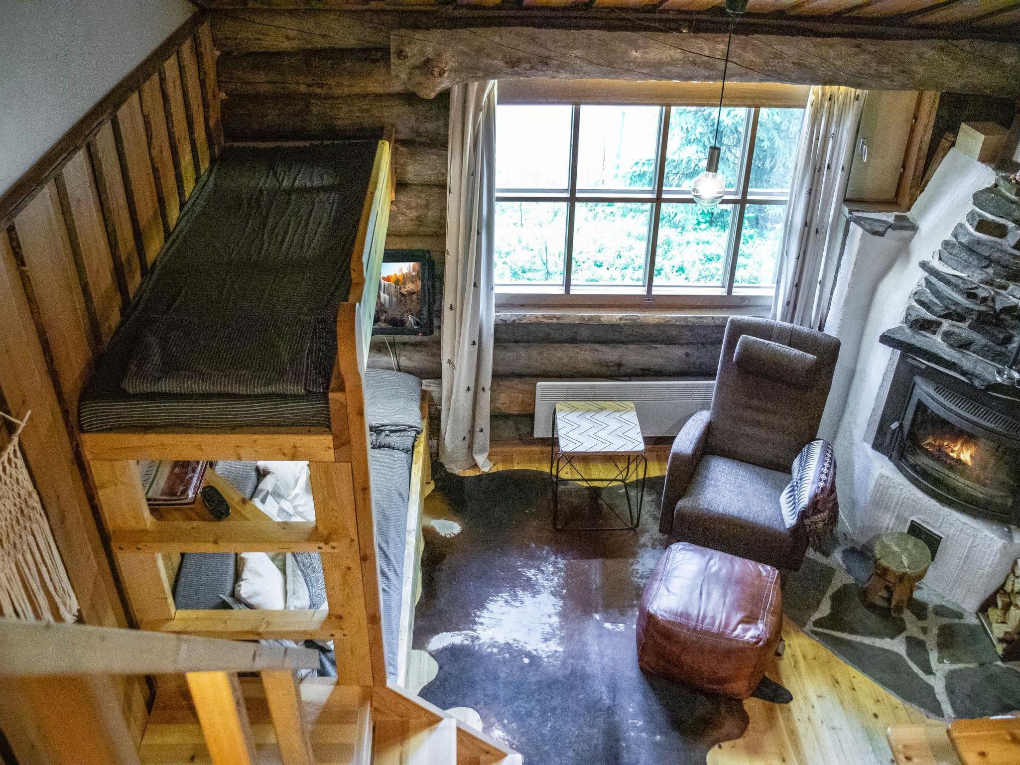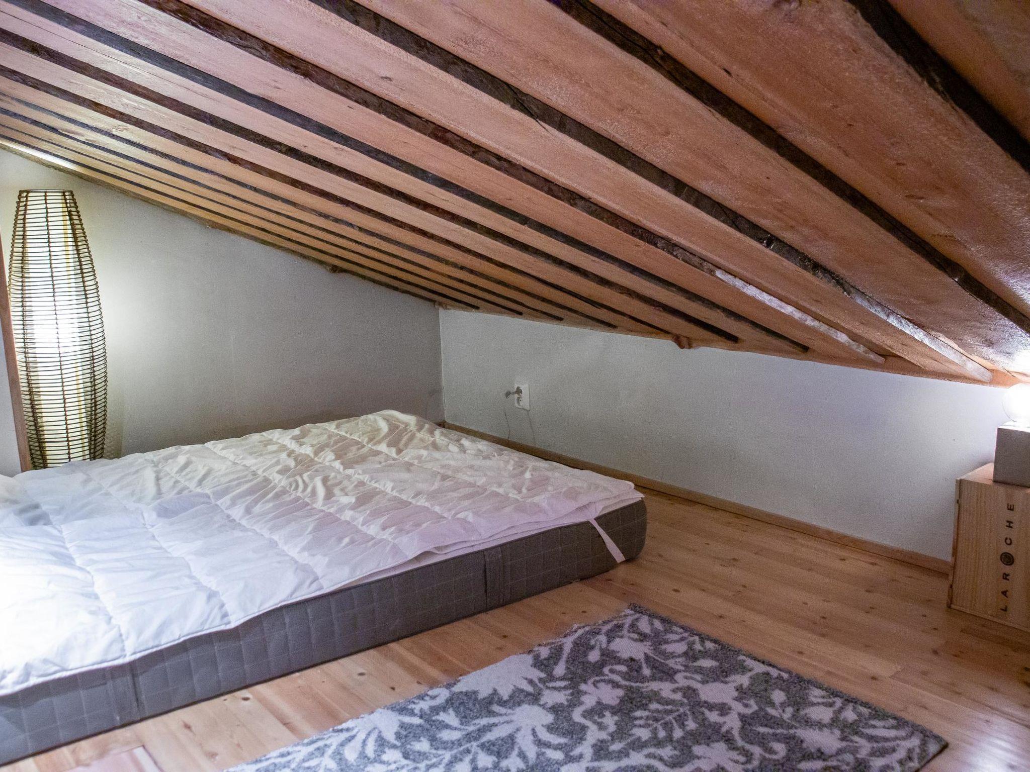 Sleeping arrangements: in the living room, the upper bed of the bunk bed (80x200 cm), on the loft a 140 cm wide mattress for two, and a bed for one (80x200 cm).
