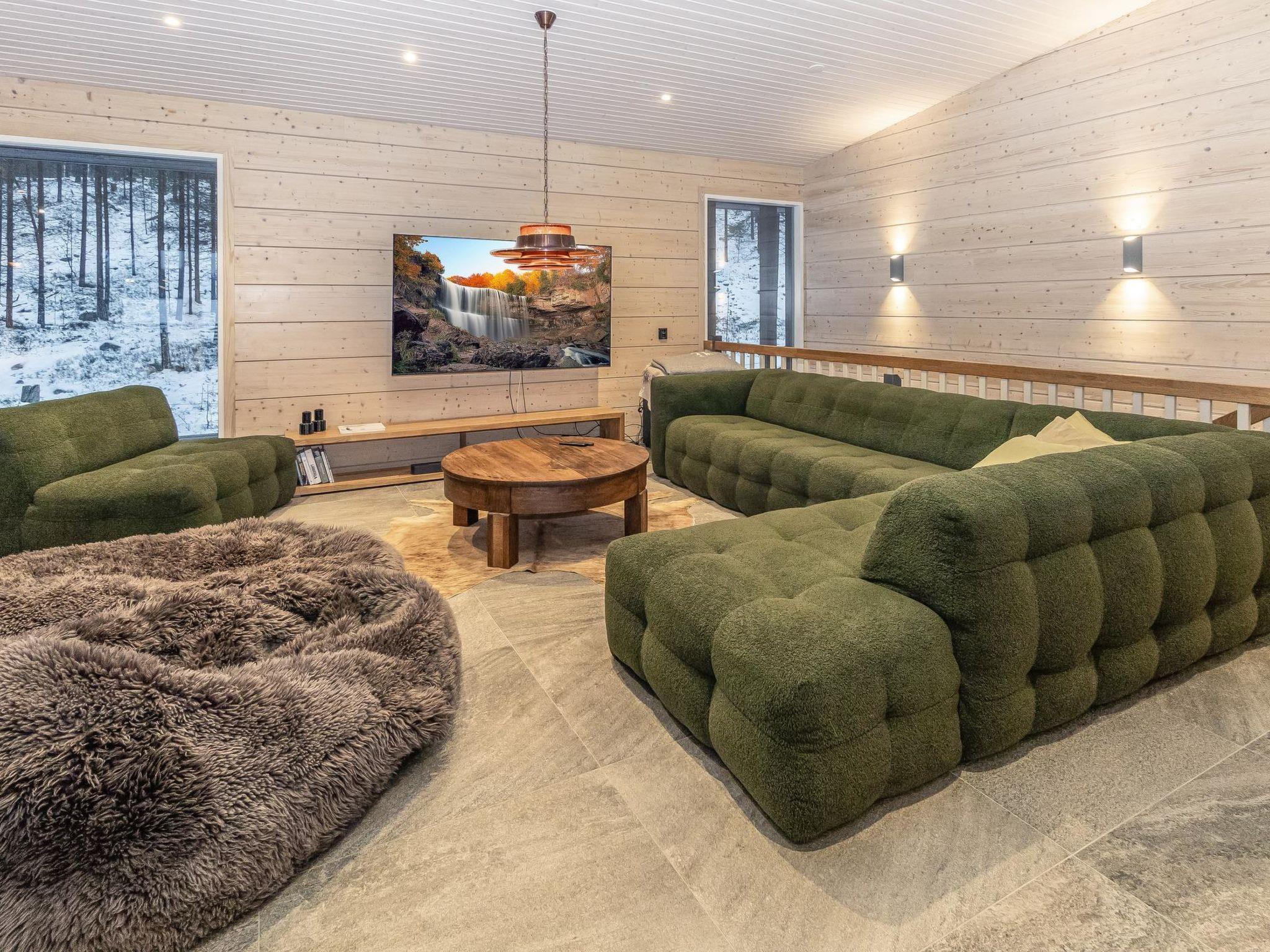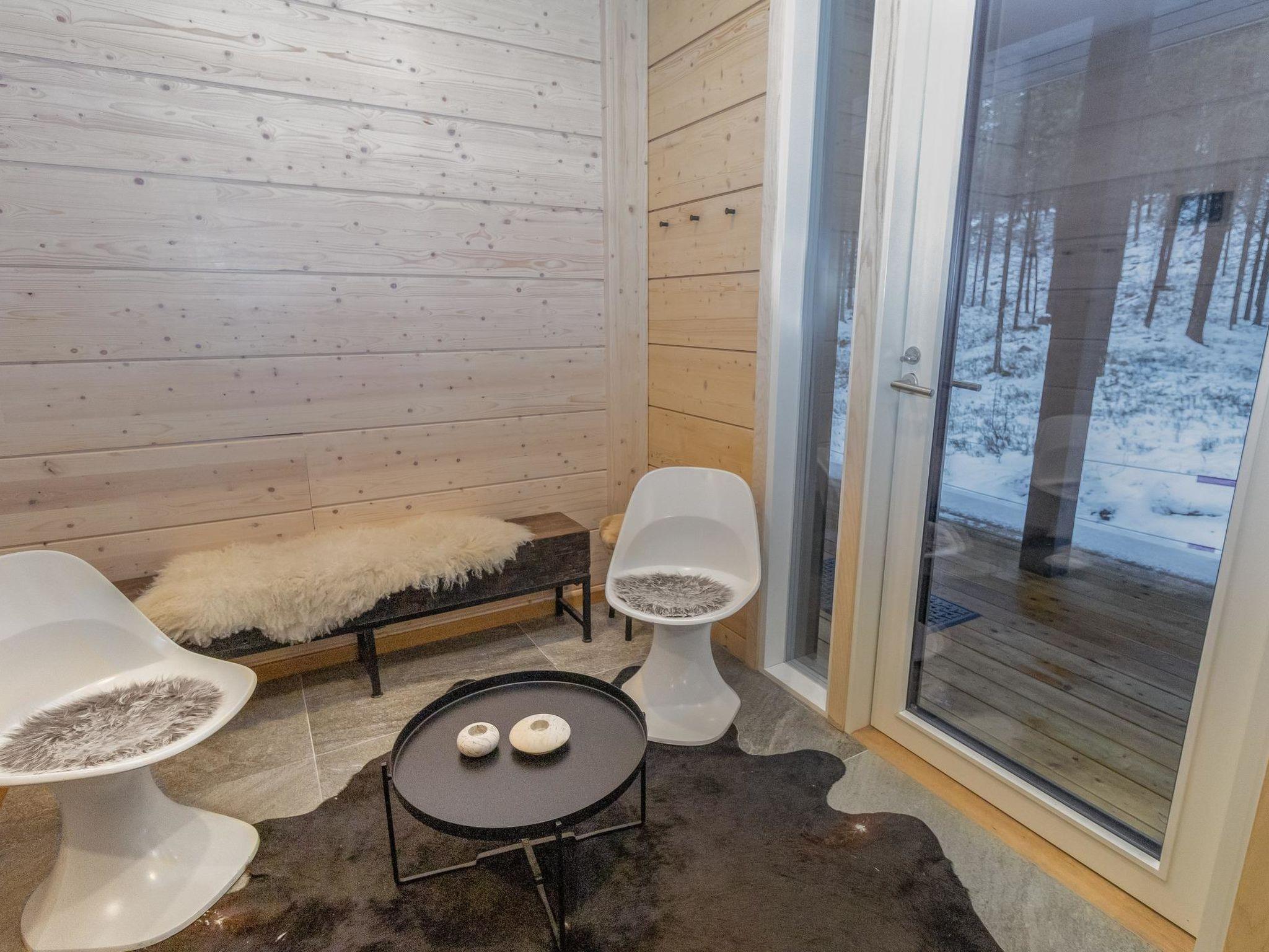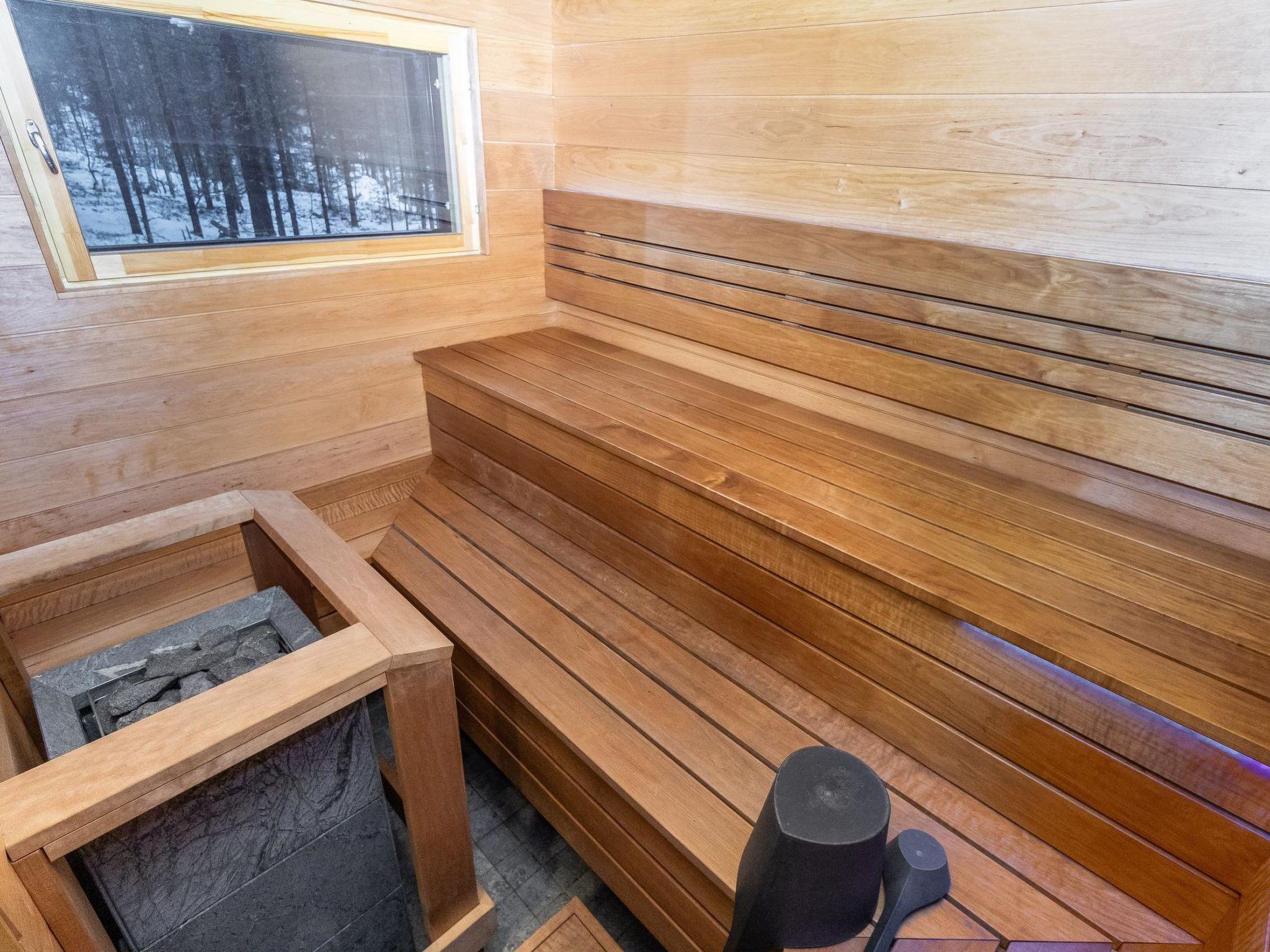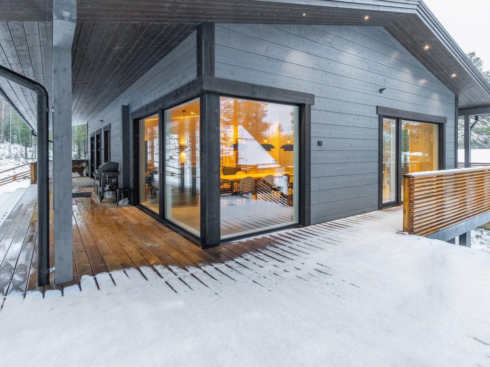 A covered terrace that wraps around three sides of the upper floor invites you to enjoy the enchanting views. You can start skiing directly from the villa, or just a 200-meter walk brings you to the ski lifts and slopes of Pyhä Ski Resort.