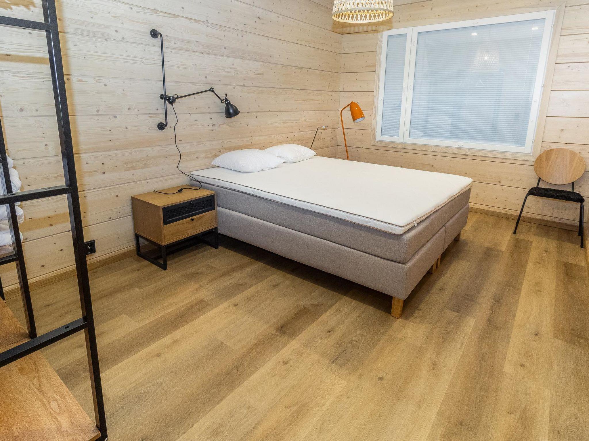 The villa’s large and bright living area offers plenty of space for relaxation and socializing, with space for up to 14 people at the dining table. This 2023 built wooden villa boasts top-notch amenities: a fully equipped kitchen and a living room with a cozy fireplace, spacious sauna and washroom facilities, and modern conveniences that make everyday life feel like a holiday.