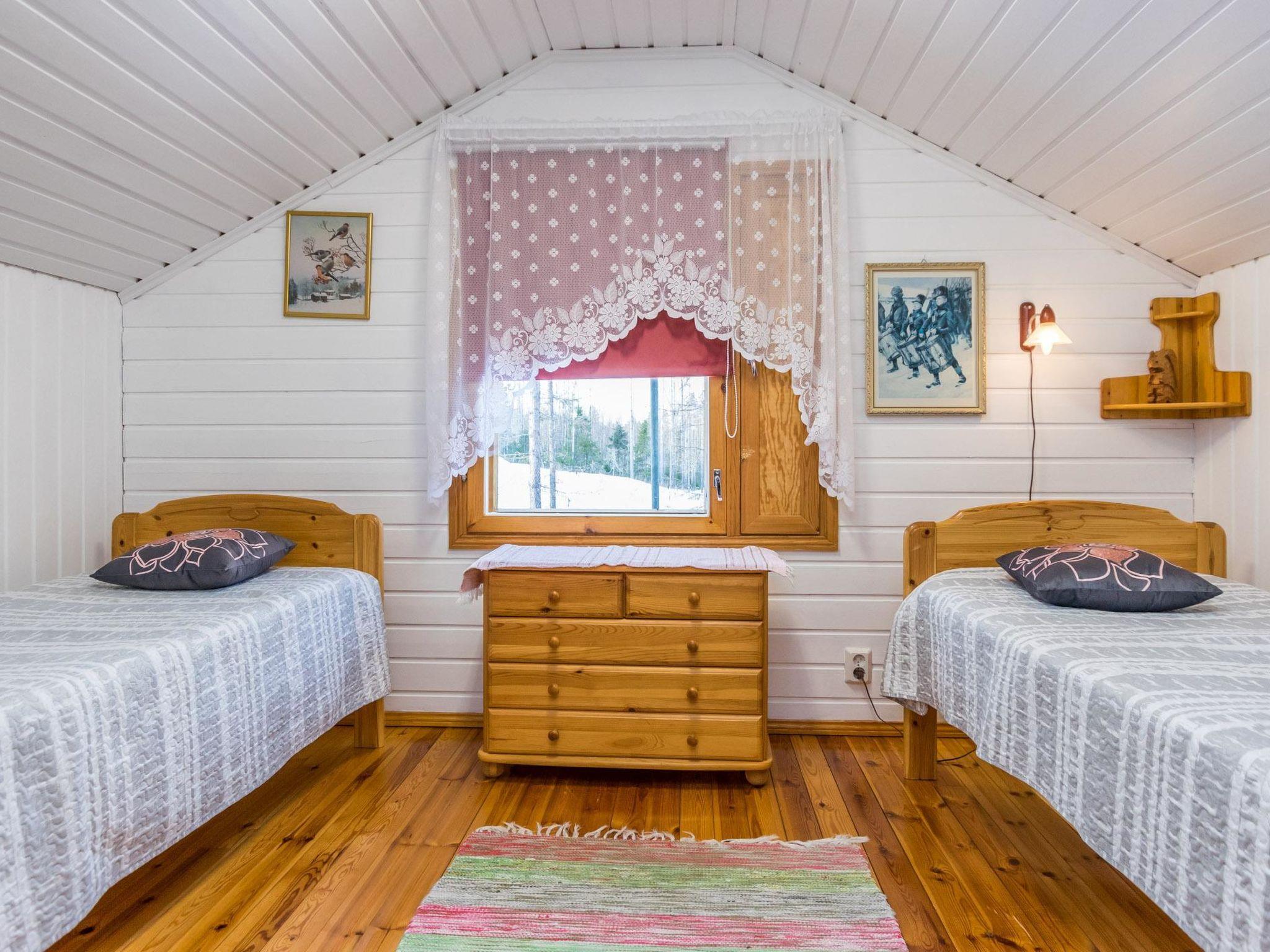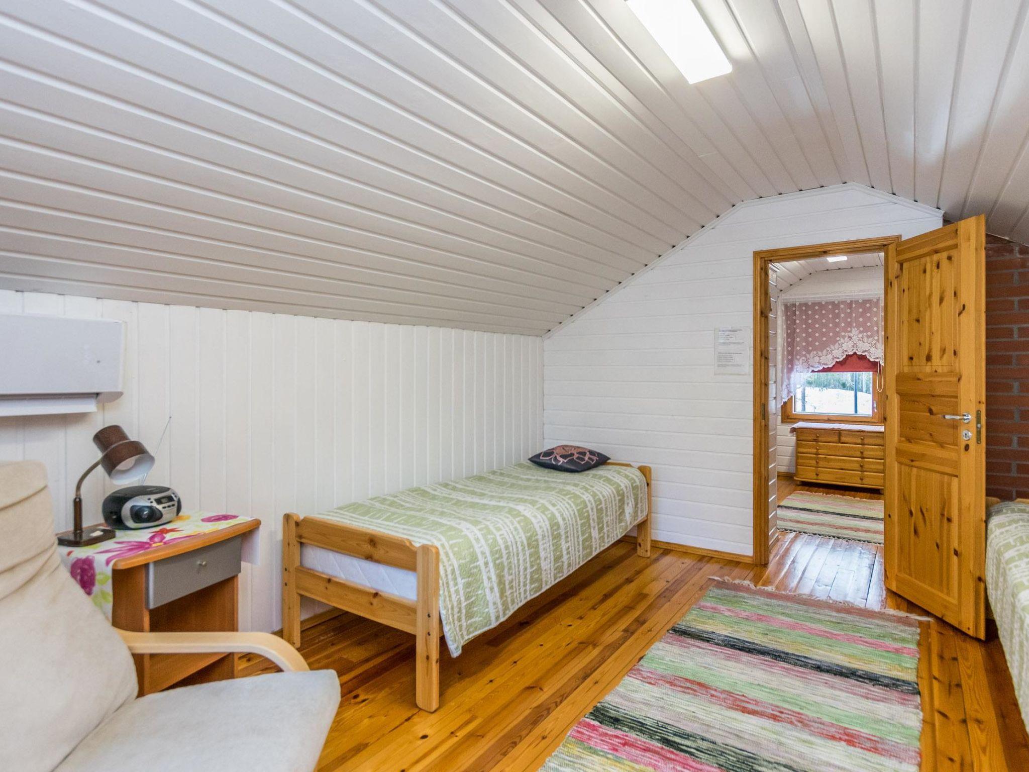 18 km südwestlich von Pieksämäki, See Niskajärvi 20 m (Länge 6 km, Breite 1 km), flacher und harter geschliffener Lehmboden, eigenes Boot. Holzferienhaus, Baujahr 1995, Wohnzimmer mit Küche, Schlafzimmer mit 2 Betten, im Obergeschoss Schlafzimmer mit 2 Betten, im Obergeschoss "Aufenthaltsraum" mit Zusatz-Doppelbett (Bett 140 cm breit), Sauna, 2 verglaste Terrassen (20 m² und 14 m²). Die Toilette befindet sich im Flur der Sauna, der Vorhang kann vor der Toilette gezogen werden (siehe Bild). Lagerung, Holzschuppen, Aussentoilette, Babybett und Hochstuhl. Ein Ferienhaus auf einem grasbewachsenen Hof, am Hang. Geeignet z.B. für eine Familie. Durchgang nach oben durch die Veranda und Balkon im Freien über steile Treppen. Obergeschoss 24 m² und Balkon 7 m². Die Toilette ist ein "Durchgangsraum" ohne Tür, auf dem Weg von der Küche zur hinteren Terrasse und Sauna. Die Dusche befindet sich im Dampfbad der Sauna. Der Eigentümer hat Bauernhof und Land (4 km entfernt). Auf dem Hof sind Ponys und Kaninchen zu sehen und im Sommer werden hier Erbsen und Erdbeeren zum Verkauf angeboten. Naarajärvi Kleinflugzeug-Flughafen 15 km, Kanuroute "Savon Amazon" 16 km, Angelplatz "Nykälän Koski" 18 km, Pieksämäki, Puppenhaus Tarinamäki 18 km, Mikkeli 80 km.