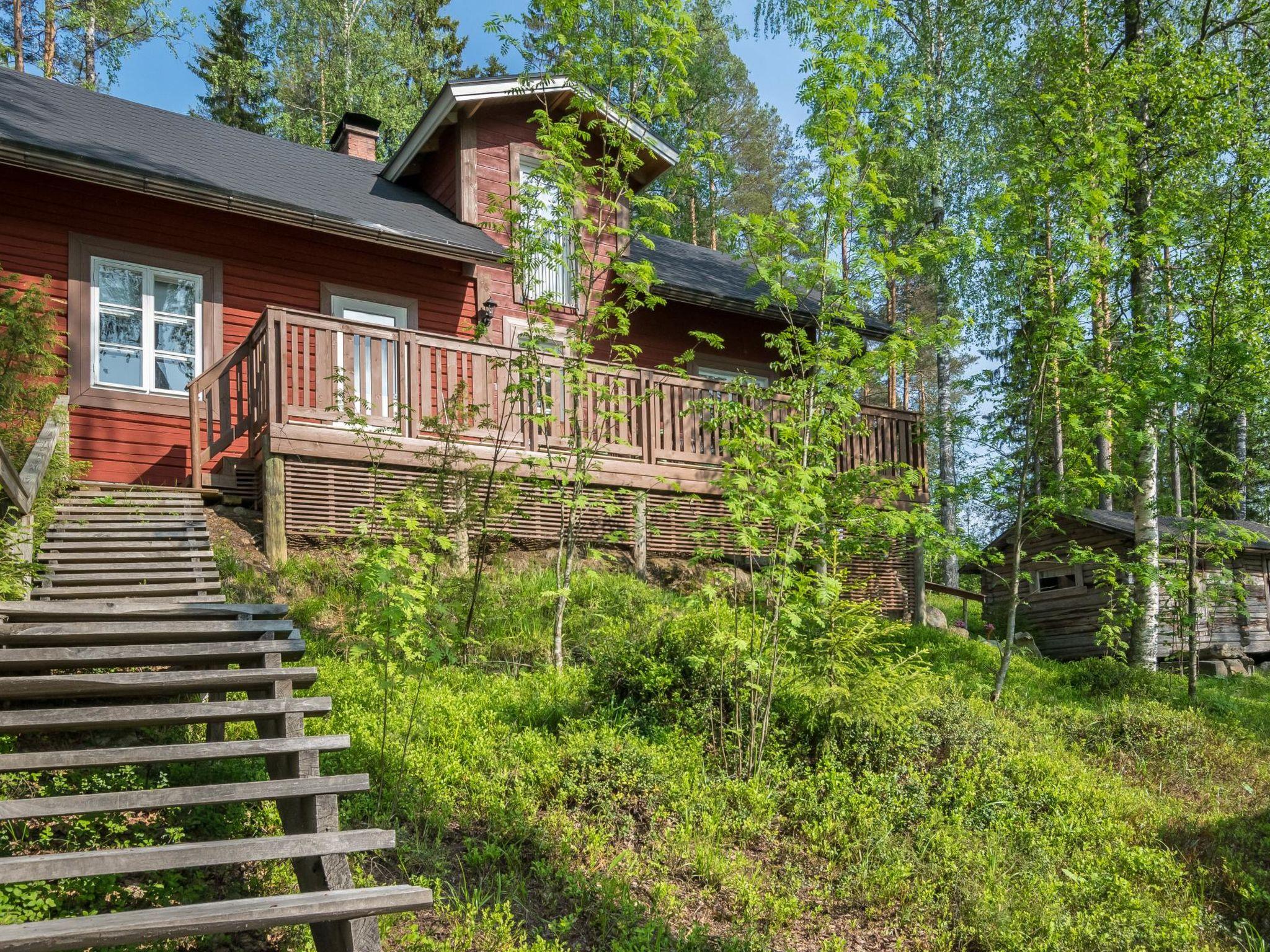 20 km nordwestlich von Varkaus, See Suontjärvi 25 m (Breite 0.4 km, Breite 3.5 km), sandiger und flacher Kinderstrand und tiefer Sandschlammboden neben dem Anlegestelle, eigenes Boot. Blockhaus, Baujahr 1991, 2016 komplett renoviert, Wohnküche, Schlafzimmer (10.5 m²) mit Doppelbett, Dusche/Toilette, Veranda. Im Obergeschoss Schlafnische mit 2 Betten und flachem "Kinderzimmer" (Raumhöhe max. 160 cm) mit einer Grundfläche von 25 m², zwei Betten und 1 Babybett. Separate Seeufersauna, Baujahr 1989, 15 m², Holzofen und Warmwasserkessel, Ankleideraum/Saunaraum-Ofenheizung, offene Veranda. In der Umkleidekabine befindet sich Holzsofa, das als alternatives Zustellbett verwendet werden kann. Hofgebäude, wo die Kinder spielen können. Überdachter Grill, separater Grill aus massivem Backstein. Bootshaus. Holzschuppen. Aussentoilette/Abstellraum. Renoviertes Ferienhaus mit stimmungsvollem und gemütlichem Interieur. Der Kamin spendet Wärme in den windigen Winternächten. Hof am Hang. Es gibt einen 1 km langen Naturlehrpfad, der von der Ecke der Seesauna aus erreicht werden kann. Mukkula Farm (www.mukkulanmaatila.com), Sadun talli (Reitställe) 10 km (www.vur.fi). Kanu zu vermieten. Jäppila 9 km, Varkaus 20 km, Leppävirta 25 km, Pieksämäki 25 km, Kuopio 80 km. In Leppävirta z.B. Sport %26 Kurhotel Vesileppis.