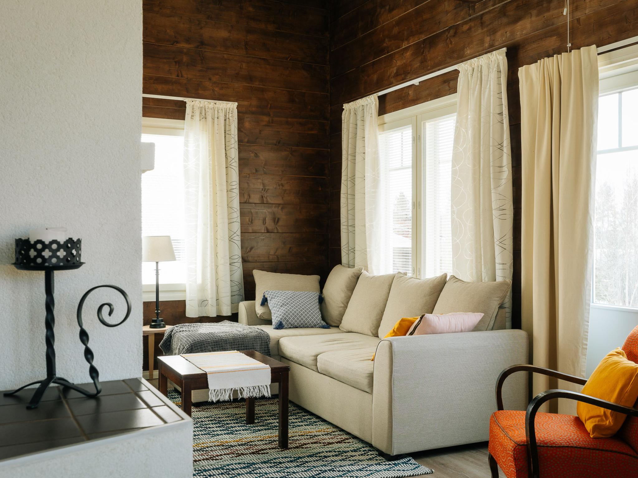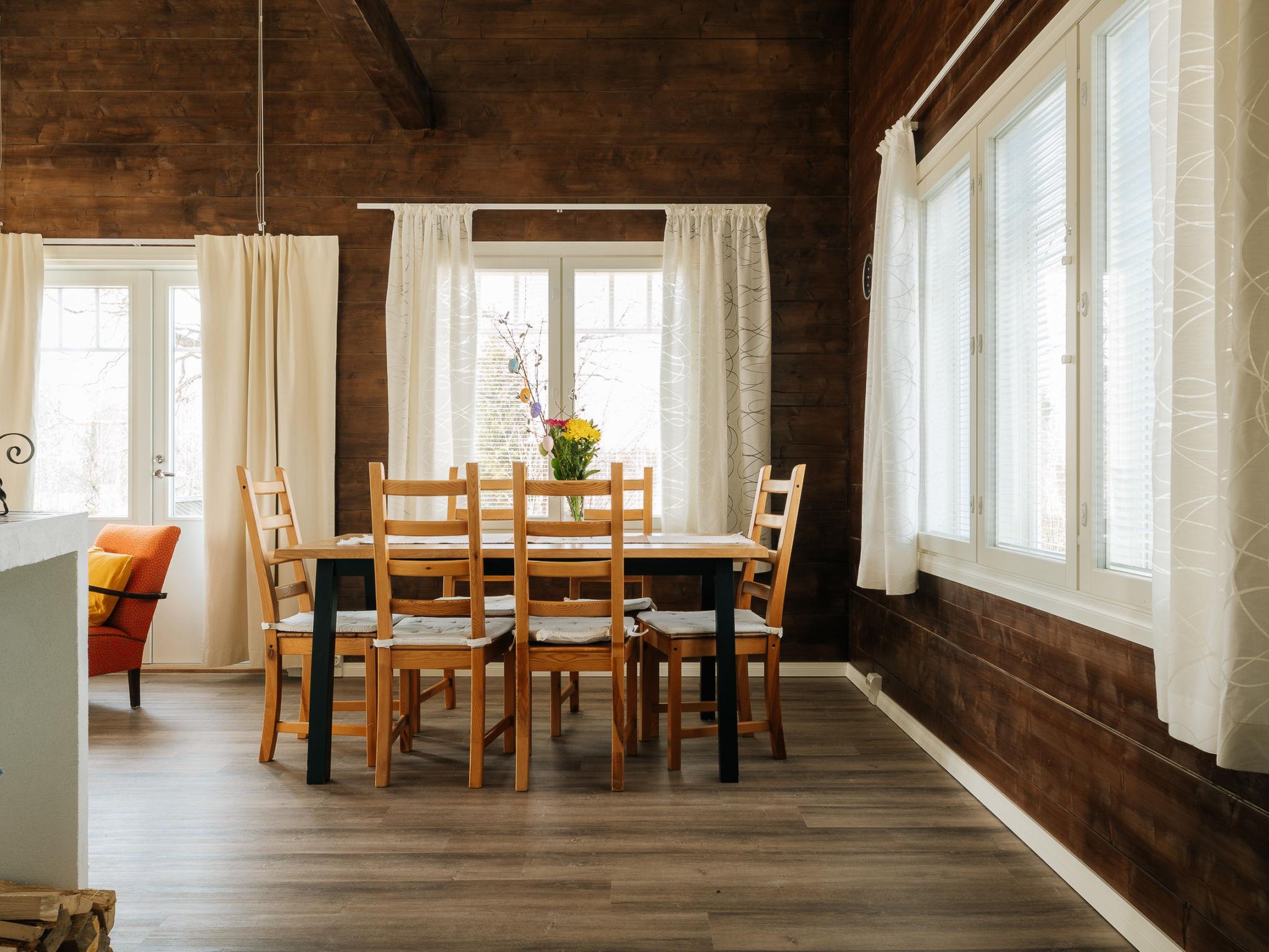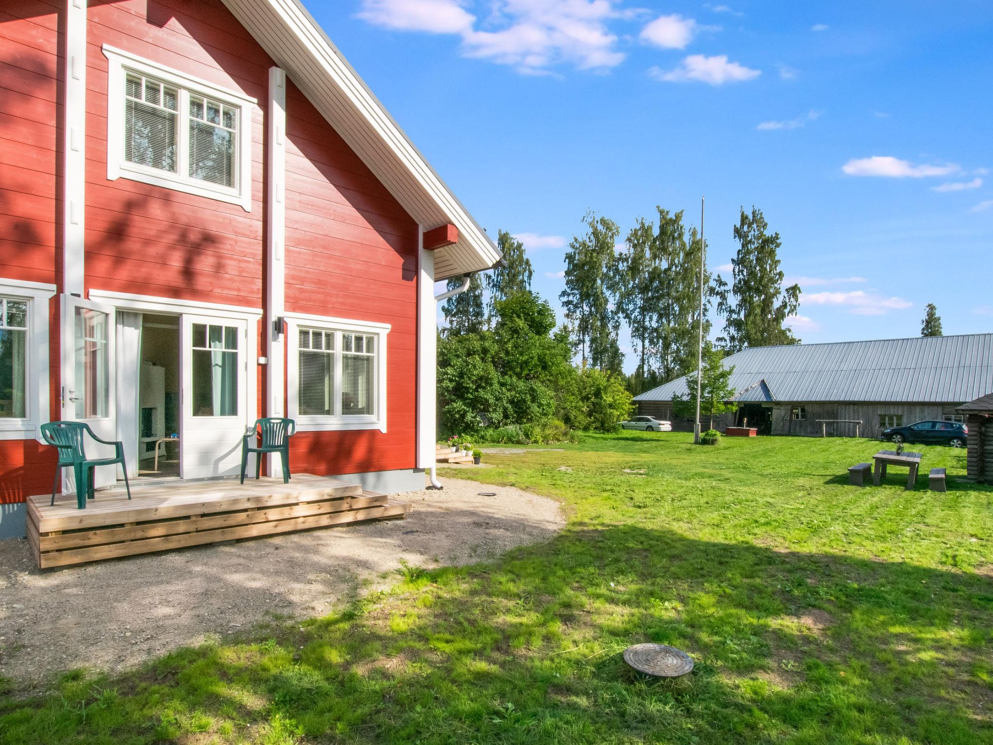 The two-story rental cabin overlooks the evening sun of the Venetekämä lake shore about 250 meters away. Venetekämä is about 4 km long and 1 km wide, hard, shallow sandy bottom, clean water lake in the watershed area, pier and rowing boat on the shore.