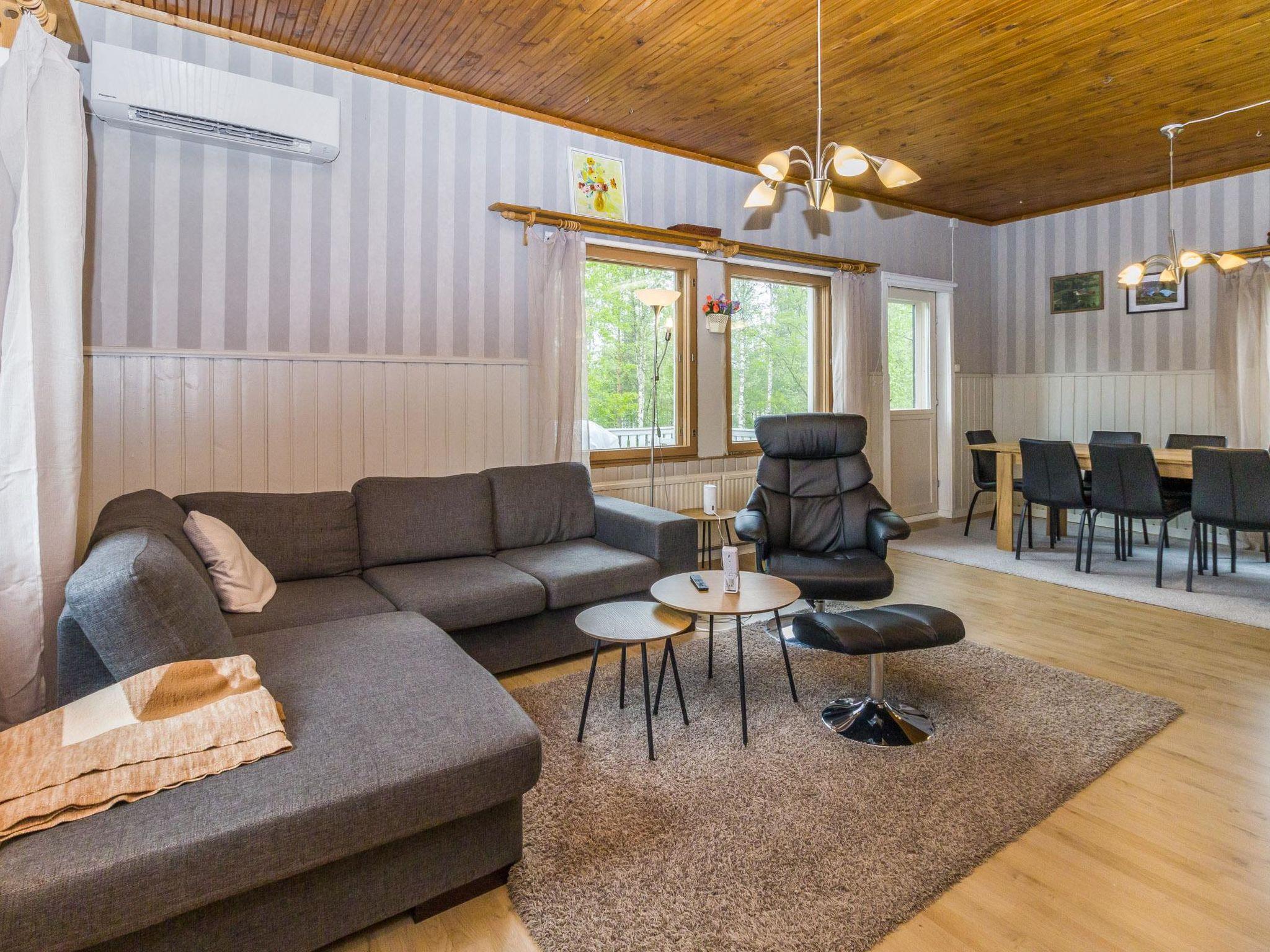 From the living room, step directly onto a large terrace facing the lake — ideal for morning coffee, grilling, or admiring the evening sun. A rowing boat is available for guest use, and the shared beach offers a refreshing swim in Lake Mourujärvi. The beach is steep, partly sandy and partly rocky.