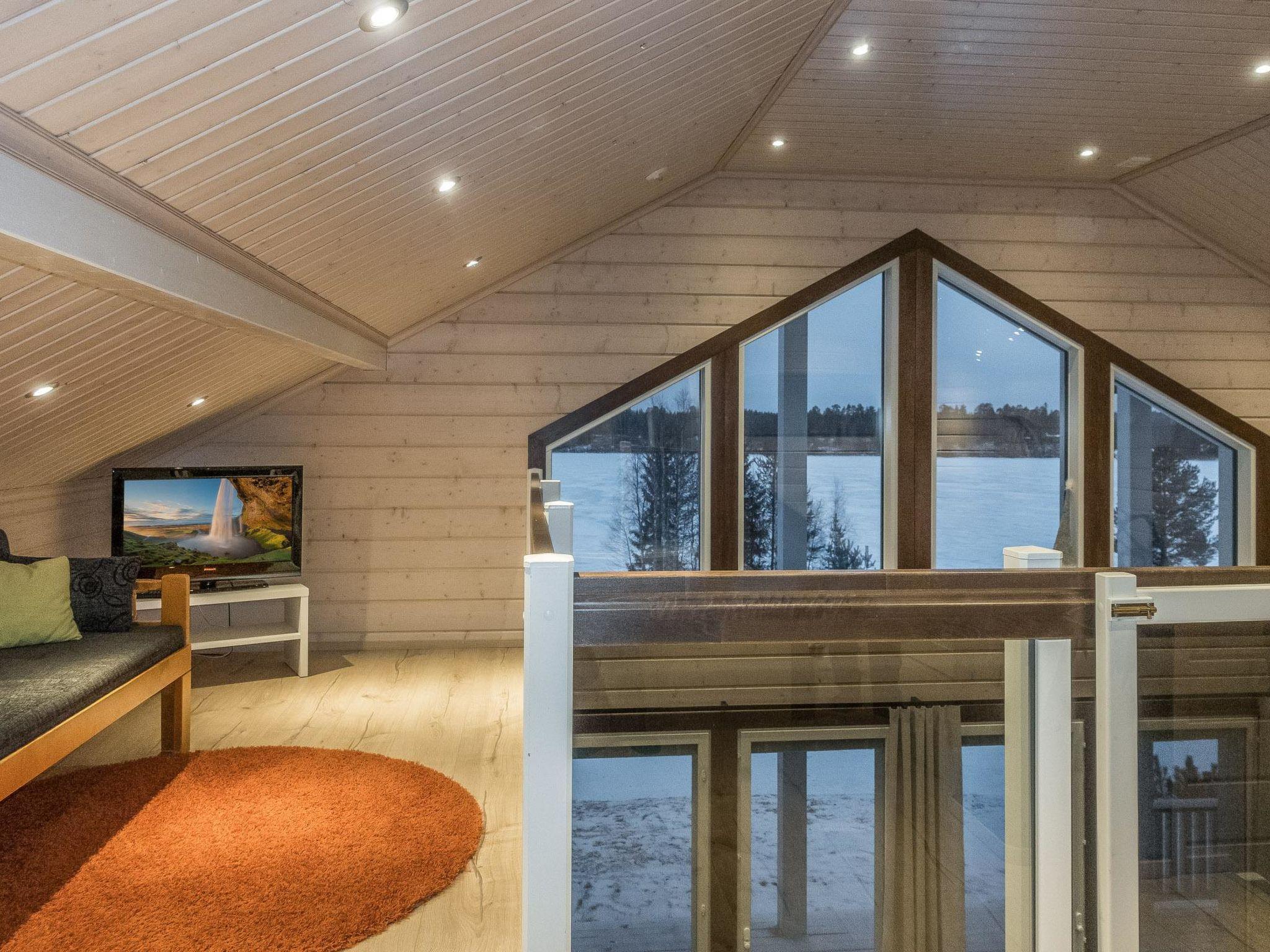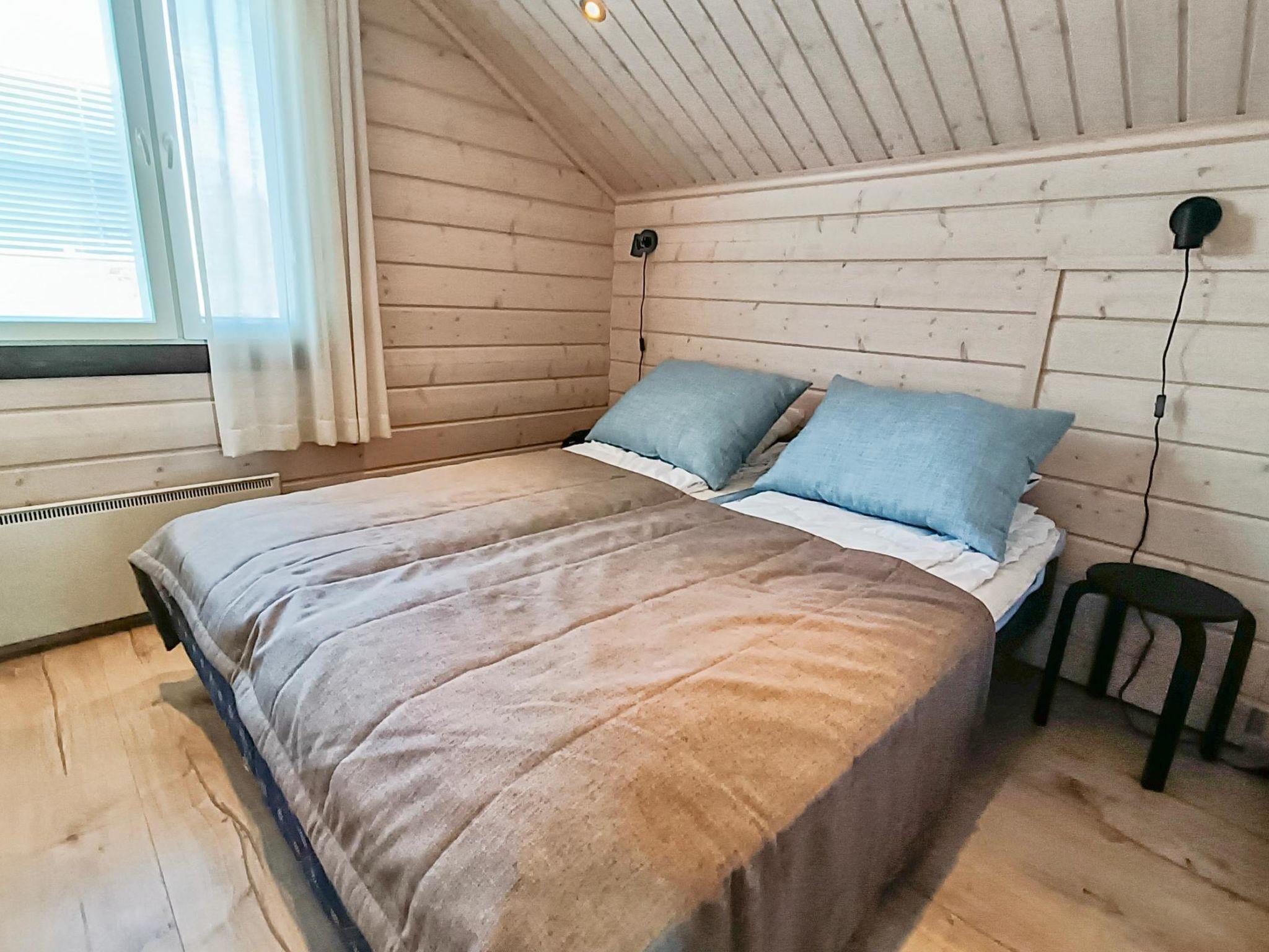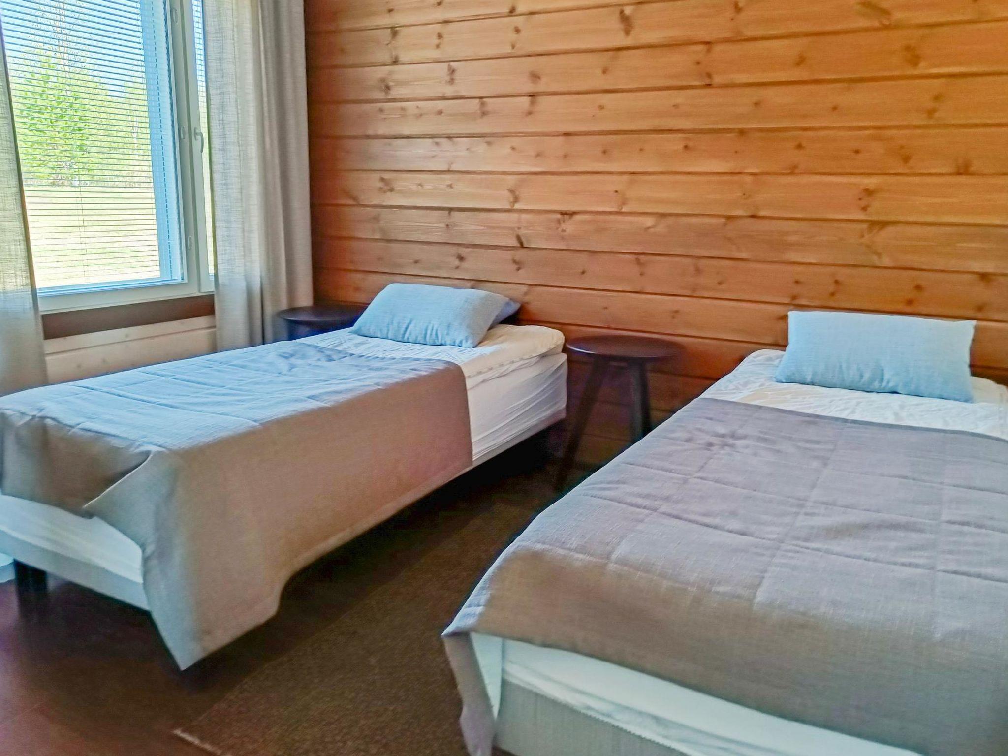 On the ground floor, guests can enjoy a spacious open kitchen and living area with large windows overlooking the lake scenery. Two bedrooms offer different accommodation options, one with a double bed and the other with two separate beds. In addition, the ground floor includes a sauna, a bathroom, a utility room, and a separate WC.