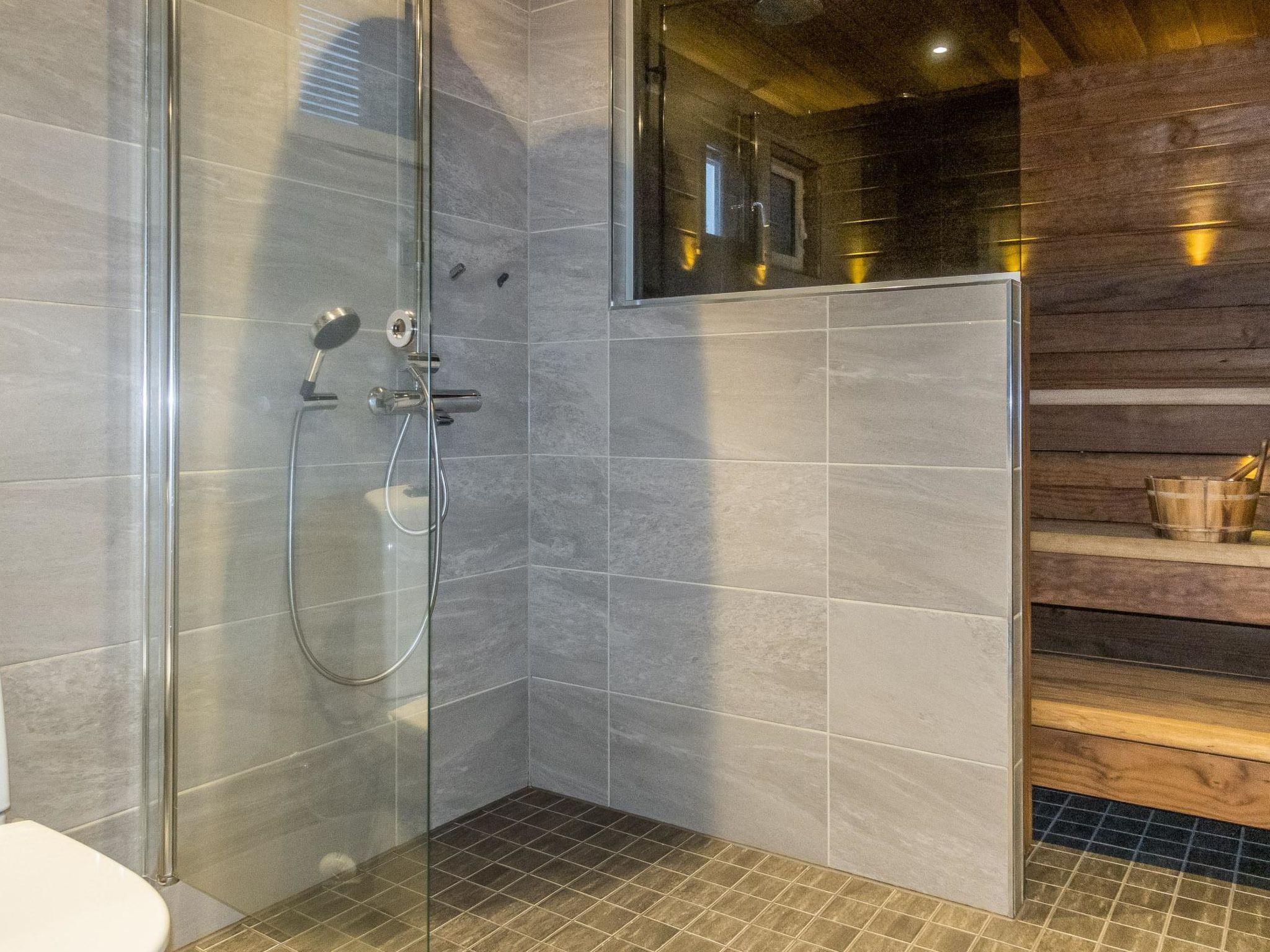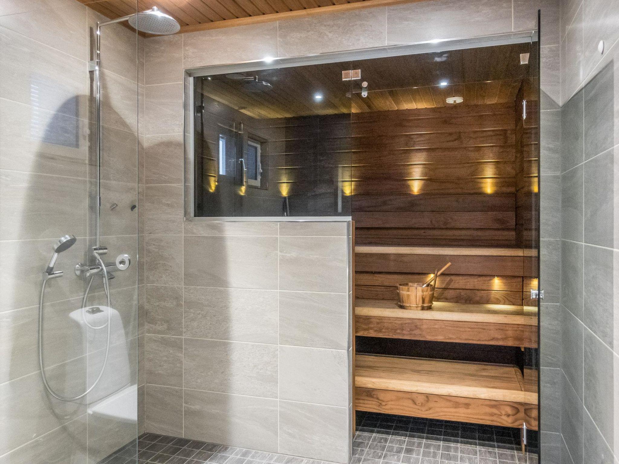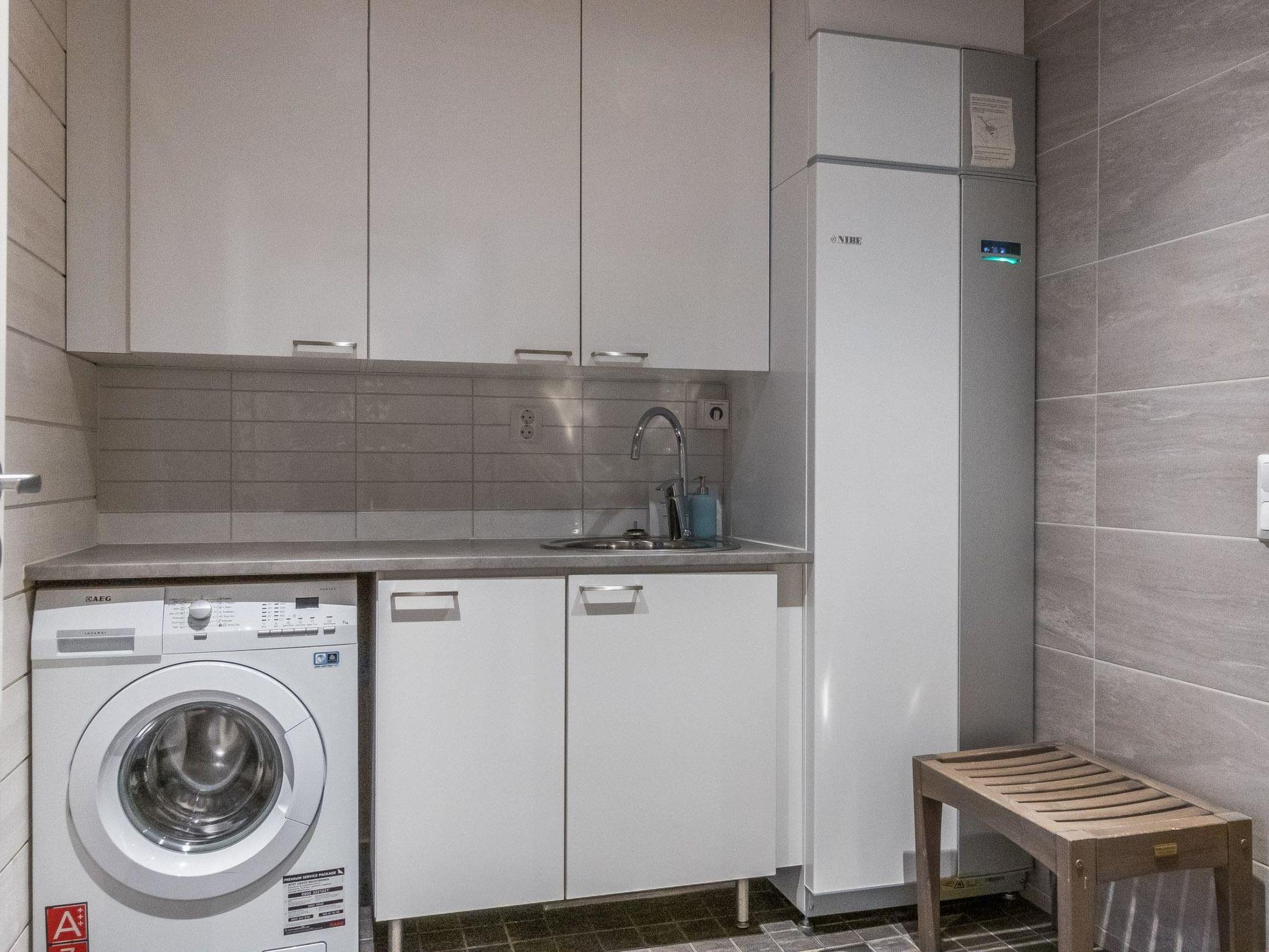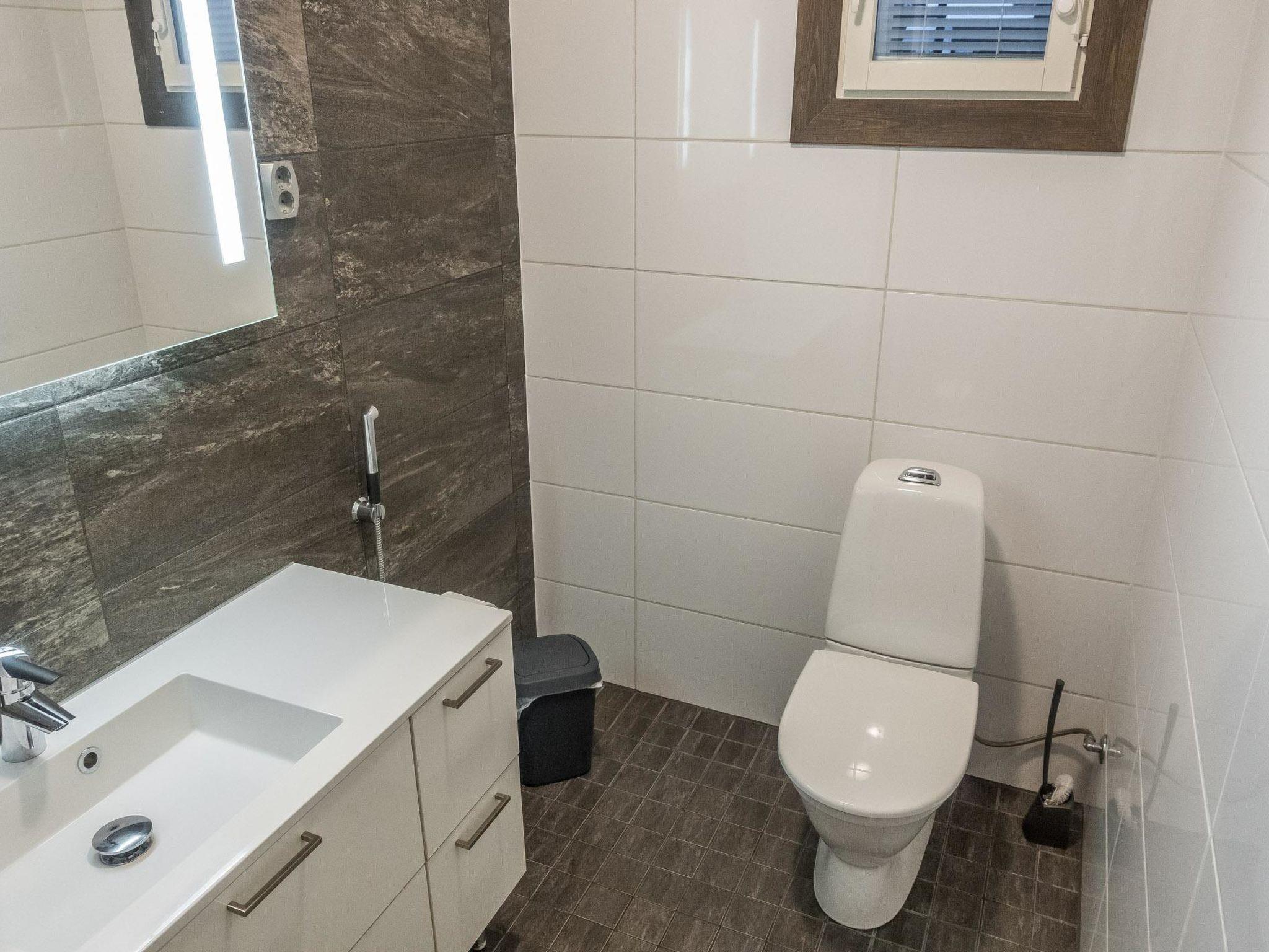 On the ground floor, guests can enjoy a spacious open kitchen and living area with large windows overlooking the lake scenery. Two bedrooms offer different accommodation options, one with a double bed and the other with two separate beds. In addition, the ground floor includes a sauna, a bathroom, a utility room, and a separate WC.