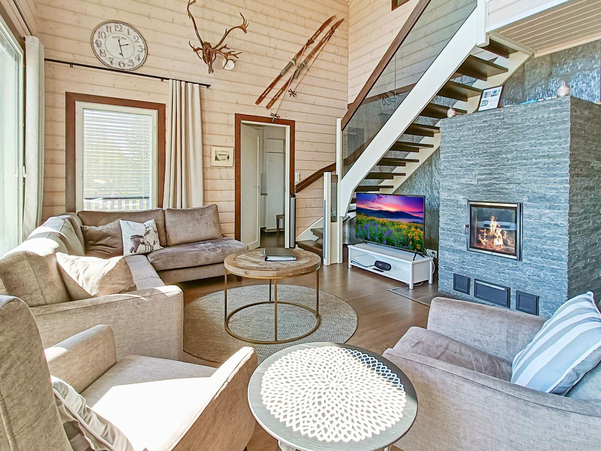 Rantatähti is a true gem by the shore, offering a perfect blend of comfort and a natural ambiance. This magnificent villa is situated by the water, providing beautiful views of the lake, while being only a short distance away from the diverse services of the Ski Resort Iso-Syöte.