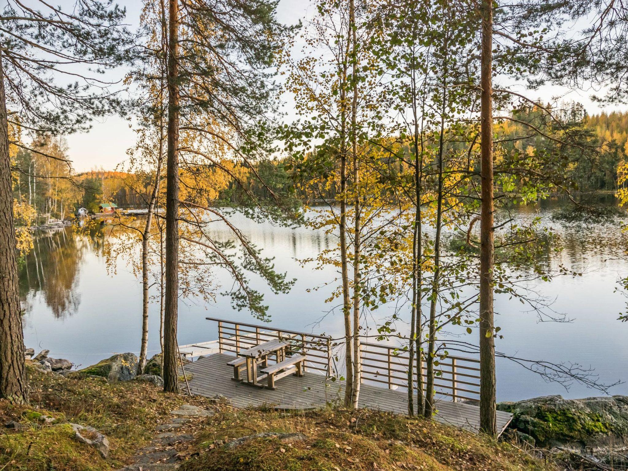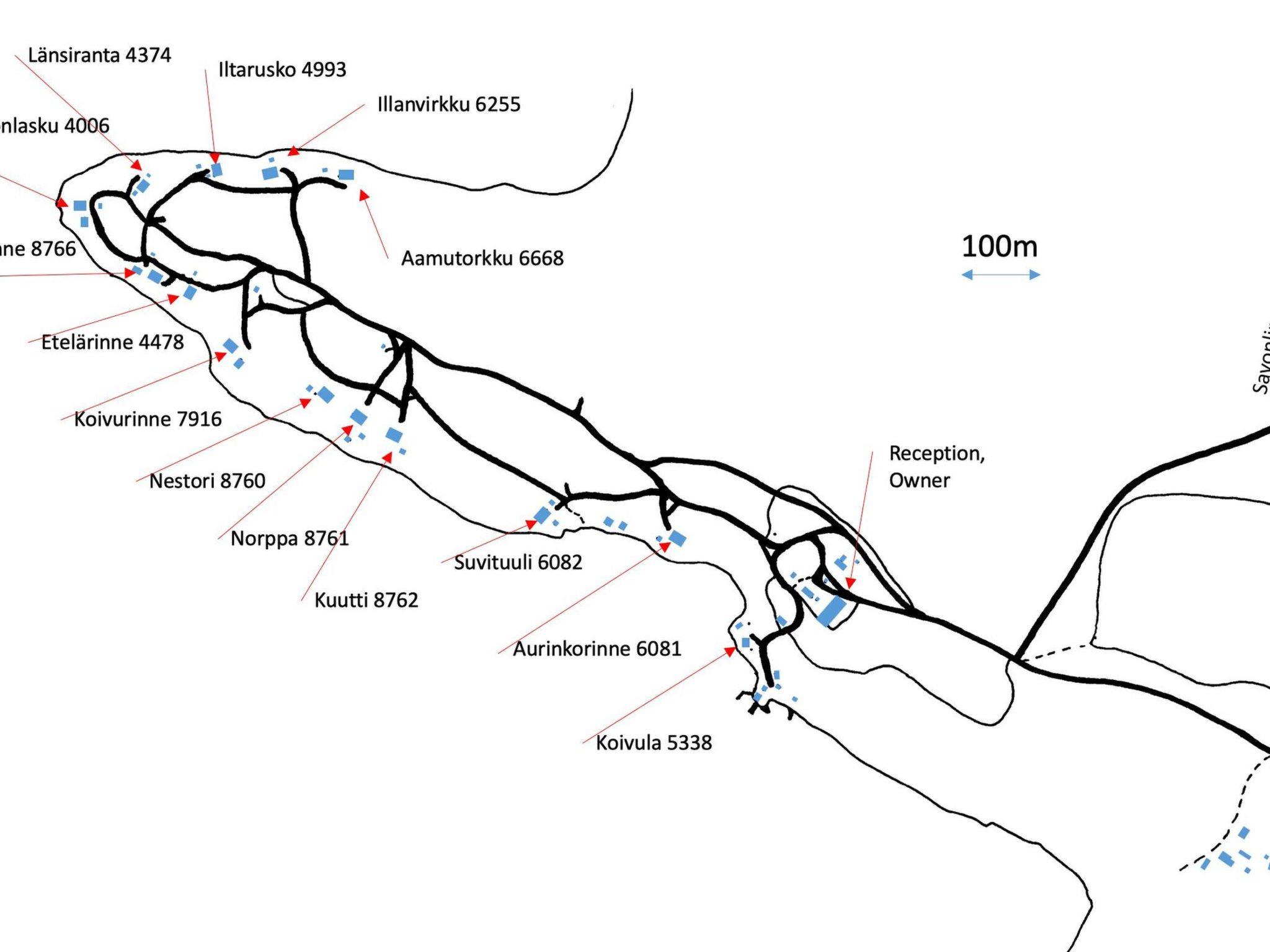56 km südlich von Savonlinna. See Saimaa/Pihlajavesi 25 m, ziemlich tiefes Wasser, fester Sandboden. Eigenes Boot. Blockhaus, Baujahr 1994, Wohnküche mit Schlafsofa, Schlafzimmer mit Doppelbett, Schlafzimmer mit 2 Betten, Waschraum, Ankleideraum, Sauna (elektr. Saunaofen), offene Veranda. Seesauna 10 m2 (mit Holz beheizt). Steiler Hang vom Ferienhaus zum Strand. Aussenbordmotor und Fahrräder zu mieten.
