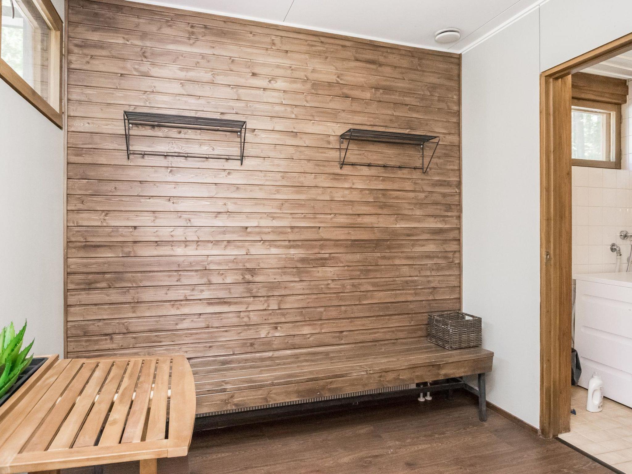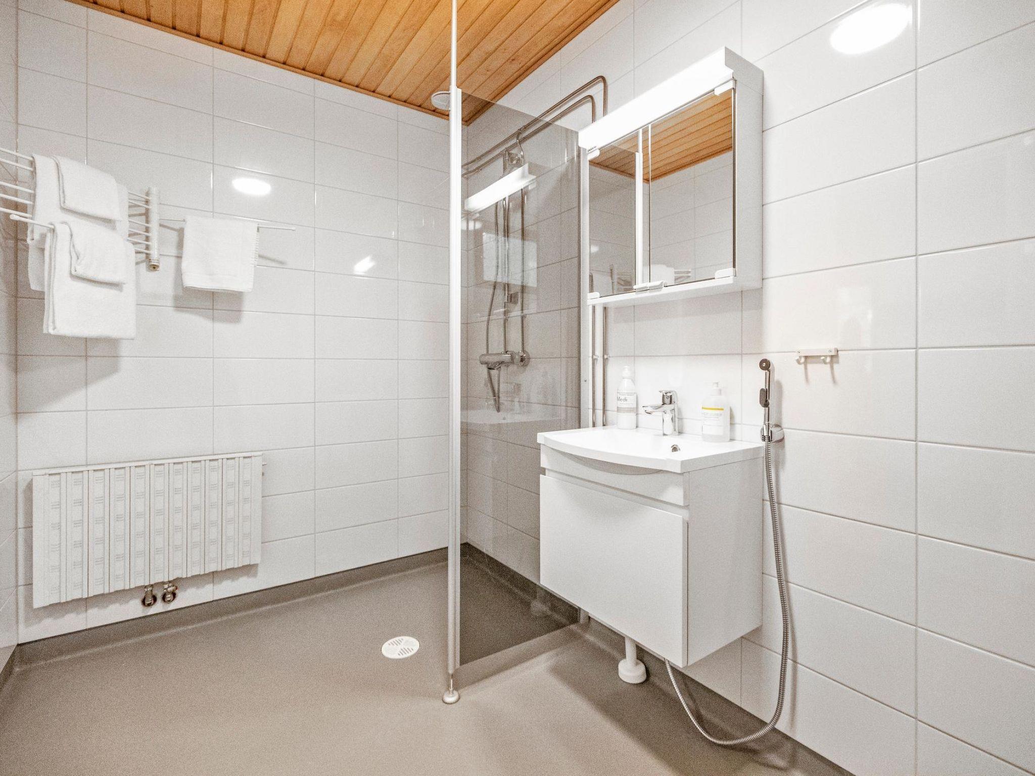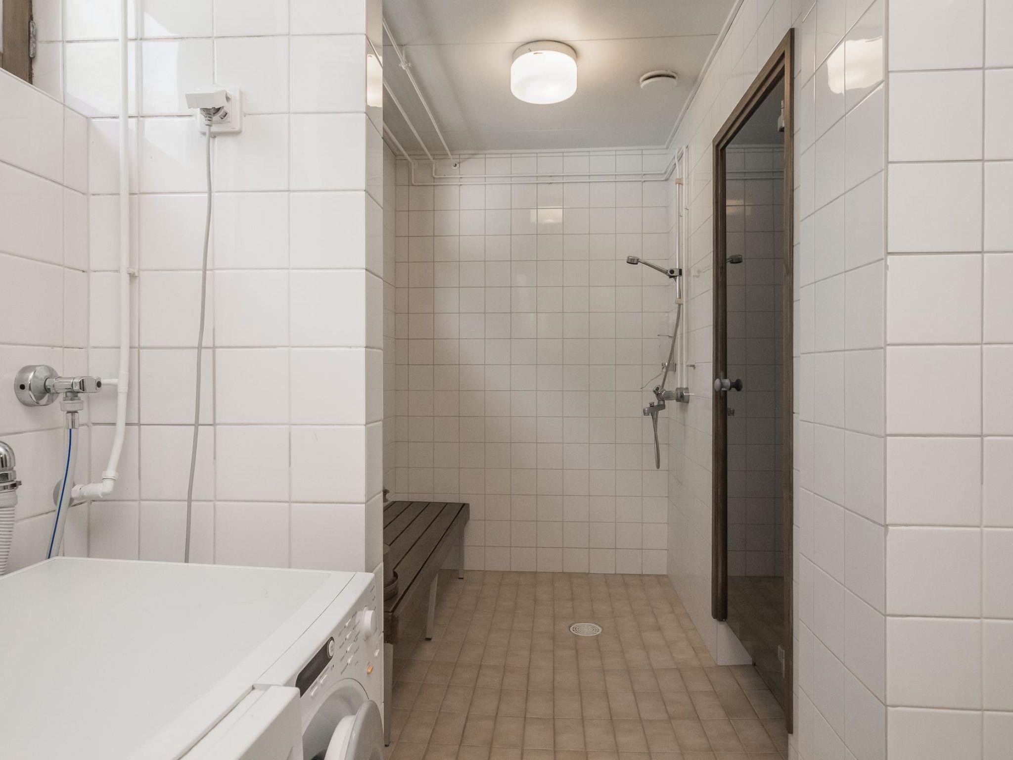 Sauna facilities shared by nine apartments. Sauna facilities includes dressing room, washroom, electric sauna stove, cooling terrace and washing machine. Sauna sessions (included in the price) can be booked at the reception.