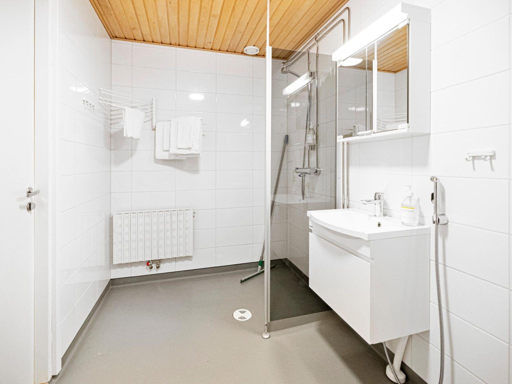 Sauna facilities shared by nine apartments. Sauna facilities includes dressing room, washroom, electric sauna stove, cooling terrace and washing machine. Sauna sessions (included in the price) can be booked at the reception.