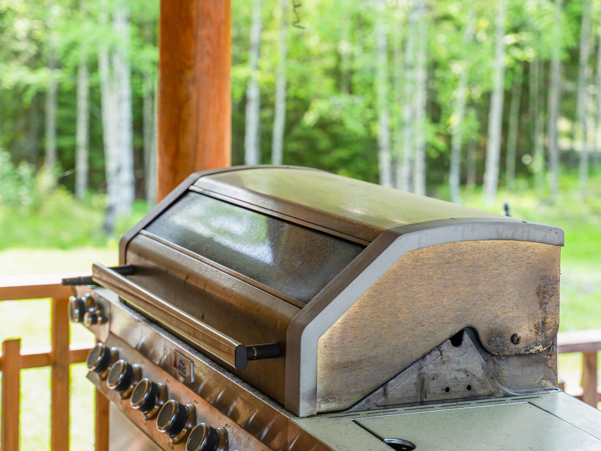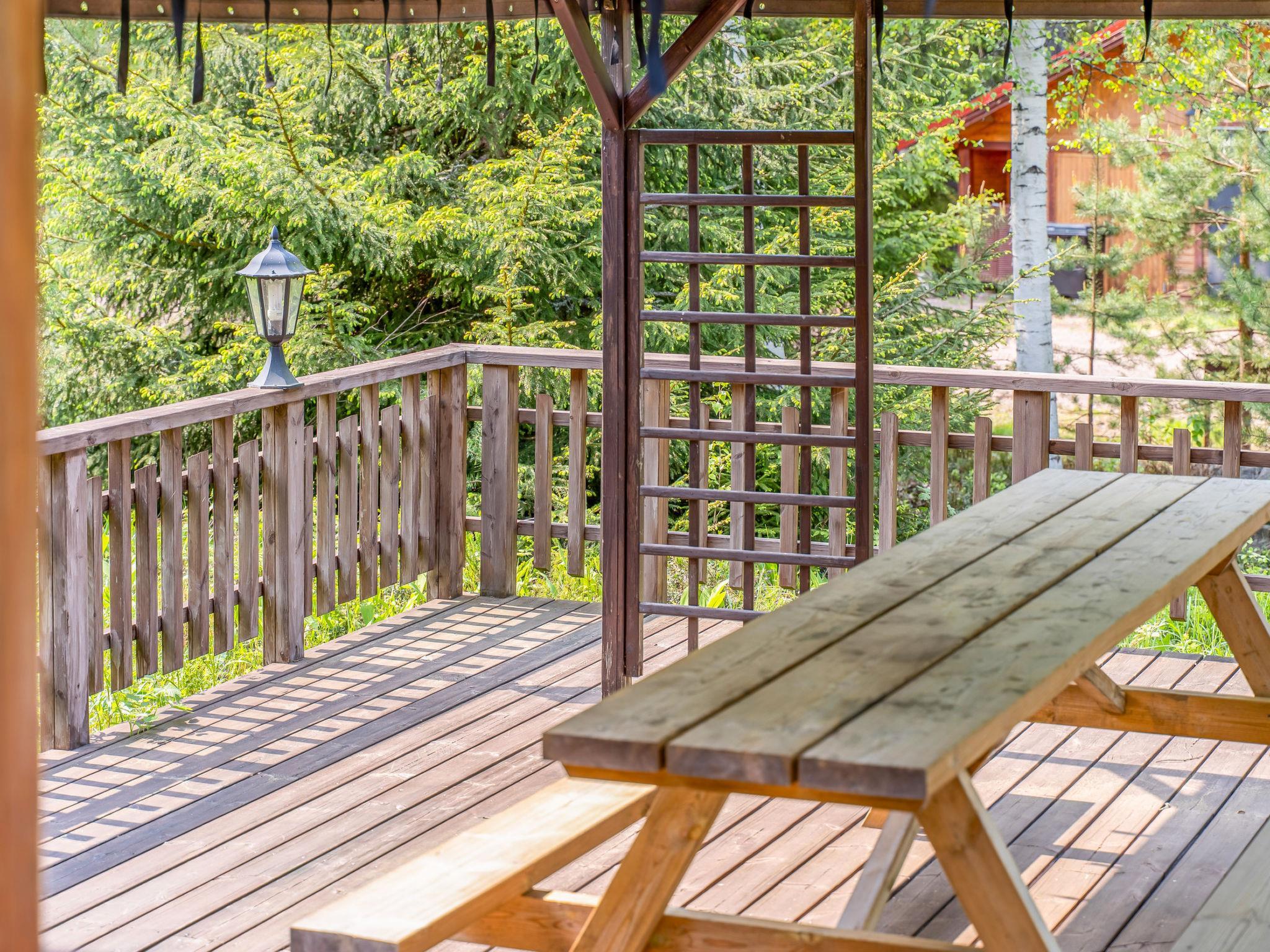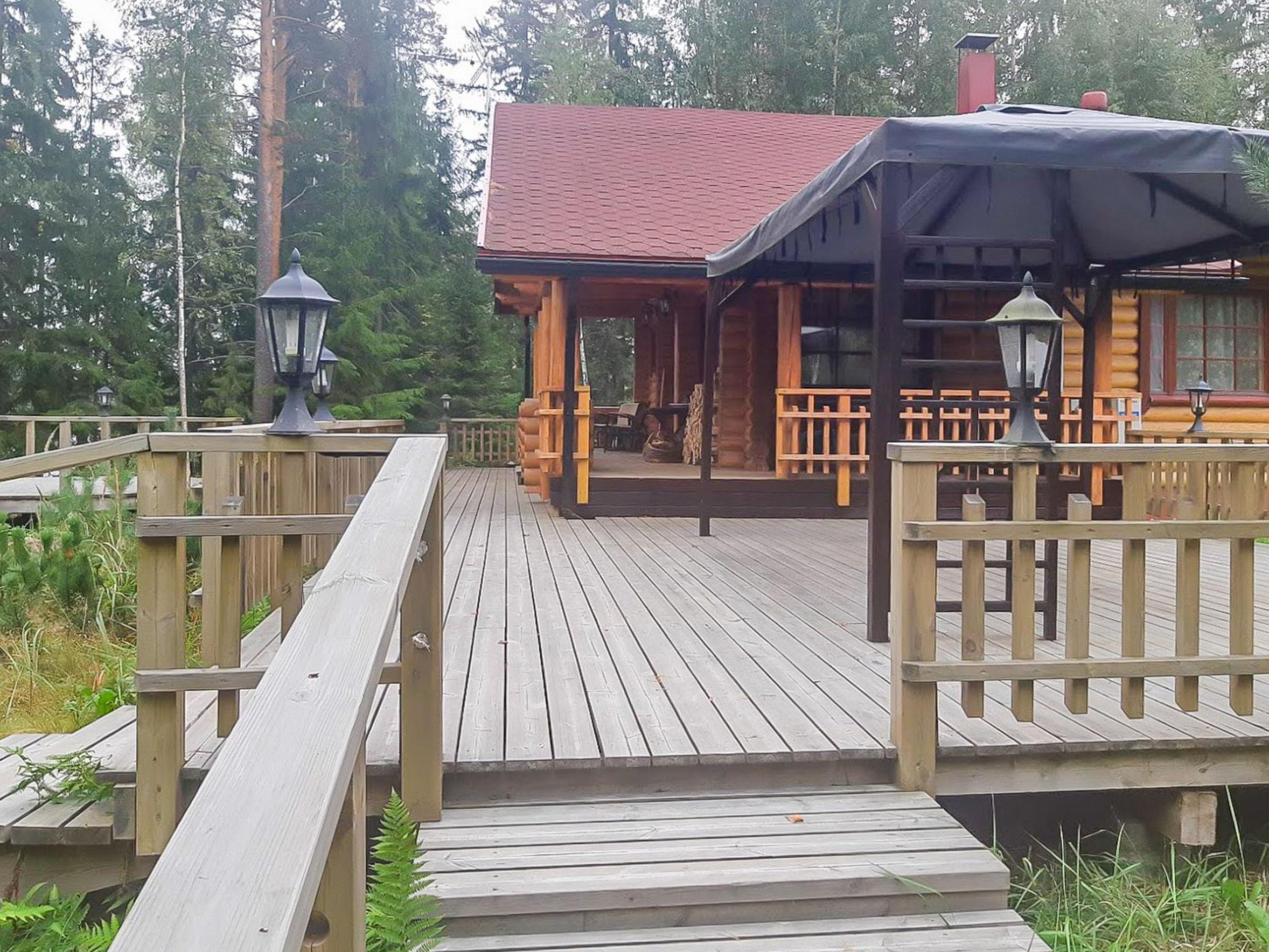 There is a gazebo on the shore and a year-round sleeping shed with a double bed for two. In front of the cottage there is a large terrace with a canopy and a gas grill, and a viewing platform towards the lake.