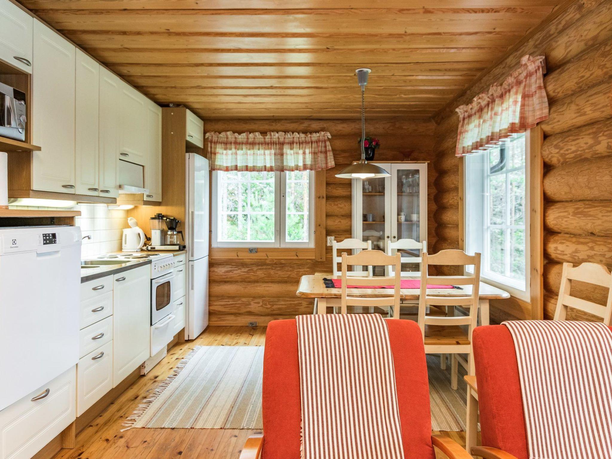 Maximal 1 Haustier/Hund erlaubt. Lahukka ist ein hochwertiges Miethaus, für einen komfortablen Urlaub. Das Zielobjekt ist gut für Familien mit Kindern oder Paare geeignet. 54 km südöstlich von Mikkeli, See Saimaa/Ruokovesi 20 m, harter und sanft vertiefender Sandboden, Pier und Ruderboot. Rundblockhaus, Baujahr 2003, Küche, Wohnzimmer, zwei Schlafzimmer mit je 2 Betten, Hauswirtschaftsraum, Waschraum, holzbeheizter Saunaofen in der Sauna, separates WC. Zwei Betten im Obergeschoss. Überdachte Terrasse 28 m². Die Gesamtfläche der Kabine beträgt 112 m², davon im Erdgeschoss 85 m² und im Obergeschoss 27 m². 4G Wi-Fi, Luftwärmepumpe. Im Hof gibt es Grillplatz und Kugelgrill. Lahukka ist ein ruhiges Miethaus, kein Sichtkontakt zum Nachbarn. Der Vermieter hat einen Außenbordmotor zu vermieten. Felsmalereien Astuvansalmi 18 km, Sommerrestaurant Kallioniemi 19 km, Strand Pistohiekka 27 km, Ristiina 35 km, Restaurant Sahanlahti 36 km, Puumala 44 km, Mikkeli 54 km, Imatra 111 km, Helsinki 260 km.