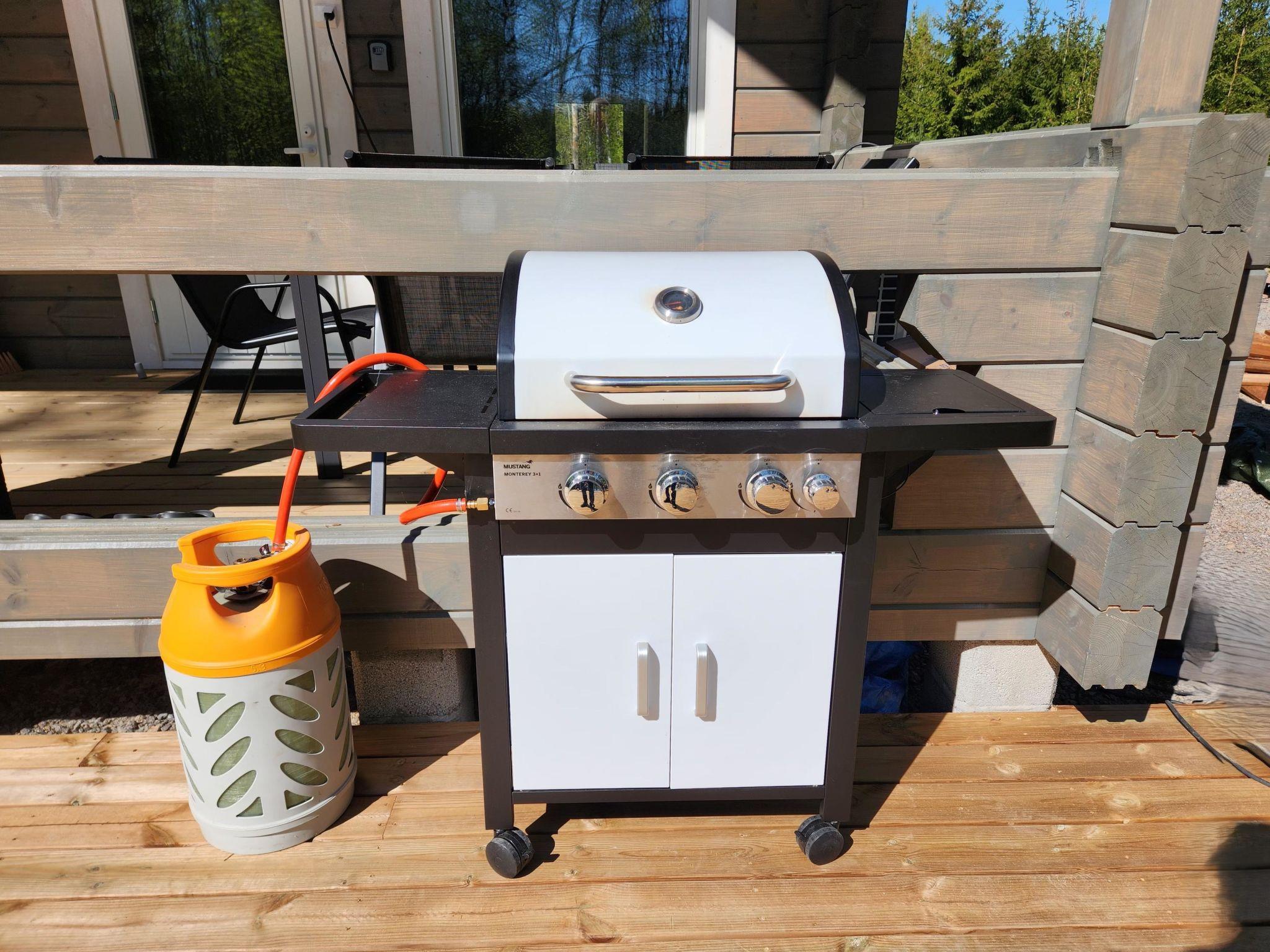 The terrace features a gas grill, perfect for preparing meals such as post-sauna snacks. You can also take a refreshing dip in the Kymi River. The swimming area has a soft, gently deepening bottom, and you can access the water from the dock. A public beach on the opposite side of the river is accessible by boat (approx. 600 m) or car (3–4 km).