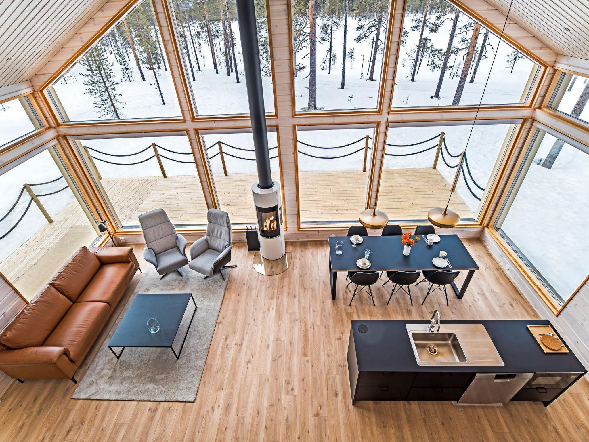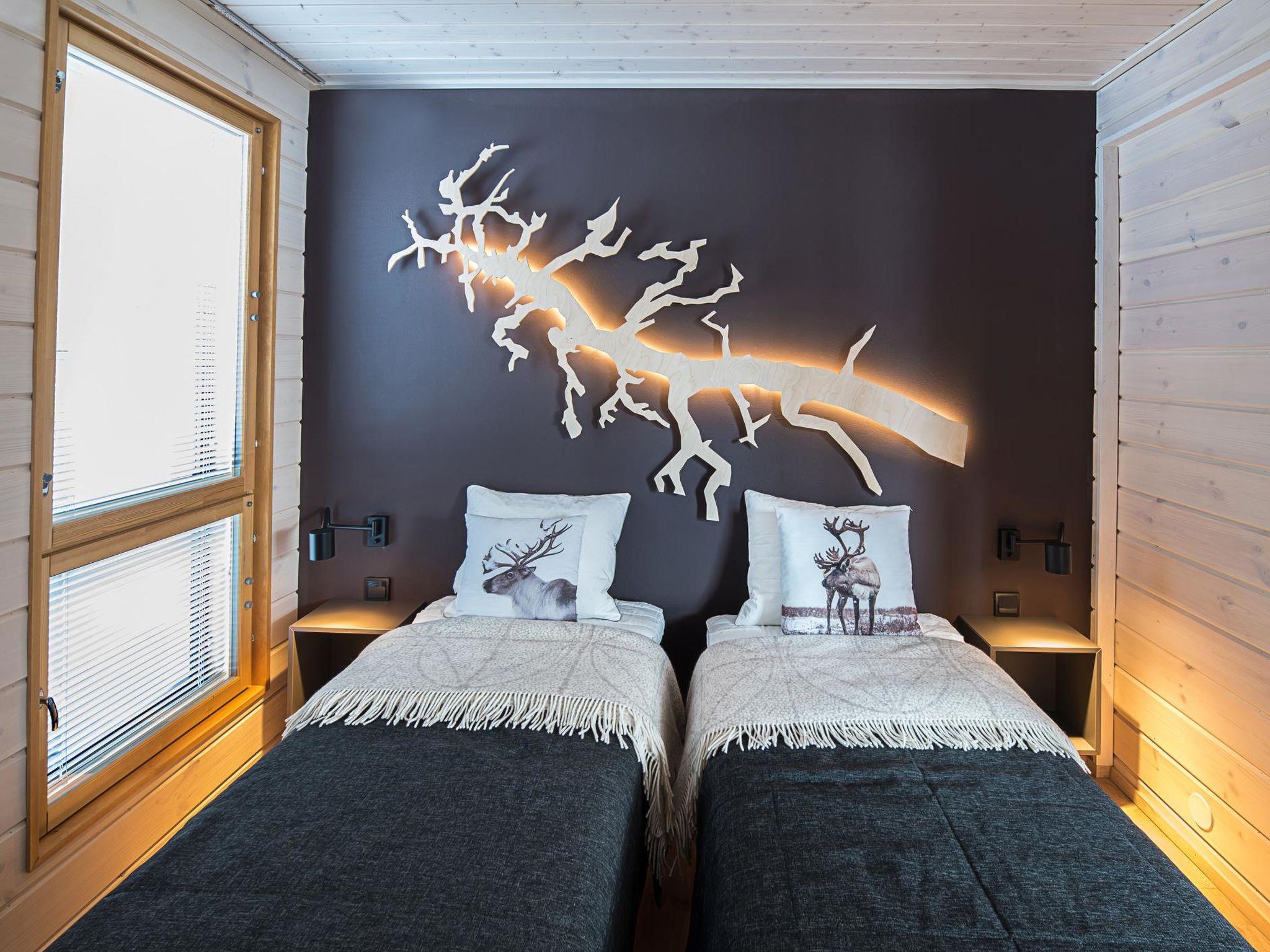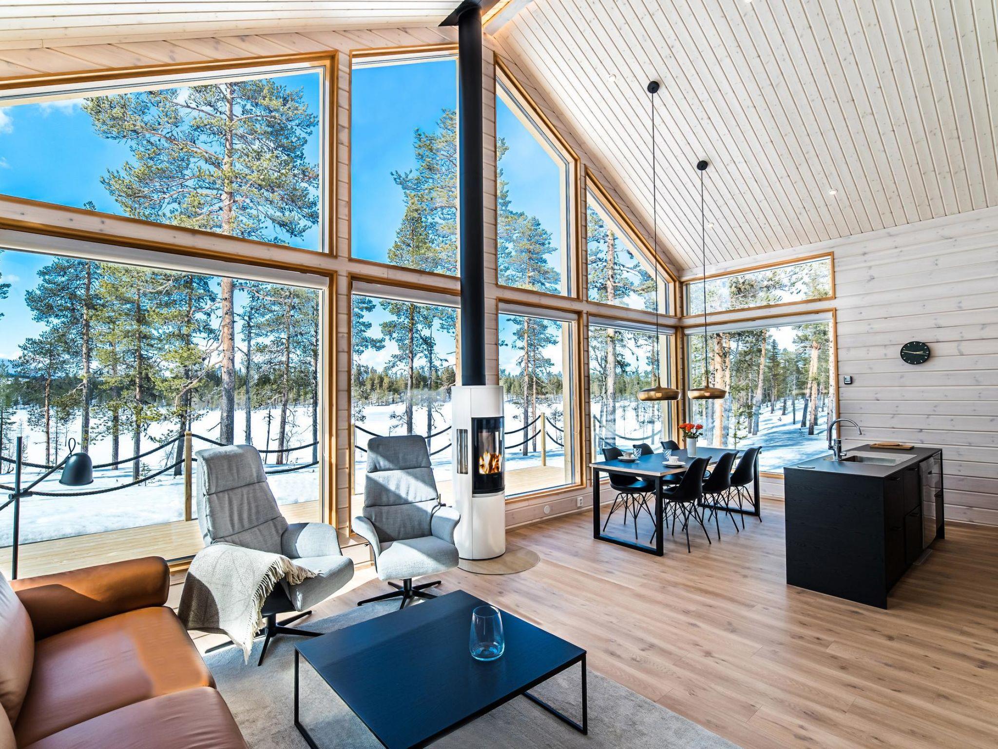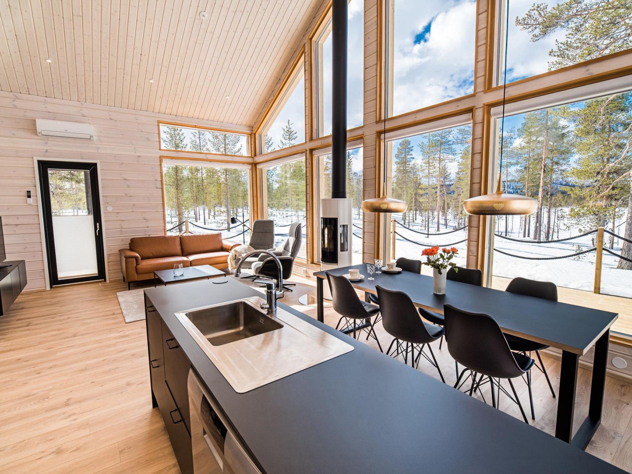 Die Villa Gaissa ist eine hochwertige Ferienvilla in Fjell Lappland, im Herzen des herrlichen Nationalparks Pallas-Yllästunturi, in Enontekiö. 250 km nordwestlich von Rovaniemi, in der Nähe von Raattama, in Yli-Kyrö. Neben der Villa befindet sich ein kleiner See (Hommajärvi, Länge 230 m, Breite 170 m) und etwas weiter ein grösserer, fischartiger See Vuontisjärvi. Entfernung zum See Hommajärvi ist 115 m and zum See Vuontisjärvi 400 m. Auf dem See Vuontisjärvi steht ein Boot zur Verfügung, zur Mitbenutzung. Das Boot wird mit einem anderen Ferienhaus (10009 Villa Biegga) geteilt, welches demselben Eigentümer gehört. Es gibt auch gemeinsame Anlegestelle und einen Unterstand am Hommajärvi-See. Wohnküche, vier Schlafzimmer mit je zwei Personen. Zwei Schlafzimmer davon befinden sich im Obergeschoss. Zwei Zustellbetten auf dem Dachboden und im Schlafzimmer im Obergeschoss. Klappbares Reisebett für Kinder. Ein WC im Obergeschoss und zwei WCs im Erdgeschoss, eines im Waschraum. Den Gästen stehen zwei Saunen zur Verfügung. Neben der elektrischen Sauna befindet sich im Hof eine stimmungsvolle Holzsauna. Der Zugang zur Holzsauna erfolgt über eine verglaste Terrasse. Hauswirtschaftsraum für die Wäsche. Von der grossen offenen Terrasse aus können Sie die herrliche Fjell-Landschaft bewundern. Unterstand für Auto und Lagerung für Sportgeräte verfügbar. Grosse Fenster bieten einen herrlichen Blick auf die Natur Lapplands. Wenn Sie im Wohnzimmer sitzen, können Sie sich als Bestandteil der schönen Aussicht fühlen. Die Sterne und Nordlichter können bequem von der Villa aus, von der verglasten oder offenen Terrasse aus, beobachtet werden. Die Beleuchtung in der Villa Gaissa wurde sehr stimmungsvoll entworfen. In der Villa Gaissa gibt es kostenlose WLAN-Verbindung und Smart-TV. Es gibt auch Luftwärmepumpe in der Villa. Es kann im Sommer zum Kühlen verwendet werden. Verschiedene Geräte für die Outdoor-Aktivitäten finden Sie im Lager. Die, von der Gemeinde Raattaman Reitit, unterhaltene Ski-Loipe verläuft vor der Terrasse. Die Entfernung zu den Fjells im Nationalpark beträgt einige Kilometer. Diese sind zu Fuss oder mit dem Fahrrad, über gut ausgebaute Wanderwege, einfach erreichbar. Weitere Dienstleistungen in der Nähe: Hotel Vuontispirtti 1 km (geöffnet in der Touristensaison), Rentierfarm mit Restaurants 5.5 km. Auf der Rentierfarm können Sie Kanus mieten. Raattama Dorf 6 km, wo sich zum Beispiel Lebensmittelgeschäft, Restaurant mit Alkohol-Servierrechten und Reitställe befinden. Skipisten von Pallastunturi 33 km, Besucherzentrum 33 km.