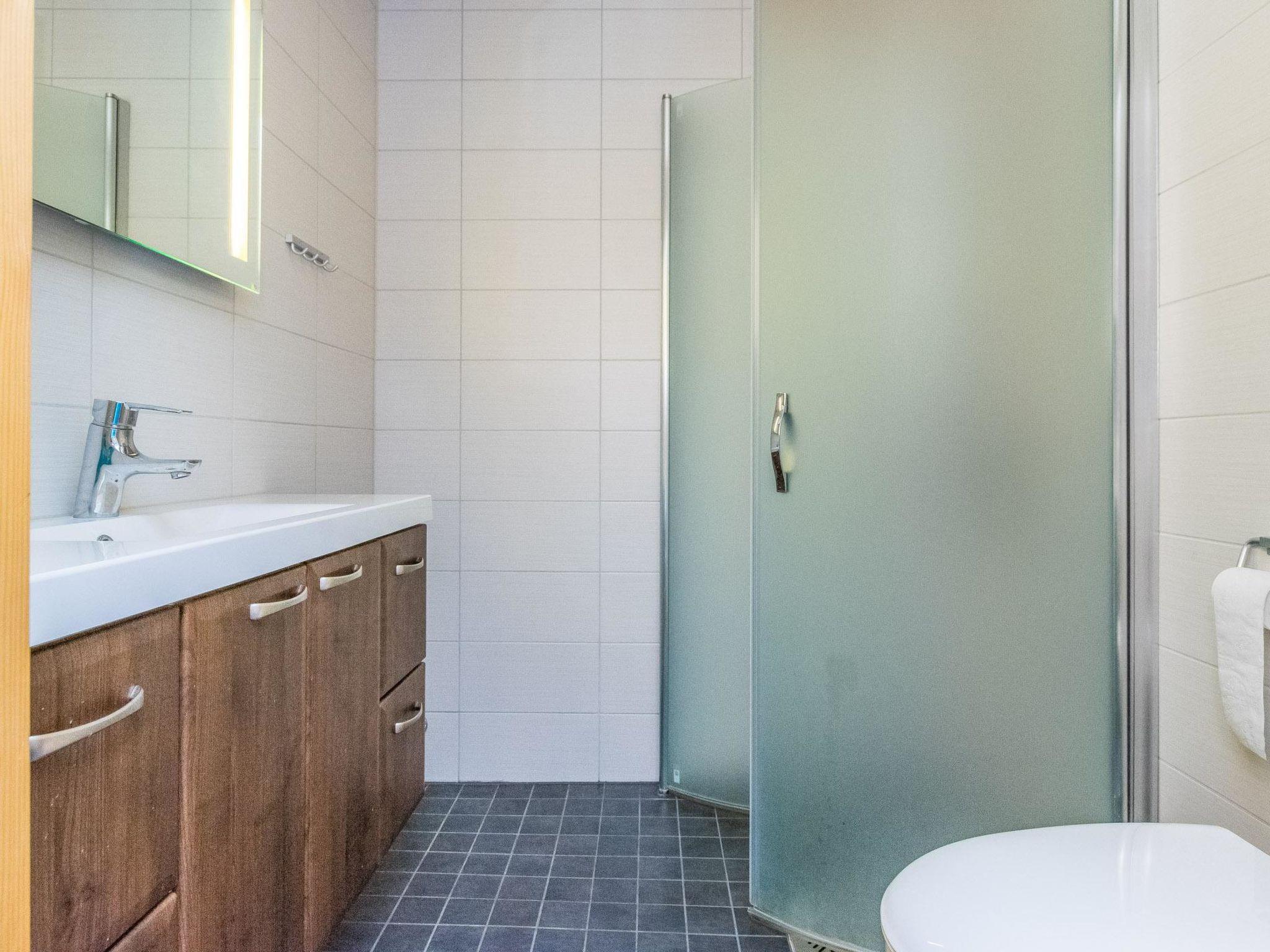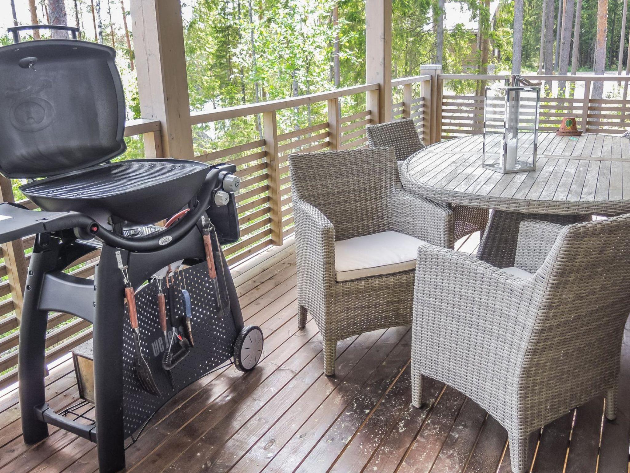 The rental villa Hapero is located on a wonderful hillside plot on the shore of the lake Kaitajärvi. On the sturdy pier, you can relax and enjoy the beautiful landscape while sitting on a bench. Inside the villa, a modern living room/kitchen awaits you, which is equipped with all the necessary equipment. The kitchen also has a wine cabinet where you can keep your drinks cool. The living room has a comfortable sofa and an entertainment system that includes a smart TV and home theater, so you can relax and watch movies with friends or family, there's enough work even for rainy days.