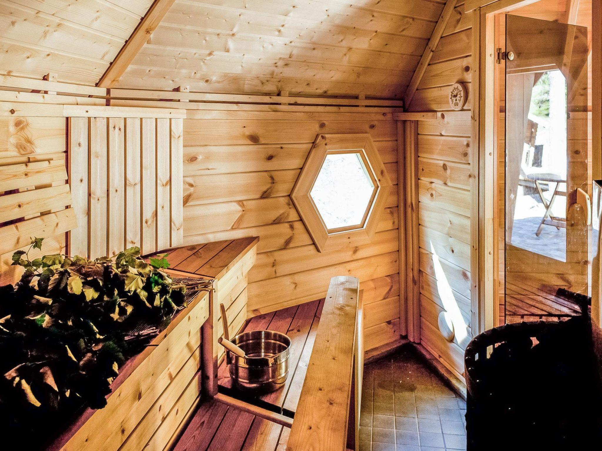 On the upper floor, there are two bedrooms, both of which have their own bathroom with WC and shower, plus a TV and DVD player. On the ground floor, there is one bedroom with a private bathroom with WC and shower, TV and DVD player. In the sauna section, you can relax in an infrared sauna, an electric sauna or a fireplace room.