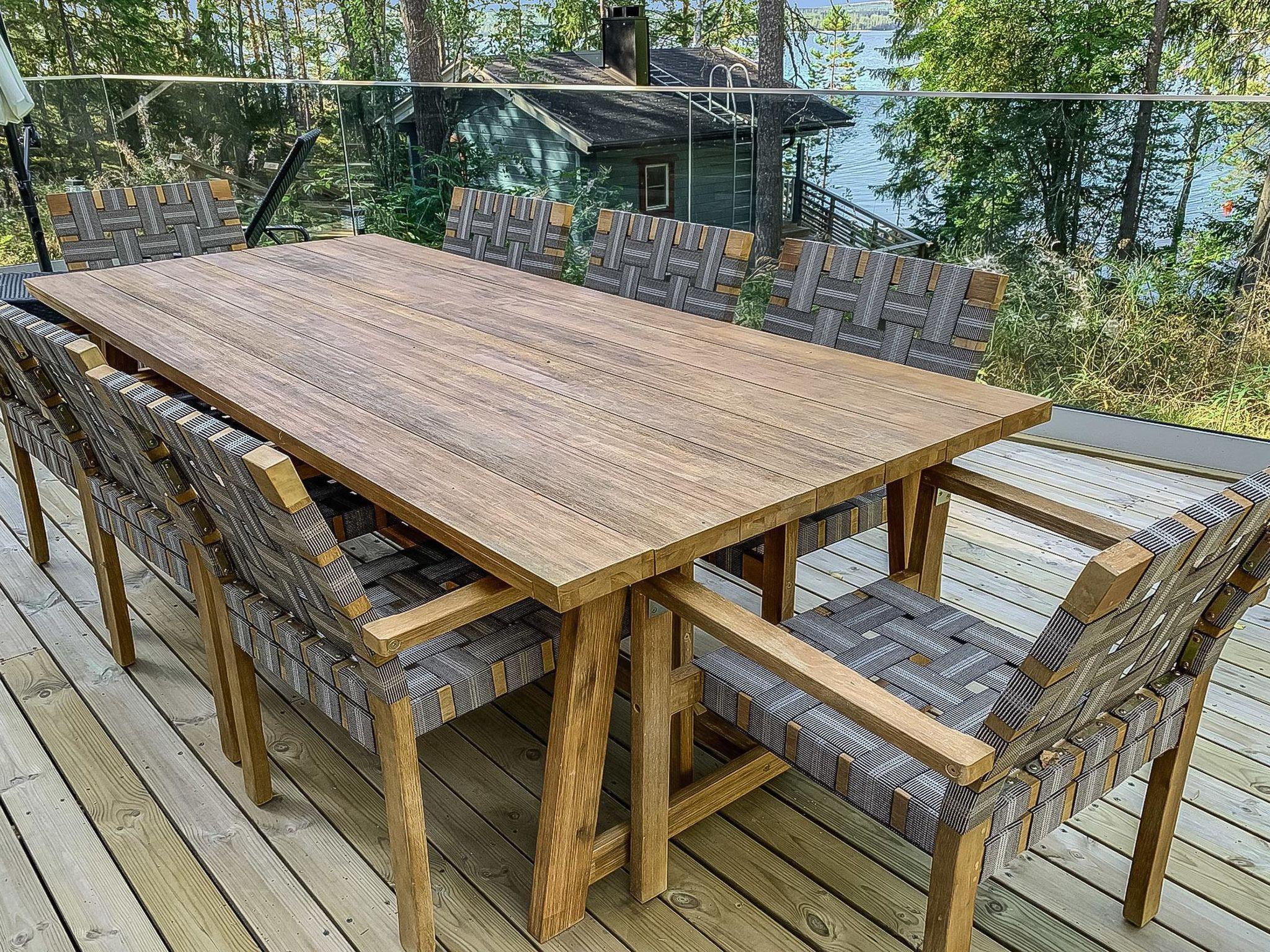 95 km nordöstlich von Tampere, See Näsijärvi 20 m, sich schnell vertiefender Felsstrand, Anlegestelle, Ruderboot. Laminiertes Blockhaus, Baujahr 2019, Wohnzimmer, Wohnküche, Schlafzimmer 1: Doppelbett, Schlafzimmer 2: zwei Betten, WC, Sauna, Waschraum (elektrischer Saunaofen), zwei Betten auf dem Dachboden, Kindersicherungstor oben auf der Treppe. Grosse 50 Quadratmeter grosse Terrasse mit elektrisch beheiztem Whirlpool. Separate Seesauna mit elektrischem Licht, Dampfbad (holzbeheizter Saunaofen), Waschraum (im Sommer kaltes Wasser mit Pumpen aus dem See, zusätzlich zum holzbeheizten Wassertopf), Ankleidezimmer mit Sitzgelegenheiten für vier Personen und Holzofen. Bewaldetes Hanggrundstück mit felsigem Strand. Auf dem grossen Grundstück befindet sich felsige Halbinsel mit herrlichem Blick auf den See Näsijärvi. Die Kabinenterrasse verfügt über elektrisch beheizten Whirlpool (die Nutzung ist im Mietpreis enthalten). Gasgrill und Terrassenmöbel für sechs Personen auf der Terrasse. Stilvolle Glasgeländer auf der Terrasse. Schwimmwesten erhältlich. Sie können beim Eigentümer ein Motorboot mieten (Aluminiumboot mit Lenkkonsole, 20 PS Aussenborder).