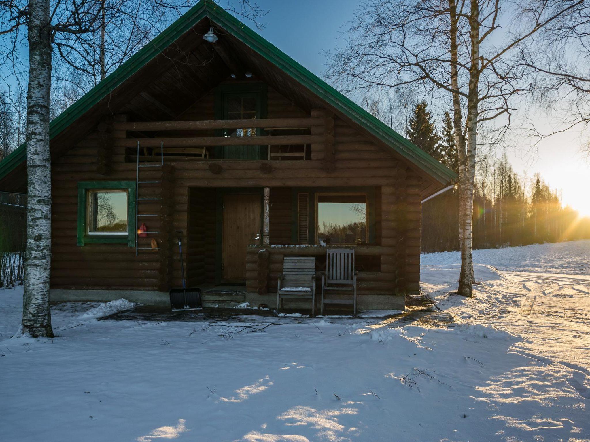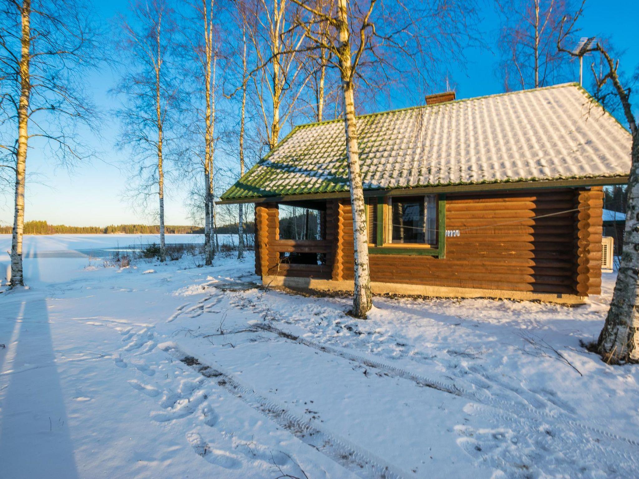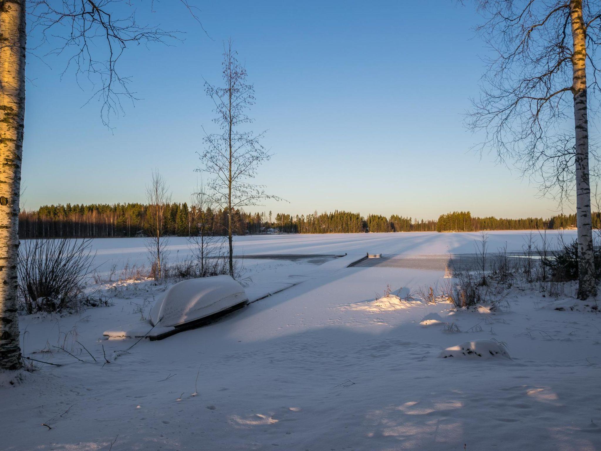 A log cabin in Ruovesi right by Lake Mäkelänjärvi. The yard features a glazed cooking hut, providing a cozy spot to relax while enjoying the glow of the fire. The cabin is situated in a peaceful setting with a beautiful view of the lake opening up from the yard.