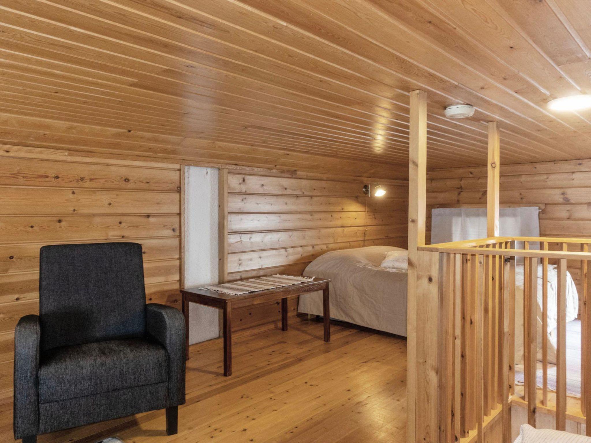 The apartment has comfortable living room/kitchen and bedroom with double bed. The living room/kitchen has a sofa bed. On the upper floor, there are two spreadable sofas, one of the sofas is already opened. The area of the upper floor is about 25 square meters and the room height is about 1.5 meters. The stairs leading to the upper floor are steep.