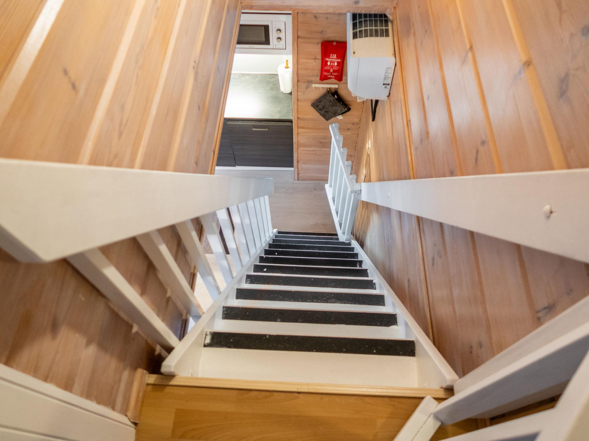 Upstairs, a bedroom with separate beds for two, a sheltered sleeping loft with separate beds for two and a toilet.
