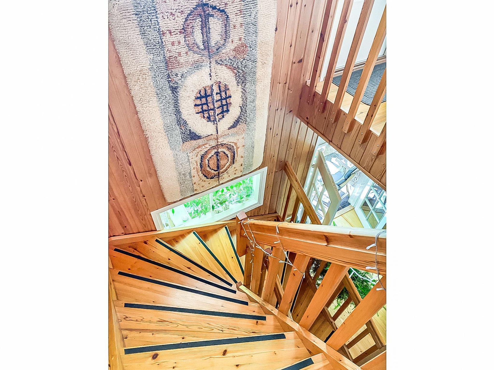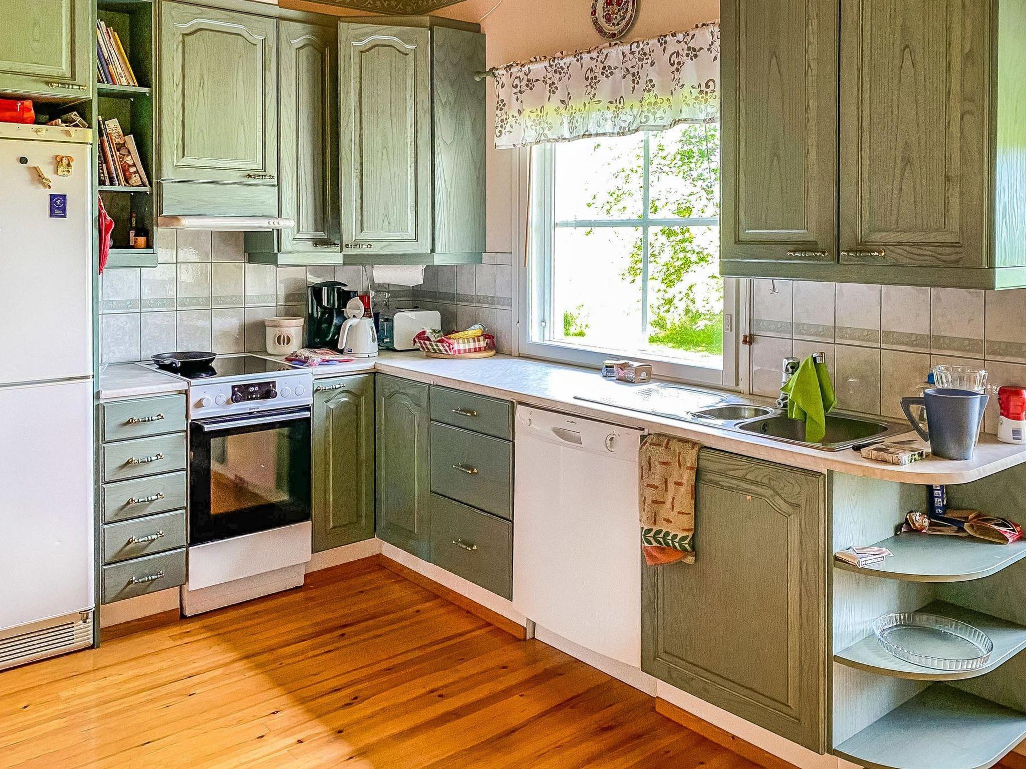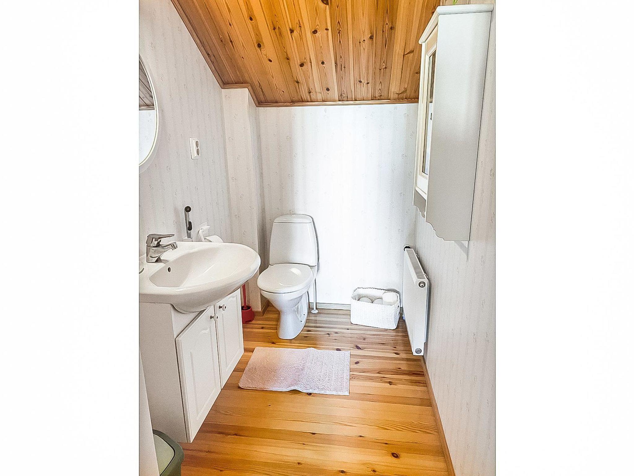 On the ground floor, living room/kitchen, bedroom with 2 beds, conservatory, sauna, wood-burning sauna stove in the sauna, washroom, utility room, large entrance hall and covered terrace.