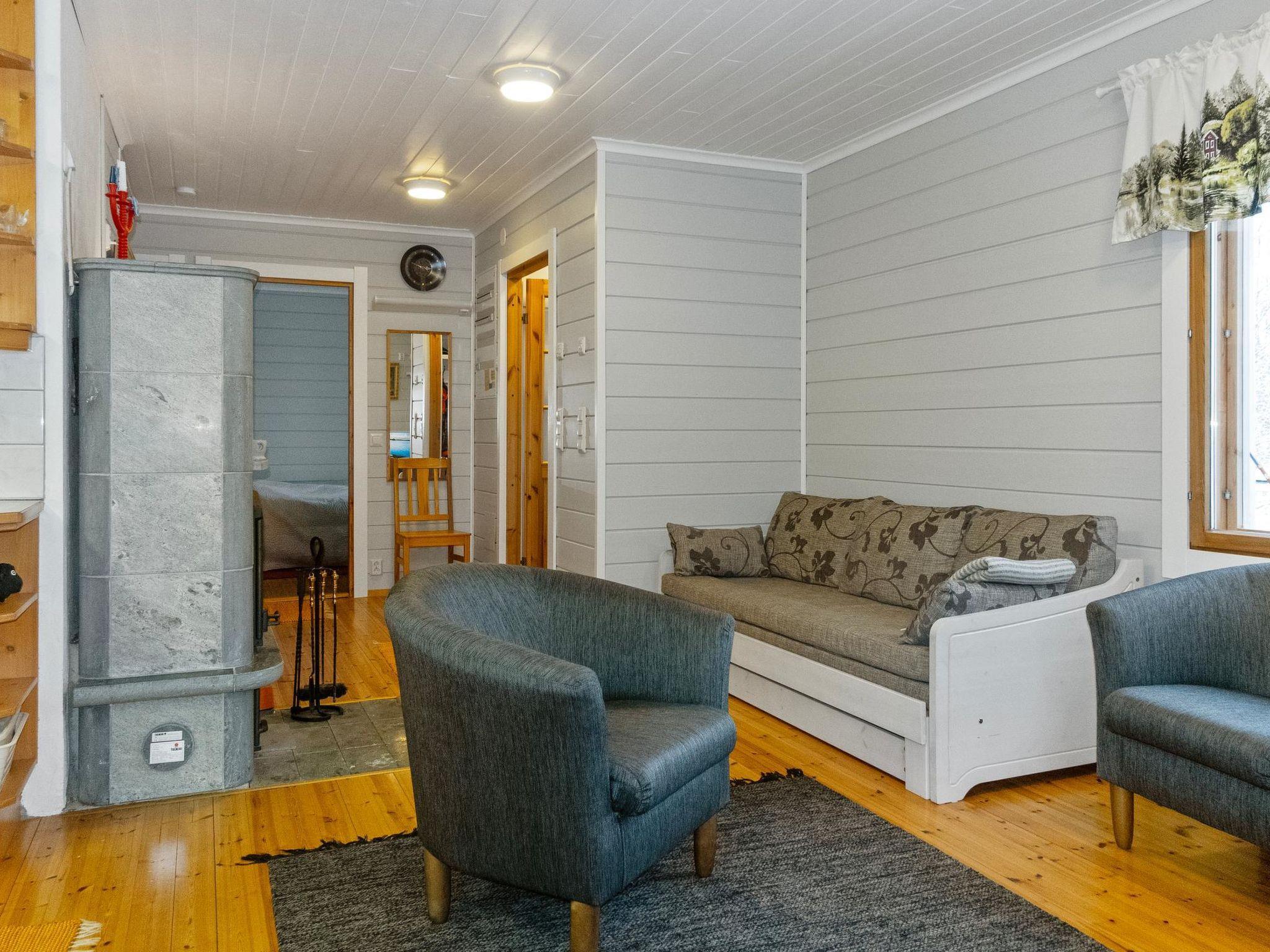 The main building doesn't include a sauna, but there's a traditional Finnish sauna by the lake with a steam room and living area. The sauna has a wood-burning sauna stove and a cauldron heated by wood. Water for the sauna is fetched from the lake (or the main cabin). In addition, there's a cooking hut by the shore to prepare delicious meals.