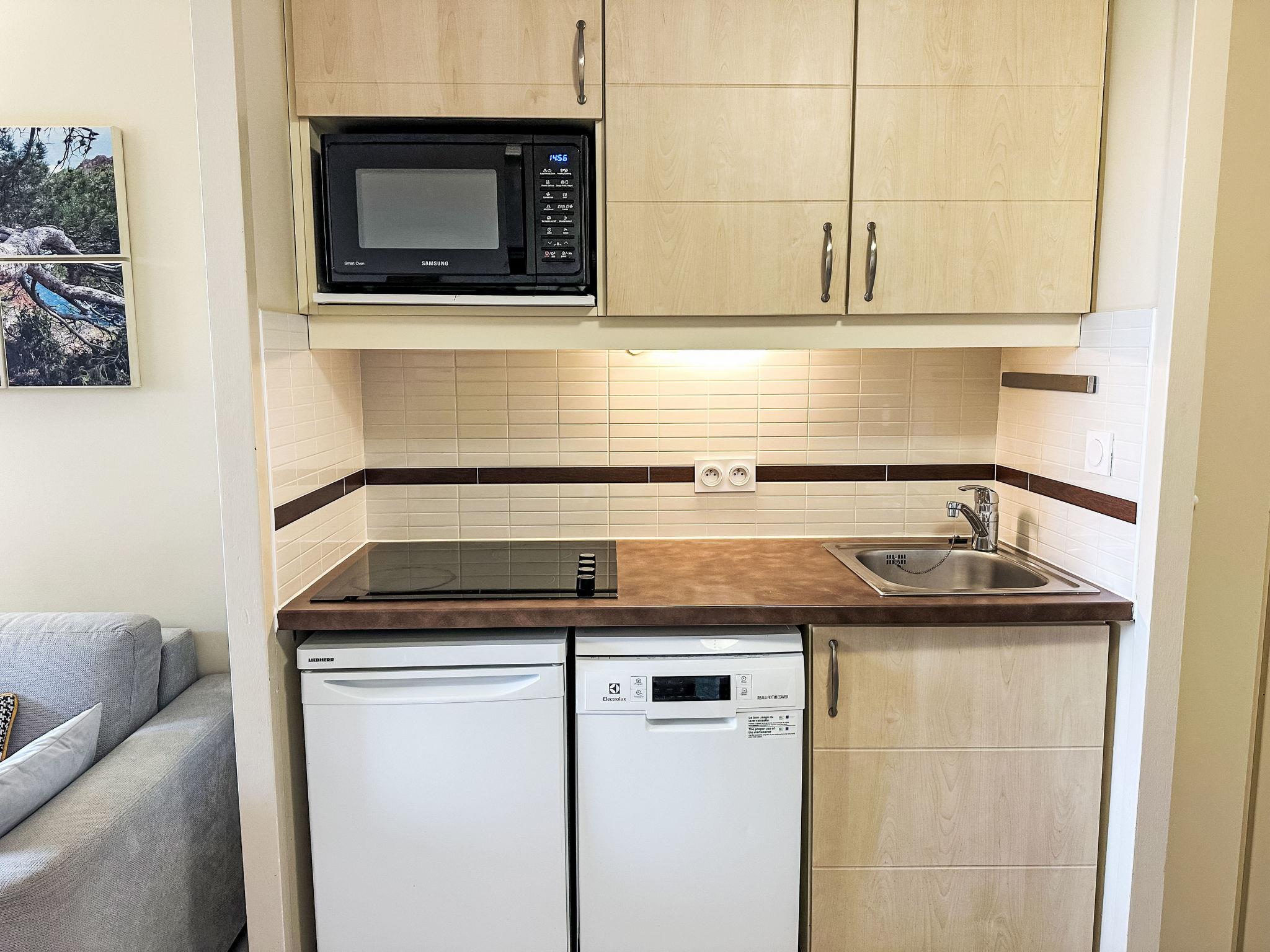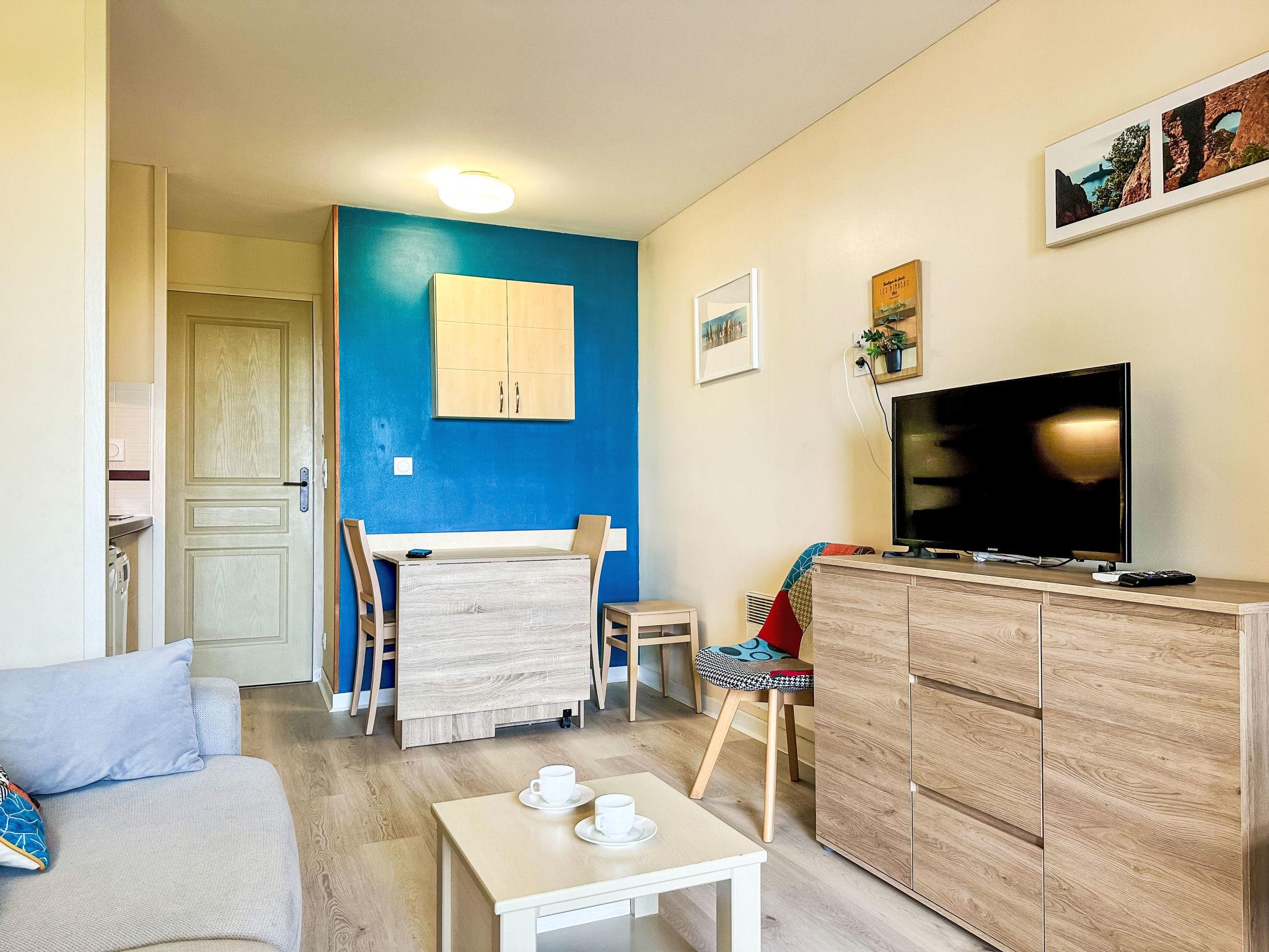 Grosse Ferienanlage "Village Cap Estérel - L'Esquinade", Baujahr 1990. Am Ortsrand, 2 km vom Zentrum von Agay, am Hang, in einem Wohnquartier, 900 m vom Meer, 900 m vom Strand, Strasse zu überqueren, am Golfplatz, in einer Fussgängerzone. Zur Mitbenutzung: Park 210 ha, 5 Schwimmbäder (saisonale Verfügbarkeit: 06.Apr. - 03.Nov.). Kinderbecken, Boccia, Kinderspielplatz (Rutschbahn, Schaukel). In der Anlage: Wellnessbereich (extra), Einkaufsmöglichkeit, Wäscherei (extra). Einkaufsgeschäft, Lebensmittelgeschäft 500 m, Supermarkt 6 km, Restaurant, Bäckerei, Café, Fahrradverleih 500 m, Bushaltestelle "Ligne 21" 300 m, Bahnstation "Saint-Raphaël-Valescure - Agay" 9 km, Sandstrand "Le Pourrousset" 800 m. Jacht-Hafen 1 km, Golfplatz (9 Loch) 300 m, Tennis 500 m. Nahe gelegene Sehenswürdigkeiten: Anthéor 8 km, Saint-Raphaël 9 km, Fréjus 13 km, Cannes 33 km, Saint-Tropez 50 km, Nice 76 km. Bekannte Seen in der Umgebung sind gut erreichbar: Lac Saint-Cassien. Wandergebiete: Massif de l'Estérel. Bitte beachten: autofreie Ferienanlage, kein Fahrstuhl vorhanden. Animation in der Saison. Geeignet für Familien, Kinderbetreuung in der Saison (extra). Bewachte Residenz. Die Schlüsselübergabe findet bei der Agentur -------- in Cap Estérel statt. Die Wohnung befindet sich in einer für den Verkehr begrenzt zugänglichen Zone (ZTL). Weitere Unterkünfte sind buchbar.