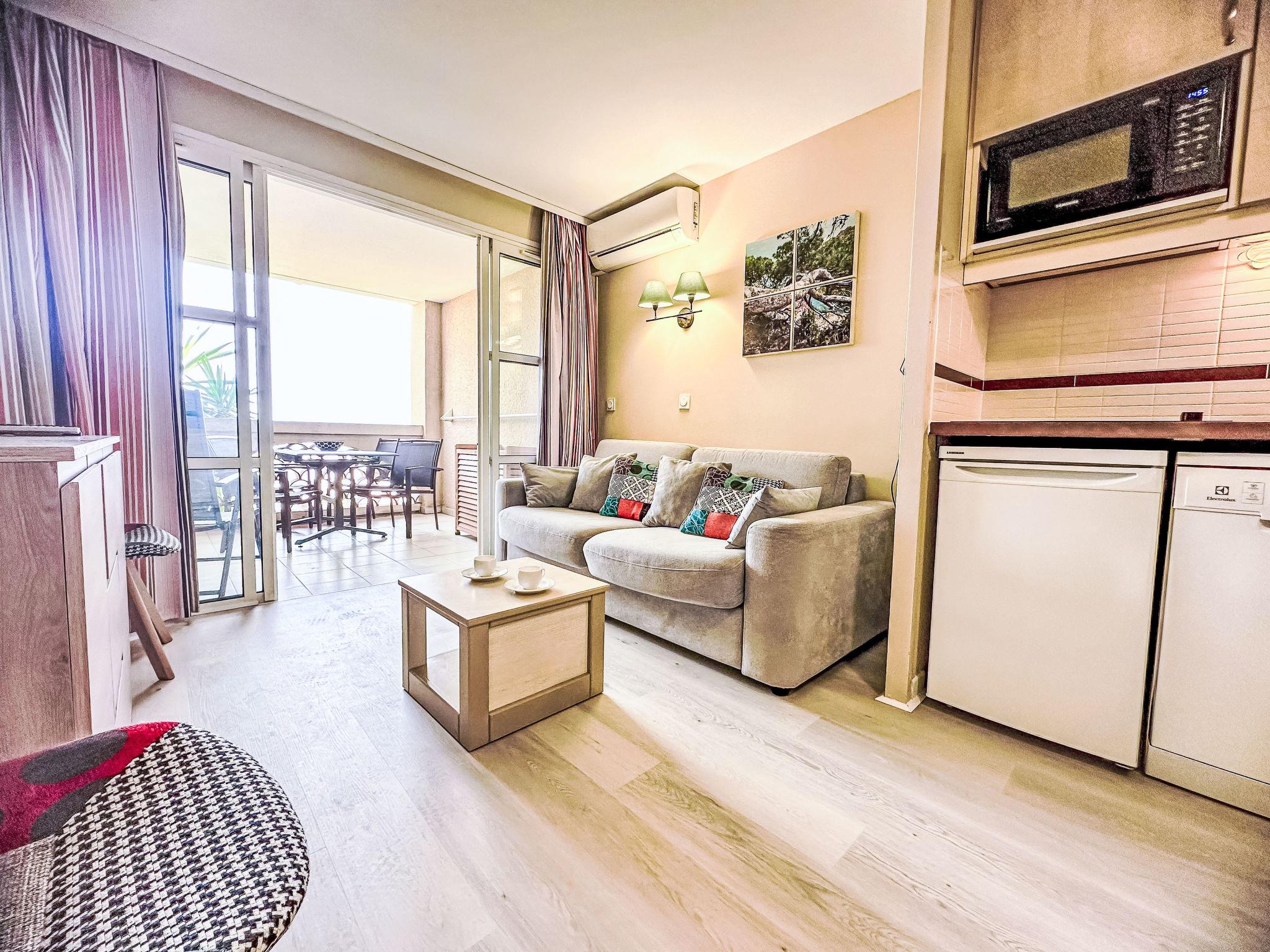 "L'Esquinade (J5 113)", 2-Zimmer-Wohnung 28 m2 im 1. Stock, Südostlage. Objekt geeignet für 4 Erwachsene. Hell, teilweise renoviert im Jahre 2023, komfortabel und schön eingerichtet: Wohnzimmer mit 1 Diwanbett (140 cm, Länge 190 cm), TV (Flachbildschirm). Ausgang zur Terrasse, Richtung Süden und Richtung Osten. 1 Zimmer mit 1 franz. Bett (1 x 140 cm, Länge 190 cm). Kochnische (4 Kochplatten, Geschirrspüler, 4 Glaskeramikplatten, Toaster, Wasserkocher, Mikrowelle, elektrische Kaffeemaschine, Kapseln für die Kaffeemaschine (NESPRESSO) extra). Bad, sep. WC. E-Heizung, Klimaanlage. Terrasse 10 m2, Südlage und Ostlage. Terrassenmöbel. Sehr schöne Sicht auf das Meer. Zur Verfügung: Internet (WLAN, extra). Parkplatz Nr. 2232 (überdacht, 1 Auto), Höhe 180 cm. Bitte beachten: Nichtraucher-Unterkunft. Maximal 1 Haustier/Hund erlaubt. Rauchmelder. Inserat einer Privatperson nach Artikel 155, IV, CGI.