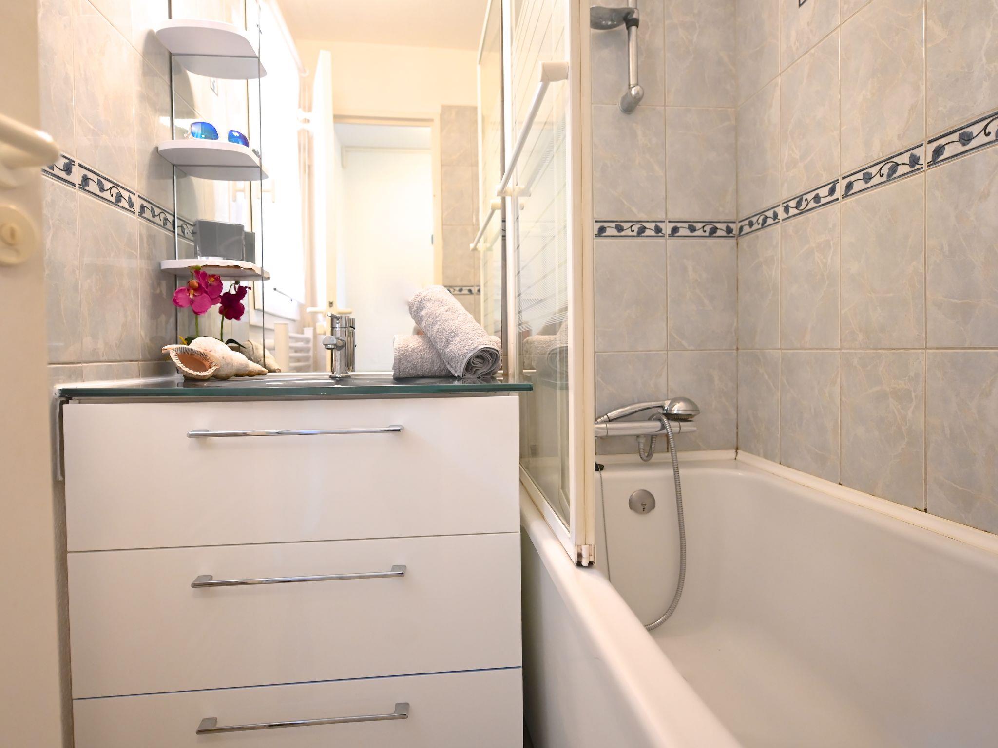 "L'Esquinade (H5 201)", 2-Zimmer-Wohnung 30 m2 im 1. Stock. Schön eingerichtet: Wohnzimmer mit 1 Ausziehbett (2 x 80 cm, Länge 190 cm), TV (Flachbildschirm), Klimaanlage. Ausgang zur Terrasse. 1 Zimmer mit 1 franz. Bett (140 cm, Länge 190 cm), TV, Flachbildschirm und Klimaanlage. Ausgang zum Balkon. Kochnische (2 Kochplatten, Geschirrspüler, Toaster, Wasserkocher, Mikrowelle, Tiefkühler, elektrische Kaffeemaschine, Kapseln für die Kaffeemaschine (Senséo) extra). Bad, sep. WC. Terrasse 9 m2. Terrassenmöbel. Sicht auf das Meer. Zur Verfügung: Waschmaschine, Bügeleisen, Haartrockner. Internet (Wireless LAN, extra). Parkplatz (1 Auto). Bitte beachten: Nichtraucher-Unterkunft. Rauchmelder. Inserat einer Privatperson nach Artikel 155, IV, CGI.