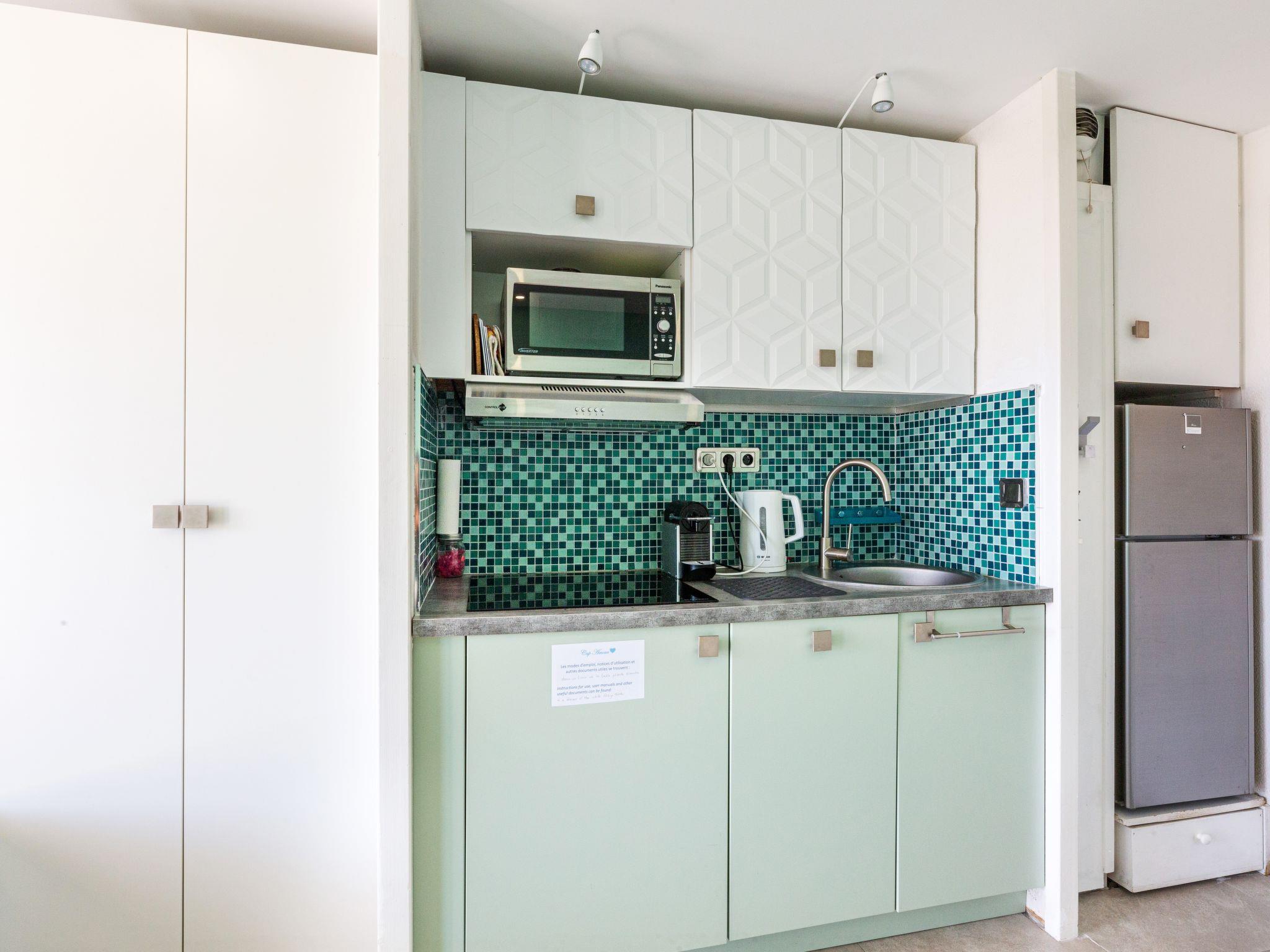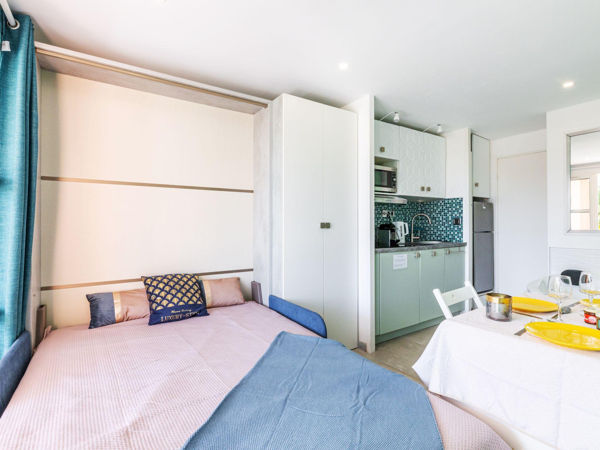 "L'Esquinade P1 101", 1-Zimmer-Studio 24 m2, im Erdgeschoss. Objekt geeignet für 2 Erwachsene + 2 Kinder. Vollständig renoviert im Jahre 2021, modern und gemütlich eingerichtet: Wohnzimmer mit 1 franz. Wandschrankbett (140 cm, Länge 190 cm), Sprudelbad, TV, Flachbildschirm und Klimaanlage. Ausgang zur Terrasse. Kabine mit 1 x 2 Etagenbetten (90 cm, Länge 190 cm). Kochnische (Geschirrspüler, 3 Glaskeramikplatten, Toaster, Wasserkocher, Mikrowelle, Tiefkühler, elektrische Kaffeemaschine, Kapseln für die Kaffeemaschine (Nespresso) extra). Dusche/WC. E-Heizung, Klimaanlage. Terrasse 9 m2. Terrassenmöbel. Seitliche Sicht auf das Meer und die Berge. Zur Verfügung: Waschmaschine. Internet (WLAN, extra). Parkplatz (1 Auto). Bitte beachten: Nichtraucher-Unterkunft. Maximal 1 kleines Haustier/Hund erlaubt. Rauchmelder. Anstelle eines abgeschlossenen Schlafzimmers befinden sich manche Schlafplätze in einem offenen Bereich (Galerie, Nische etc.). Inserat einer Privatperson nach Artikel 155, IV, CGI.