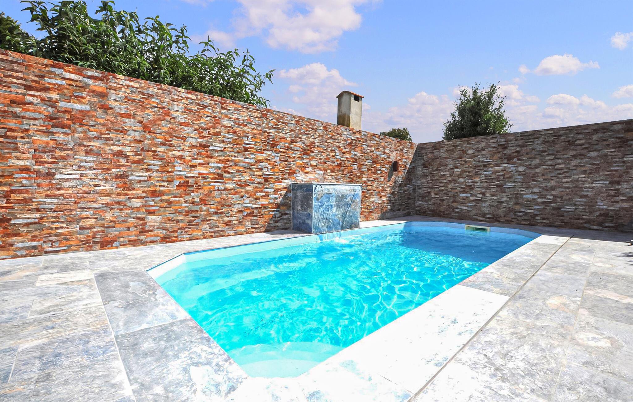Ihr Pool lädt zu erfrischendem Badespaß ein. Entspannen Sie sich zwischendurch auch auf den bequemen Sitzgelegenheiten neben dem Pool.