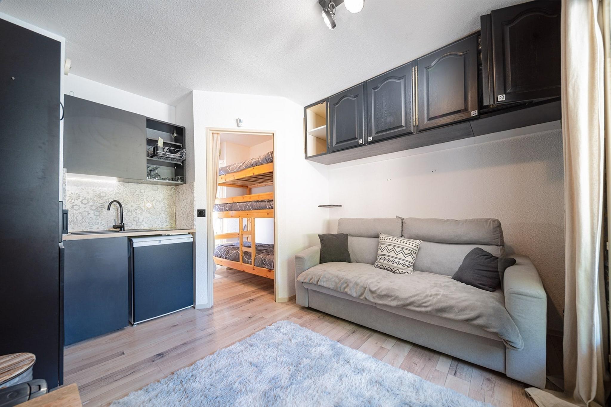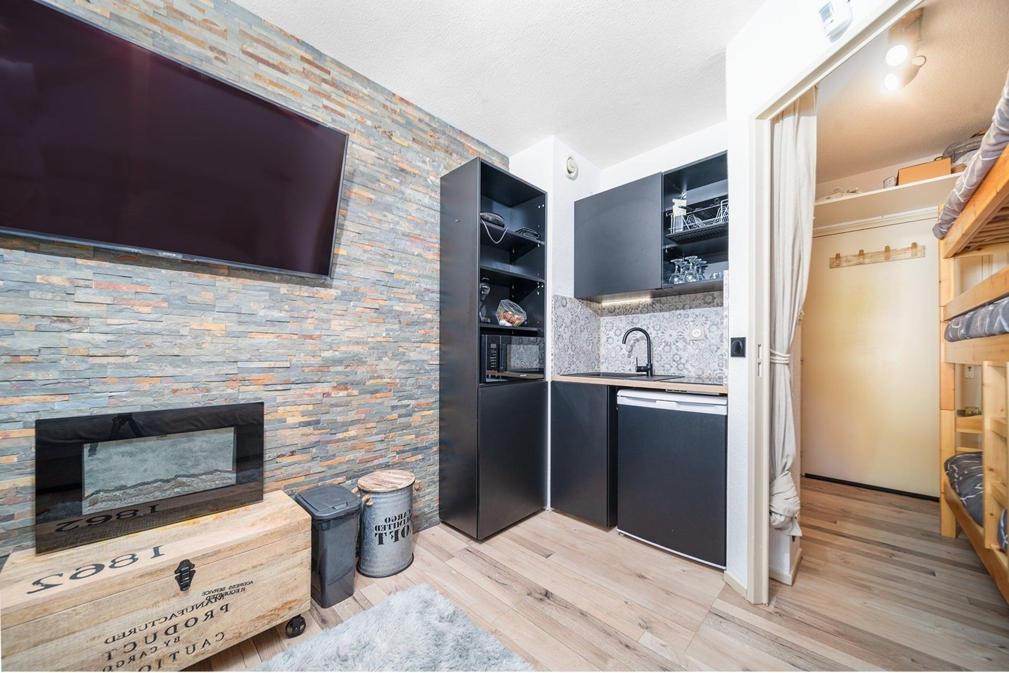 Dieses geschmackvoll eingerichtete Studio bietet auf kompakten 15 m² Platz für bis zu 4 Gäste und verfügt über stilvolle neue Möbel und eine gemütliche Raumaufteilung. Es liegt perfekt am Fuße der Skipisten und bietet einfachen Zugang zu Outdoor-Abenteuern in einer malerischen Berglandschaft. Das Anwesen verfügt über praktische Annehmlichkeiten wie Gartenmöbel, einen Balkon zum Genießen der frischen Luft und der malerischen Aussicht, einen Fernseher zur Unterhaltung und einen Parkplatz im Freien im angrenzenden Gebäude. Dieses Studio liegt nur 30 Meter vom Skigebiet entfernt und ist eine fantastische Wahl für Wintersportler, die Komfort und Nähe zu den Pisten suchen. Das nahe gelegene Stadtzentrum, nur 500 Meter entfernt, bietet eine Vielzahl von Cafés, Geschäften und Restaurants zum Erkunden, während ein Supermarkt in gleicher Entfernung dafür sorgt, dass Sie während Ihres Aufenthalts alles haben, was Sie brauchen. Die familienfreundliche Lage macht es ideal für Reisende, die eine Balance zwischen Entspannung und Aktivitäten suchen. Das Studio verfügt über eine gut ausgestattete Küche mit gemischten Gas- und Elektrogeräten, darunter ein Kühlschrank, eine Mikrowelle, Geschirr, Besteck, Küchenutensilien, eine Kaffeemaschine und ein Toaster. Diese Einrichtung bietet alles, was Sie für einen komfortablen Selbstversorgerurlaub brauchen. Mit seinem modernen Design und den durchdachten Annehmlichkeiten bietet dieses Studio einen herrlichen Rückzugsort für einen Kurzurlaub in den Bergen.