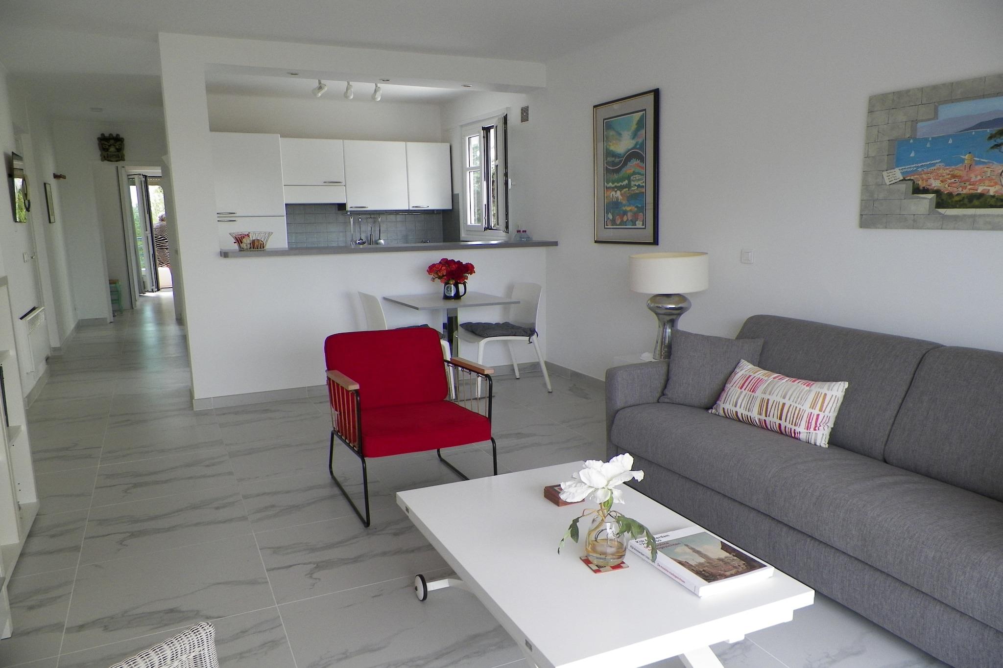 Dieses luxuriös eingerichtete Appartement (mit Lift erreichbar) mit Klimaanlage befindet sich in einer einzigartigen, ruhigen Lage, nur 50 Meter von den schönen Stränden von Antibes und dem Boulevard entfernt. Sowohl vorne als auch hinten können Sie Ihre eigene Terrasse mit Vorzelten und Liegestühlen, der mediterranen Sonne und der freien Sicht genießen. Gegenüber dem Appartement befindet sich der gemütliche Boulevard mit Palmen und Springbrunnen und der intime Sandstrand mit Strandbars und Strandkörben. Der Strand (Plage du Ponteil) ist wegen des flachen Wassers für Kinder sehr geeignet. Für Segelfreunde gibt es eine Segelschule, in der Sie auch ein Segelboot oder einen Katamaran für einen Tag auf dem Wasser mieten können. Eine leckere Bäckerei ist gleich um die Ecke. Die anderen Geschäfte für Lebensmittel und nette Restaurants sind nur wenige Gehminuten entfernt. In Laufnähe befindet sich die Altstadt mit dem täglich stattfindenden provenzalischen Markt, dem Picasso-Museum, den vielen Geschäften und zahlreichen Restaurants. Etwas weiter entfernt liegt Cap d'Antibes mit seiner schönen Bucht La Garoupe und einigen berühmten Strandbars sowie dem schönen Wanderweg um die Cap. Auf der Rückseite befindet sich Juan les Pins in 10 Gehminuten Entfernung, ein schöner Badeort mit vielen Strandbars und schönen Damenmodeläden. Kurz gesagt, Sie können Ihr Auto stehen lassen und diese schöne Gegend zu Fuß erkunden.