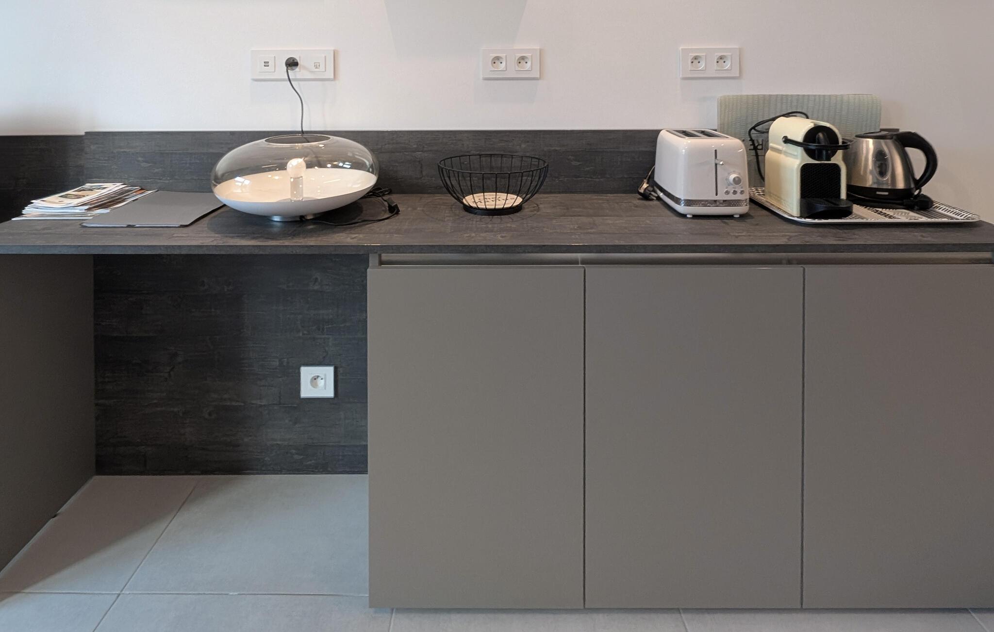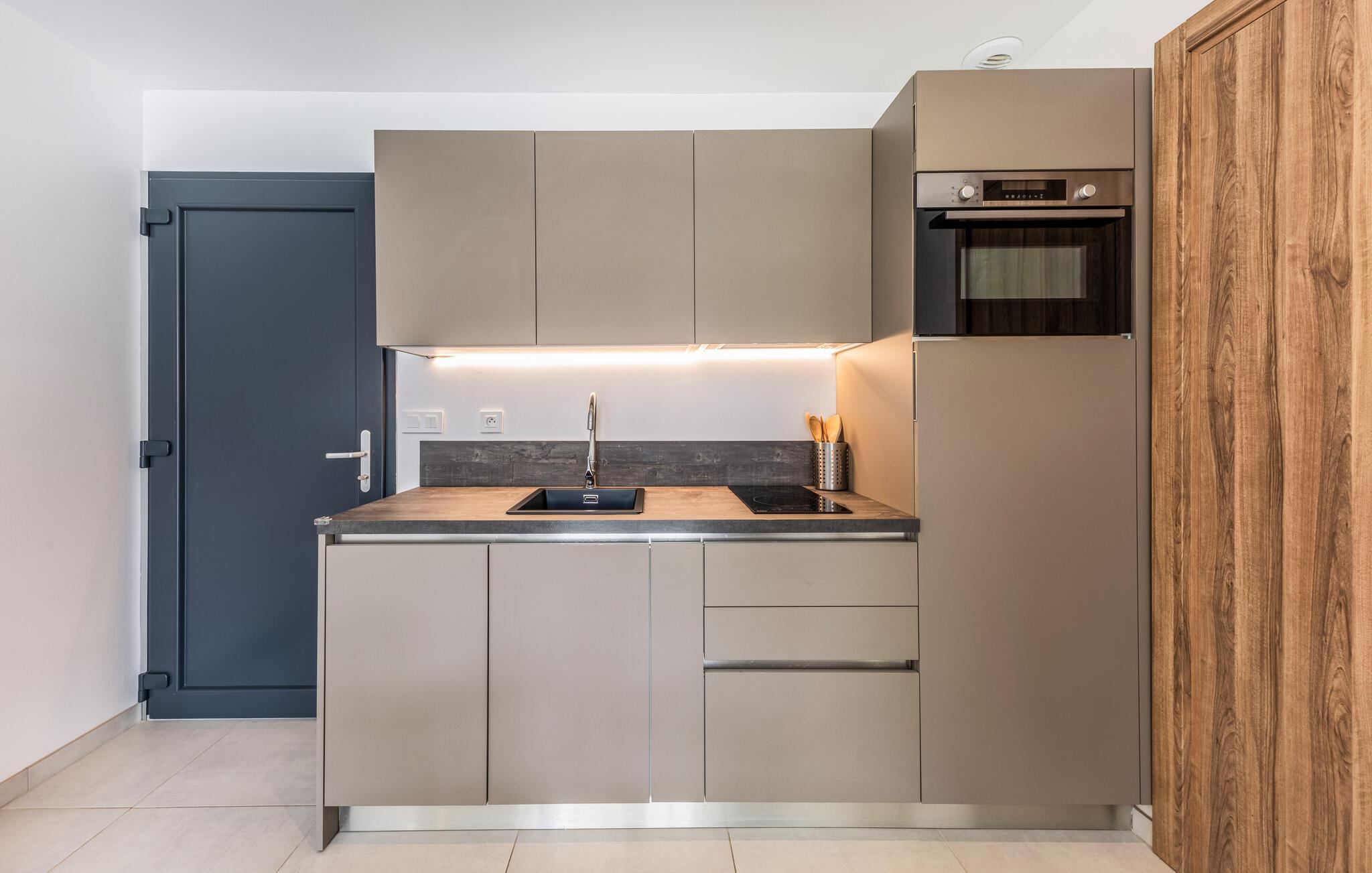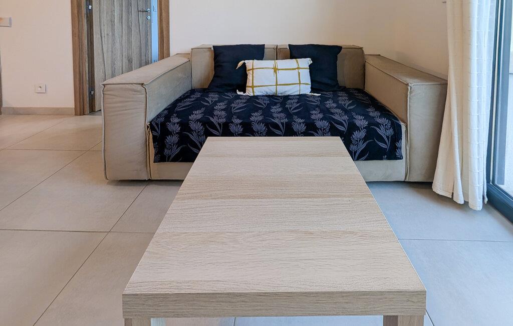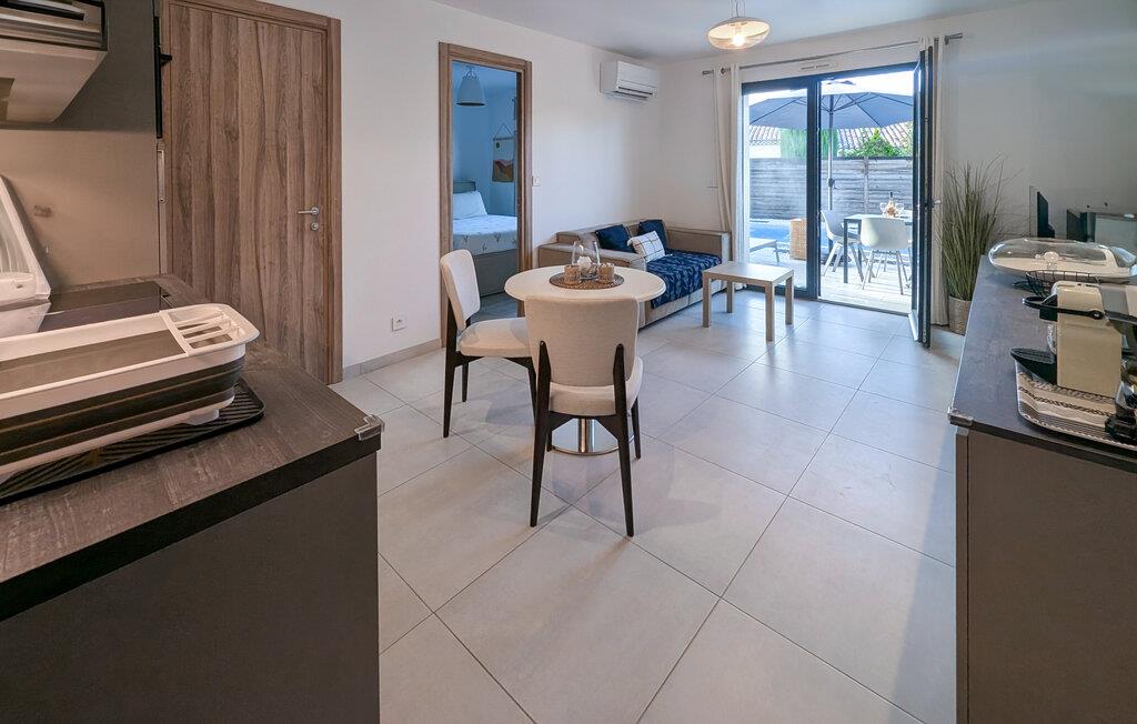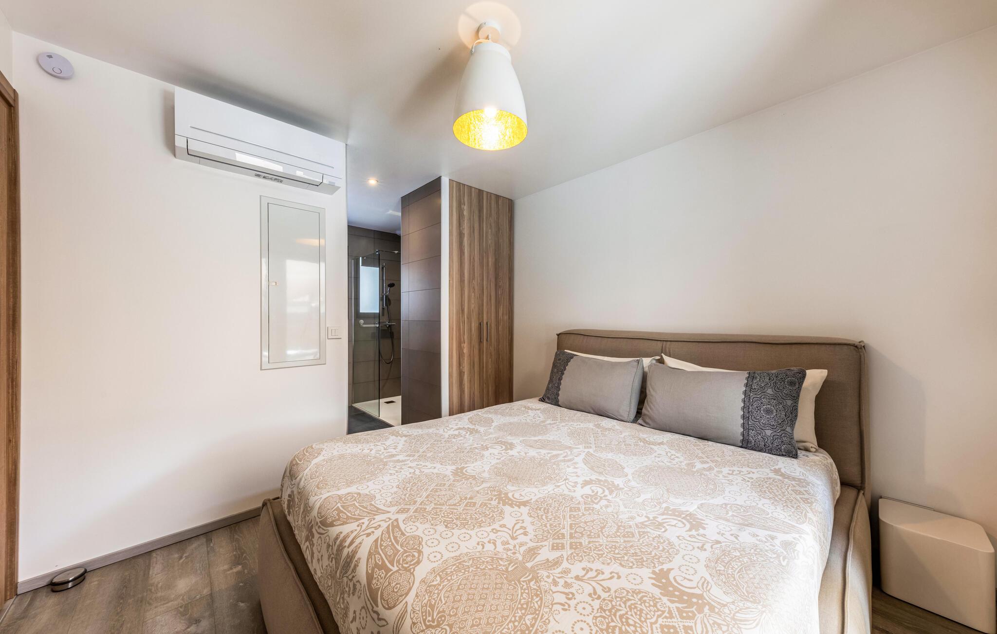 Im Inneren genießen Sie optimalen Komfort mit Klimaanlage und einer voll ausgestatteten Küche, einschließlich einer Nespresso-Kaffeemaschine, Spülmaschine, Waschmaschine und allem, was Sie für Ihren Aufenthalt brauchen. Das geräumige und moderne Wohnzimmer bietet Platz für einen dritten Gast auf einem Schlafsofa und verfügt über einen Smart-TV für Ihre Unterhaltung. Das Hauptschlafzimmer ist eine gemütliche Oase mit einem bequemen 160-cm-Bett, einem Smart-TV und Klimaanlage, die erholsame Nächte garantiert. Das Bett wird bei Ihrer Ankunft gemacht und frische Handtücher werden ebenfalls bereitgestellt.